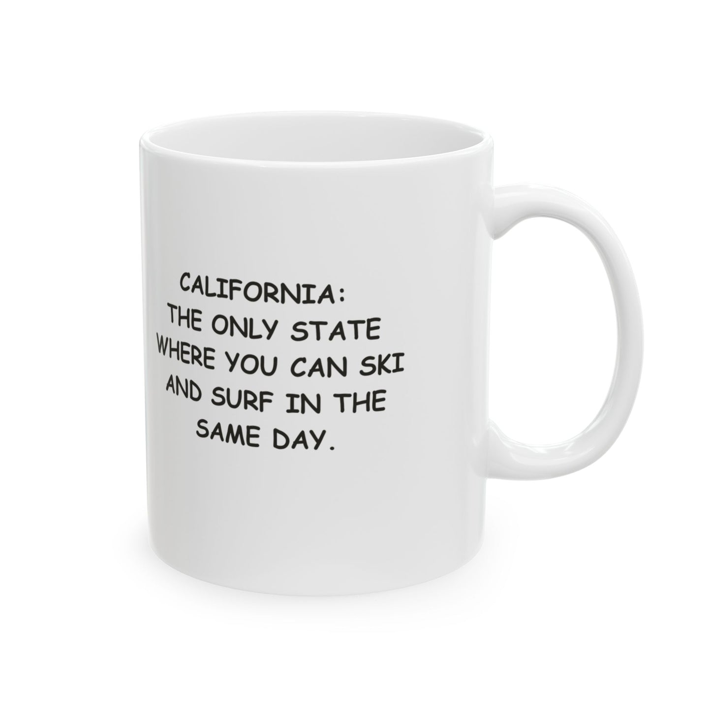 "California: The only state where you can ski and surf in the same day." Ceramic Mug - 11oz & 15oz - 12720