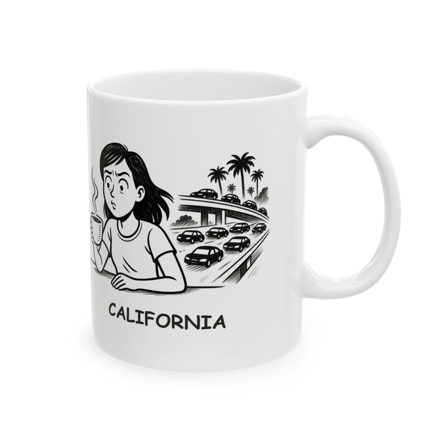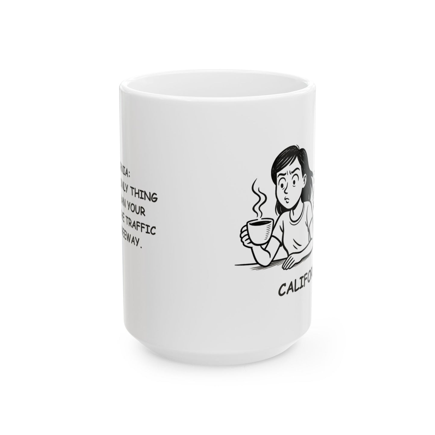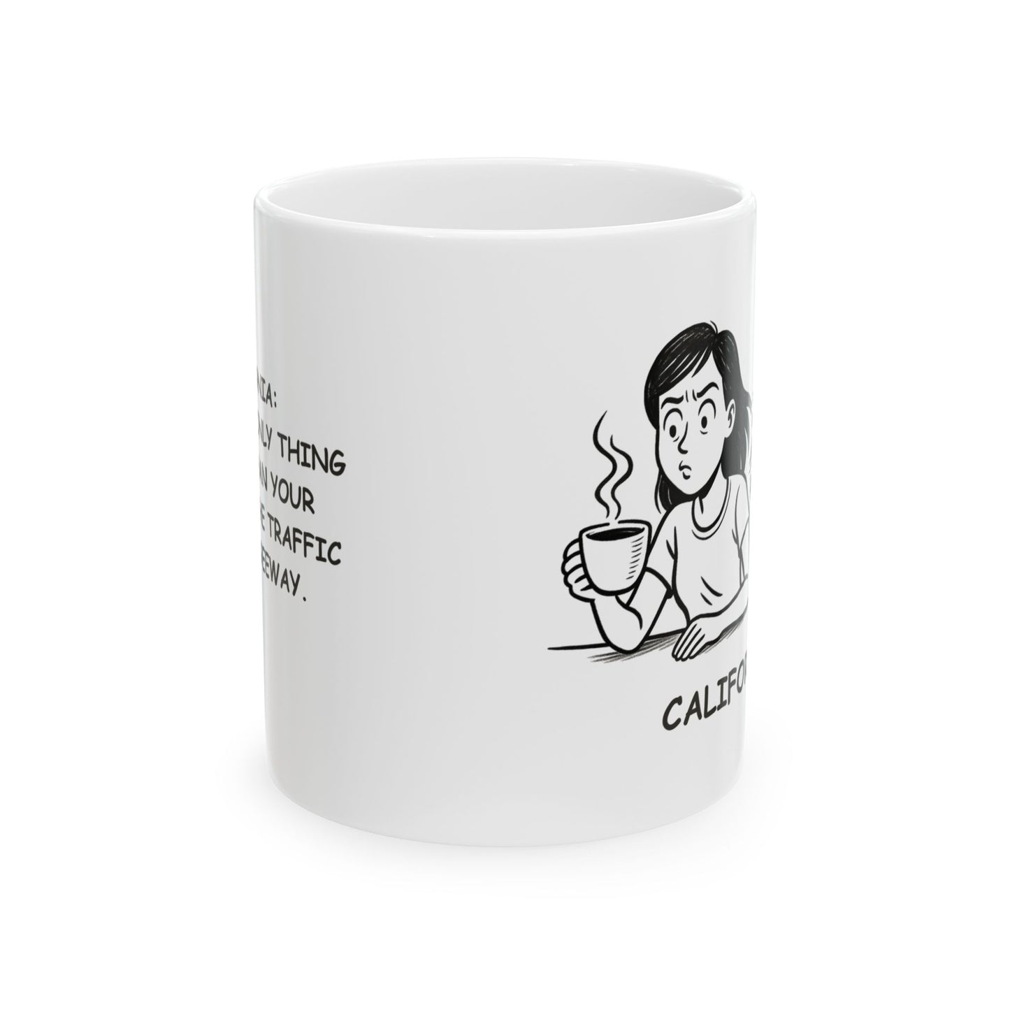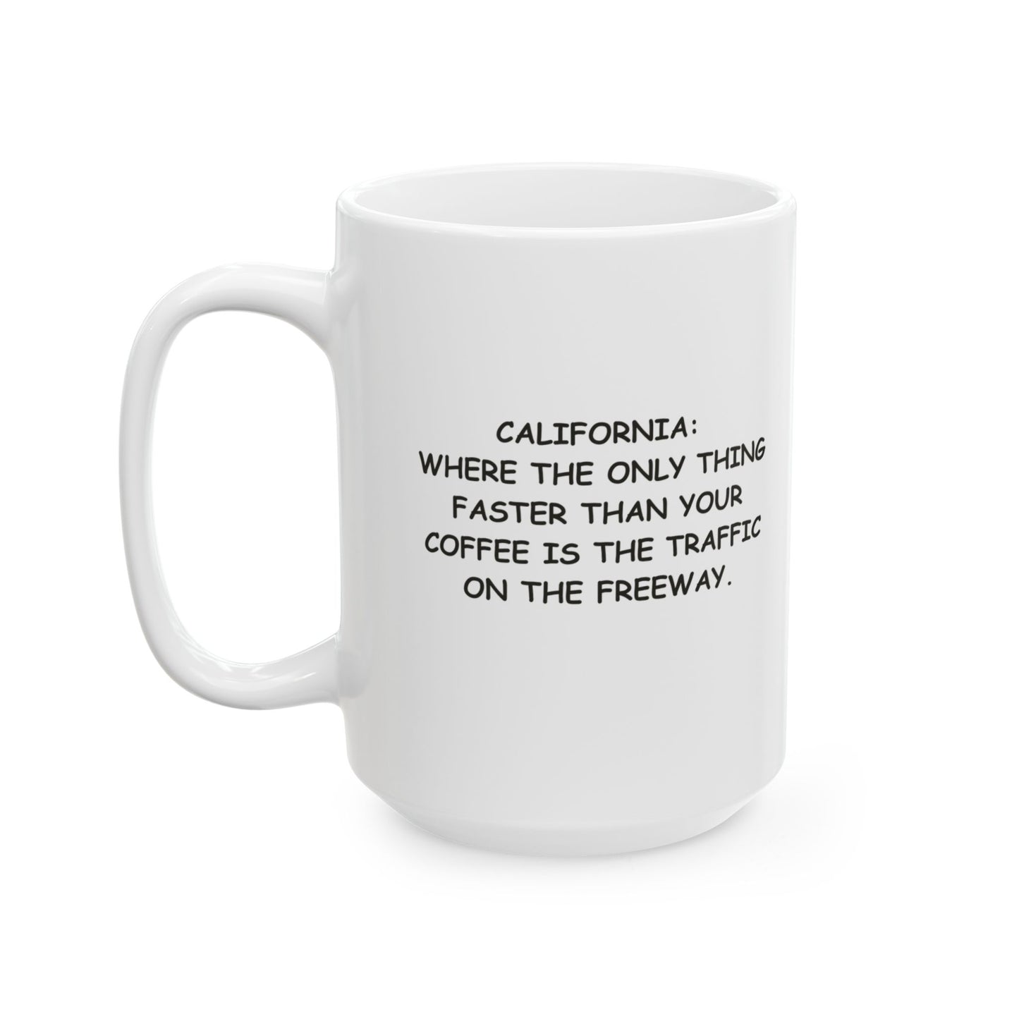 "California: Where the only thing faster than your coffee is the traffic on the freeway." Ceramic Mug - 11oz & 15oz, 12737