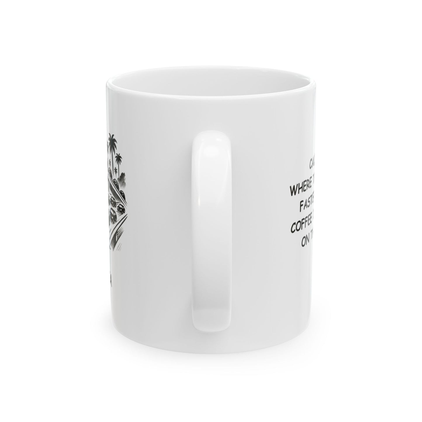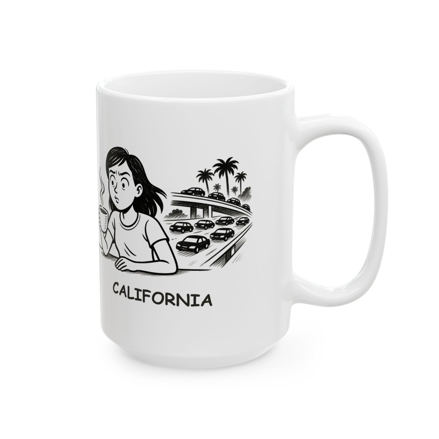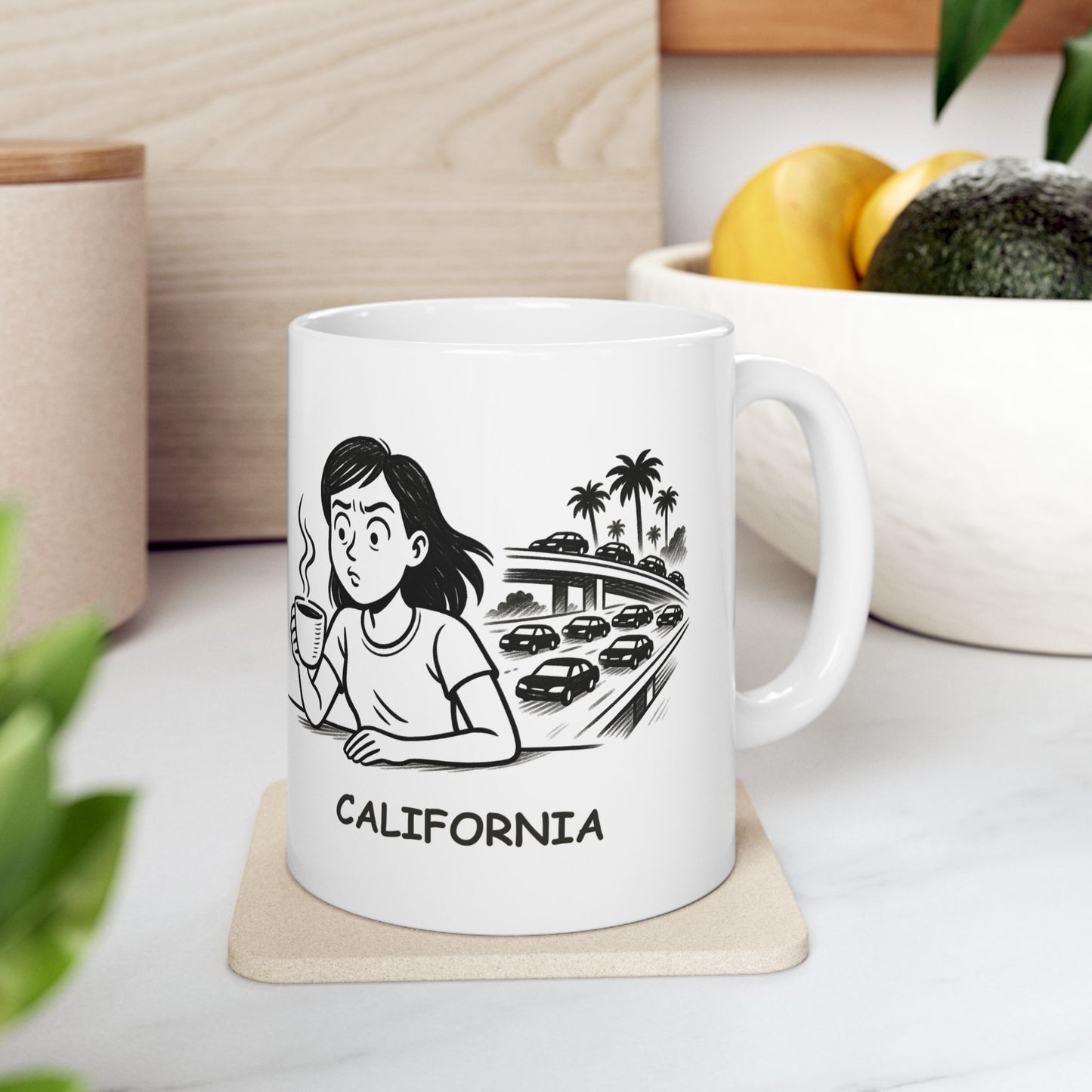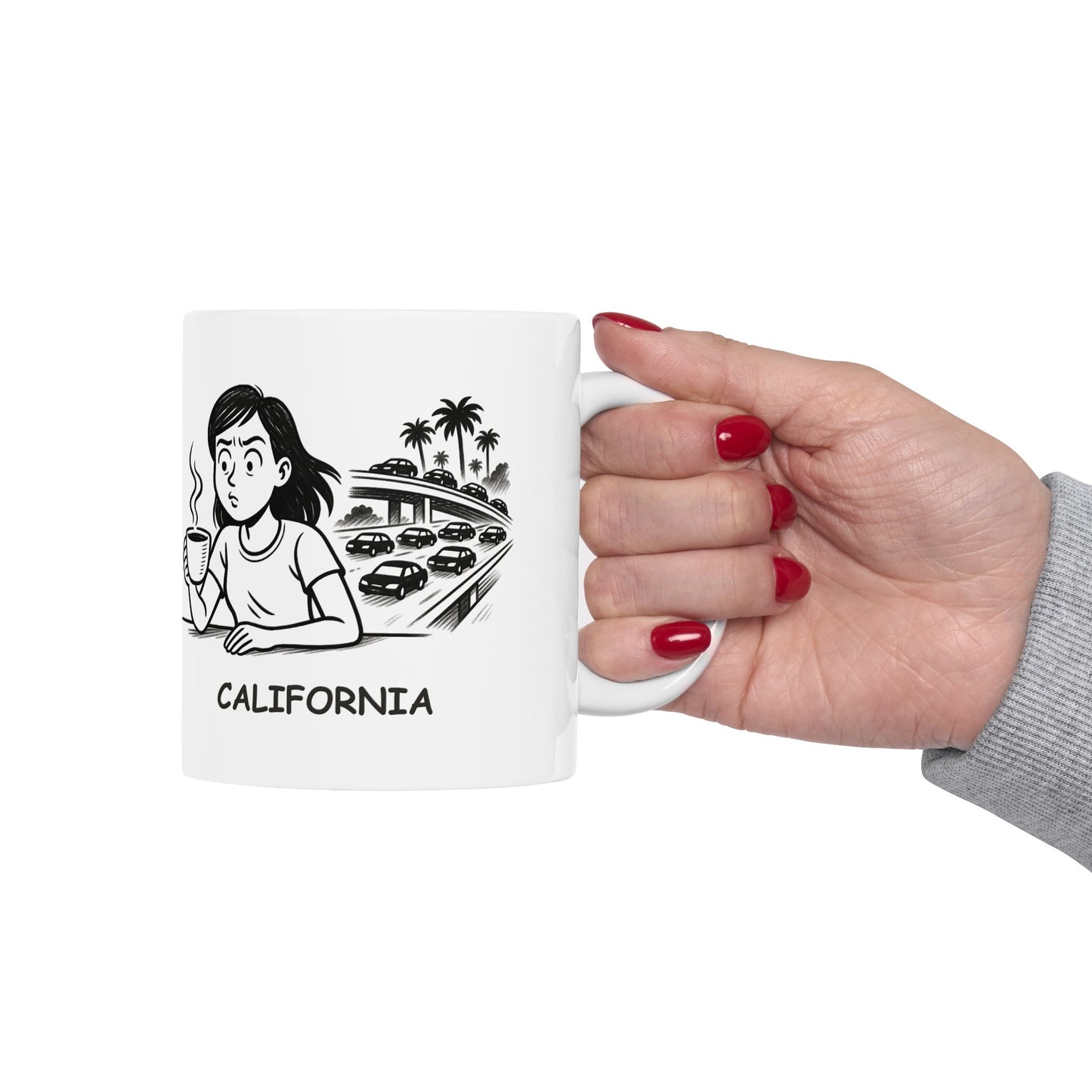 "California: Where the only thing faster than your coffee is the traffic on the freeway." Ceramic Mug - 11oz & 15oz, 12737