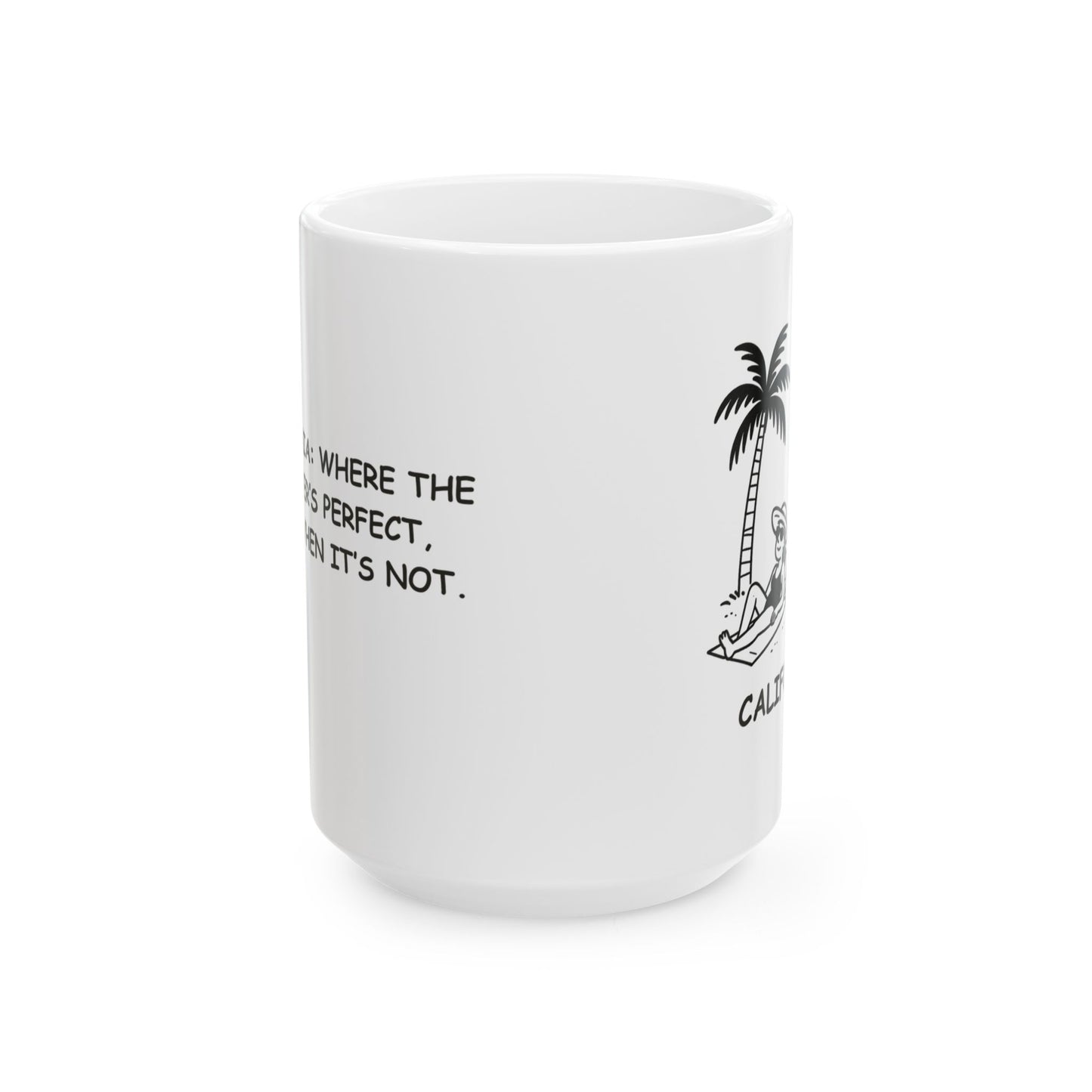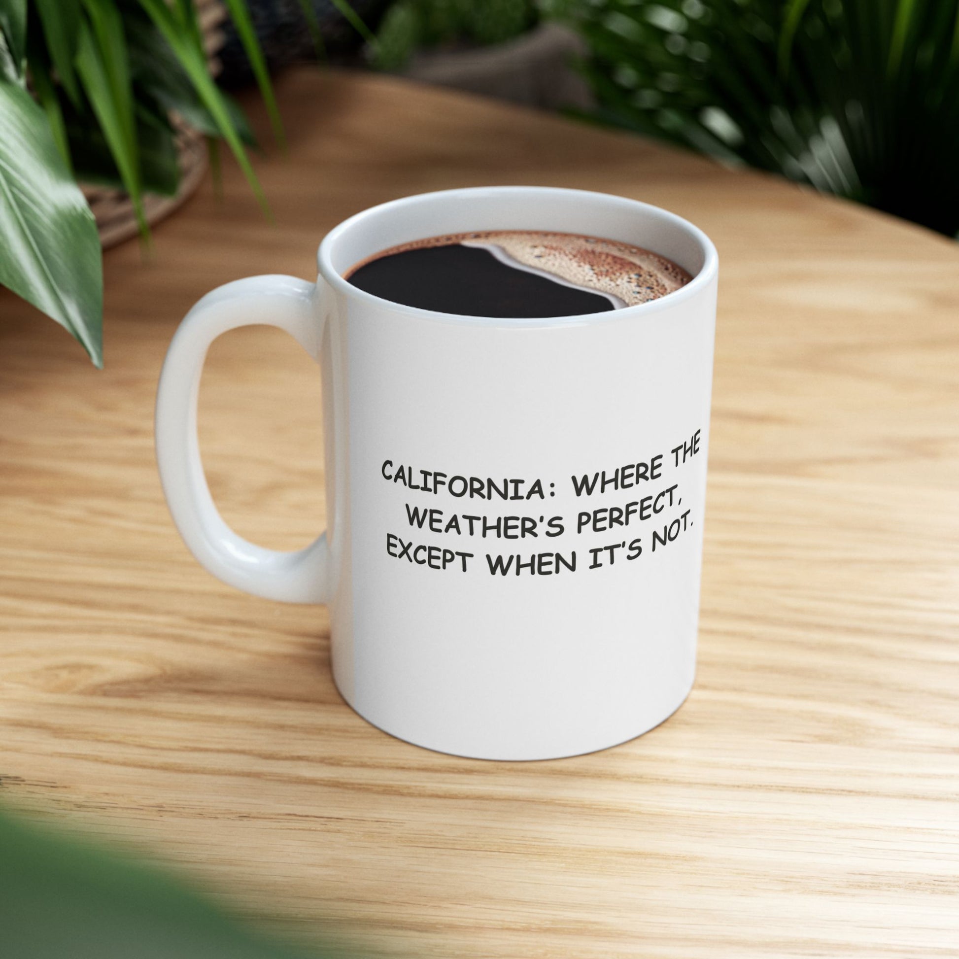 "California: Where the weather’s perfect, except when it’s not." Ceramic Mug - 12715