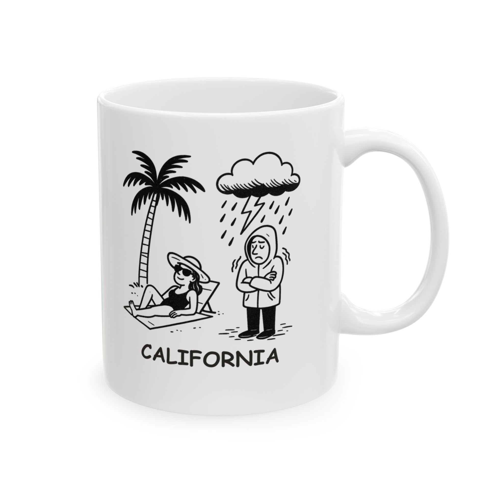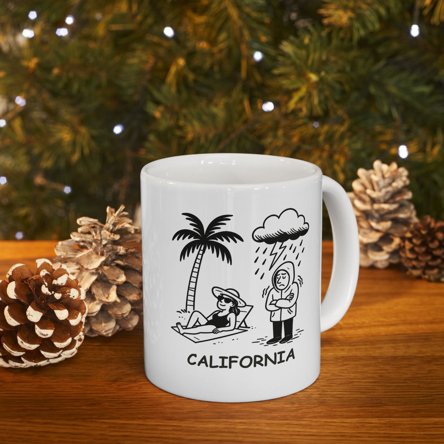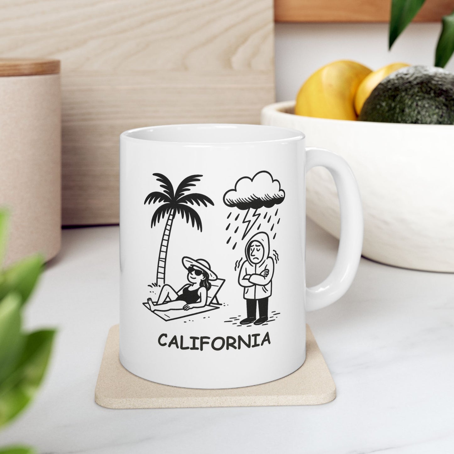 For those who know that even paradise has its off days! Our "California: Where the weather’s perfect, except when it’s not." Ceramic Mug brings a playful nod to the Golden State’s mostly perfect—but sometimes unpredictable—climate. Whether it’s sunshine or a surprise foggy morning, this mug is the perfect companion for your coffee or tea.