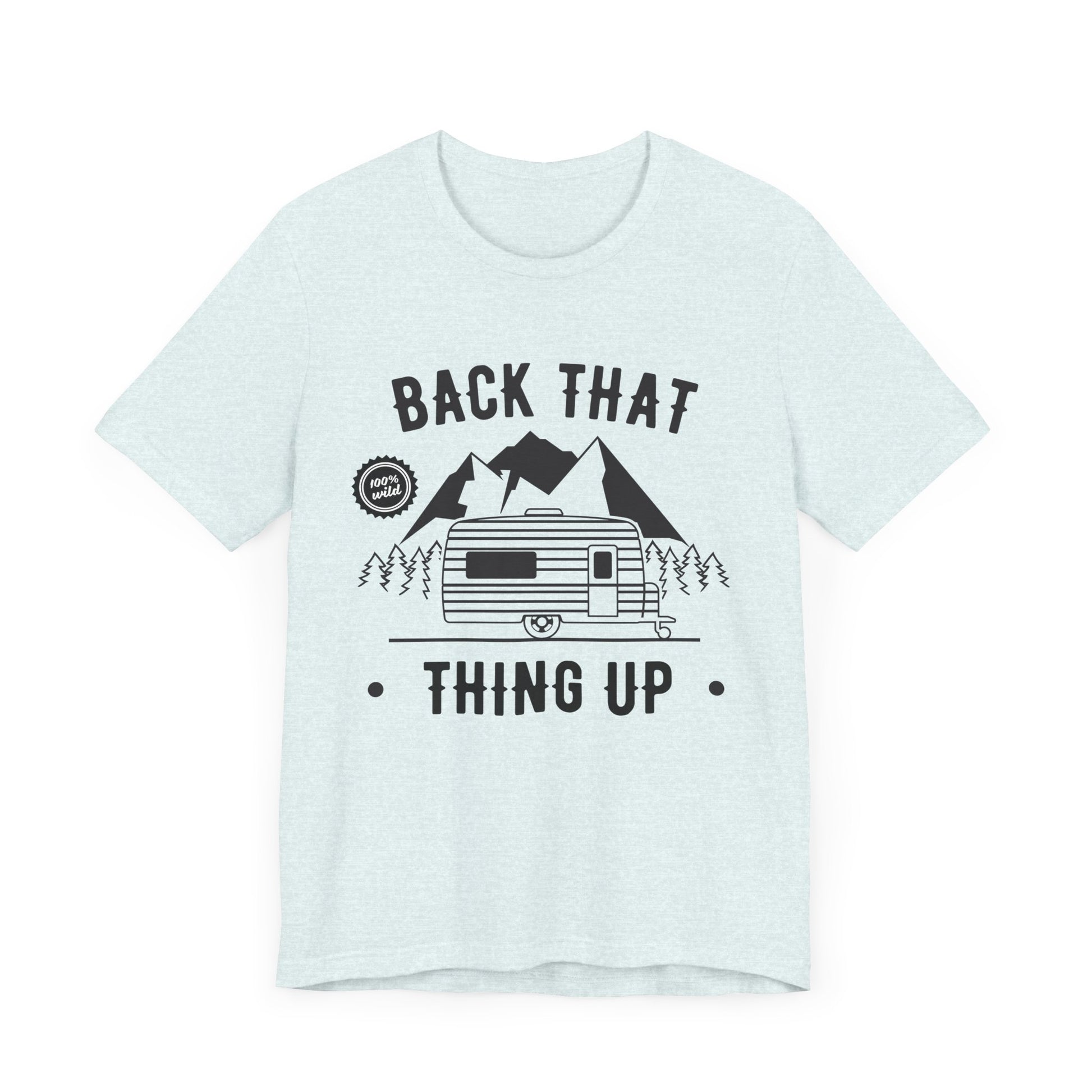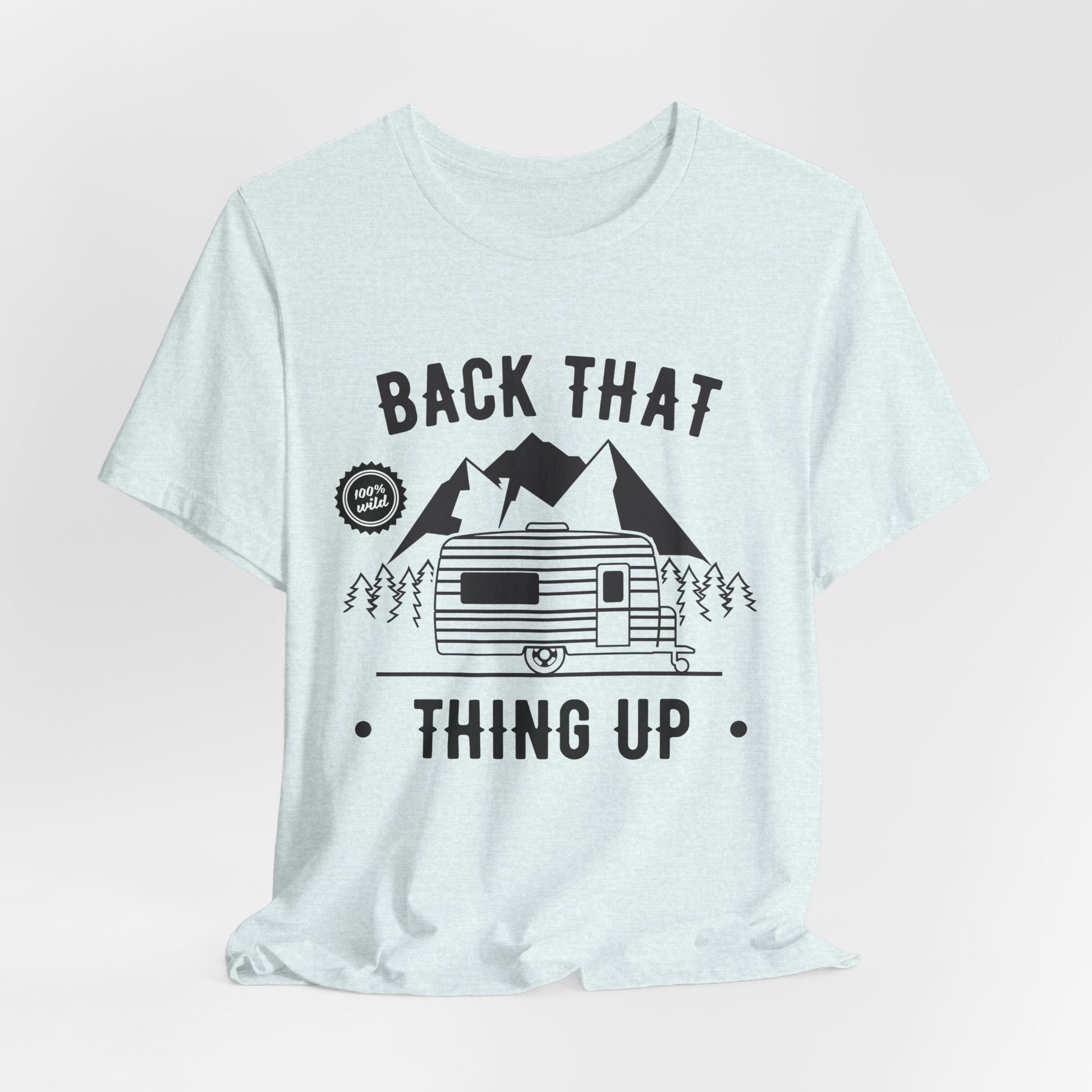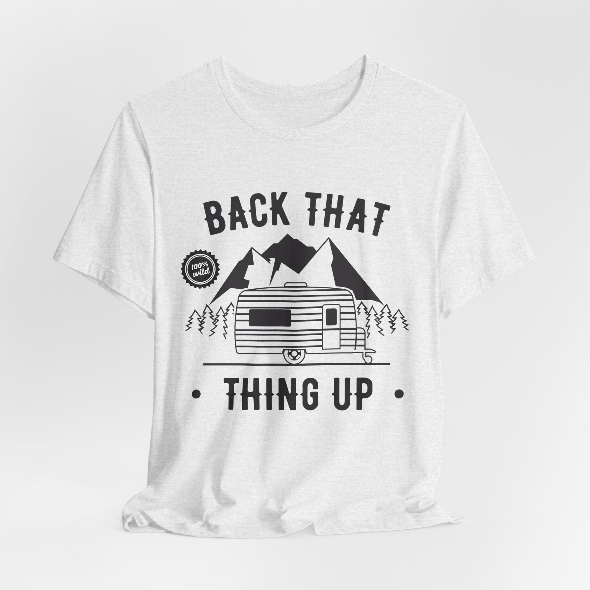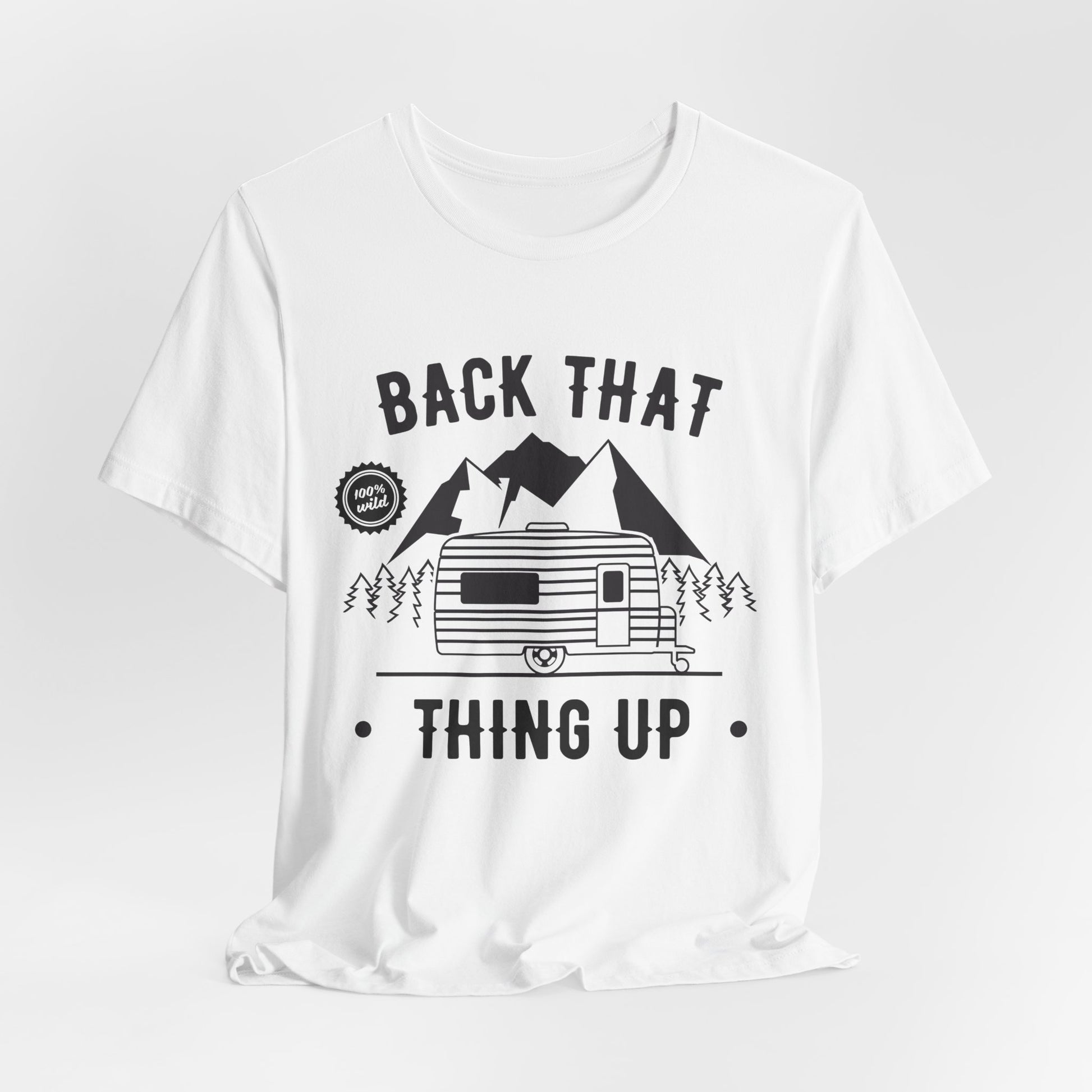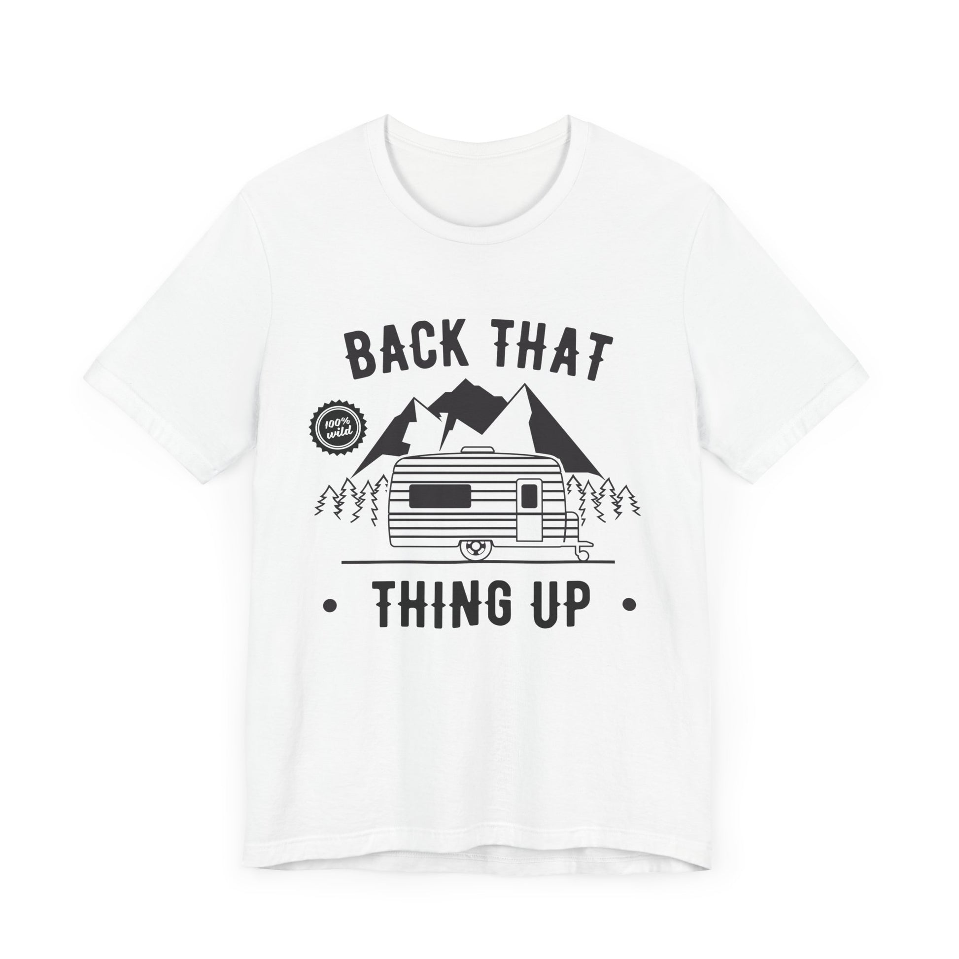 Embrace your camping spirit with our "Camping: Back That Thing Up" tee. Order yours today and add a touch of humor to your outdoor wardrobe!
