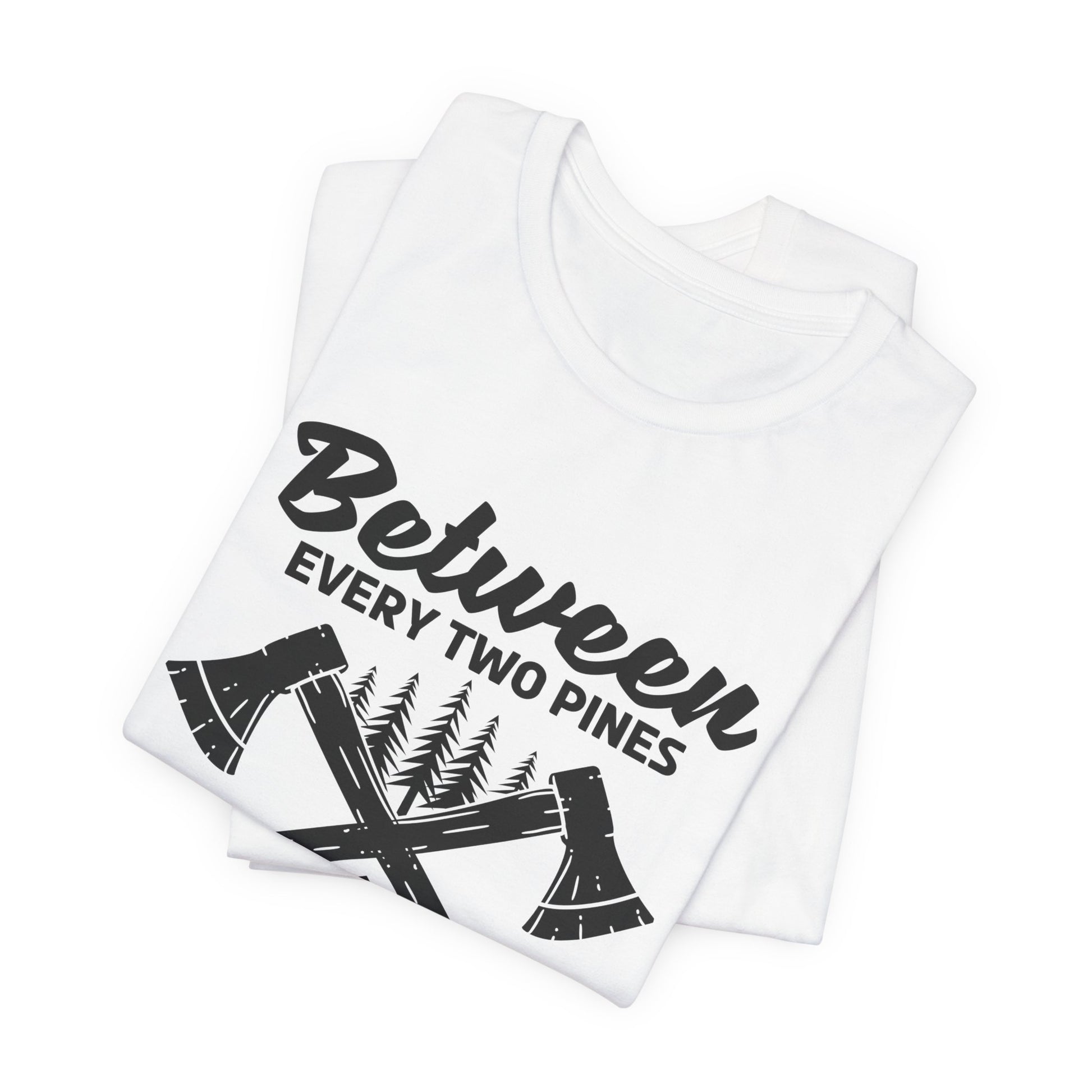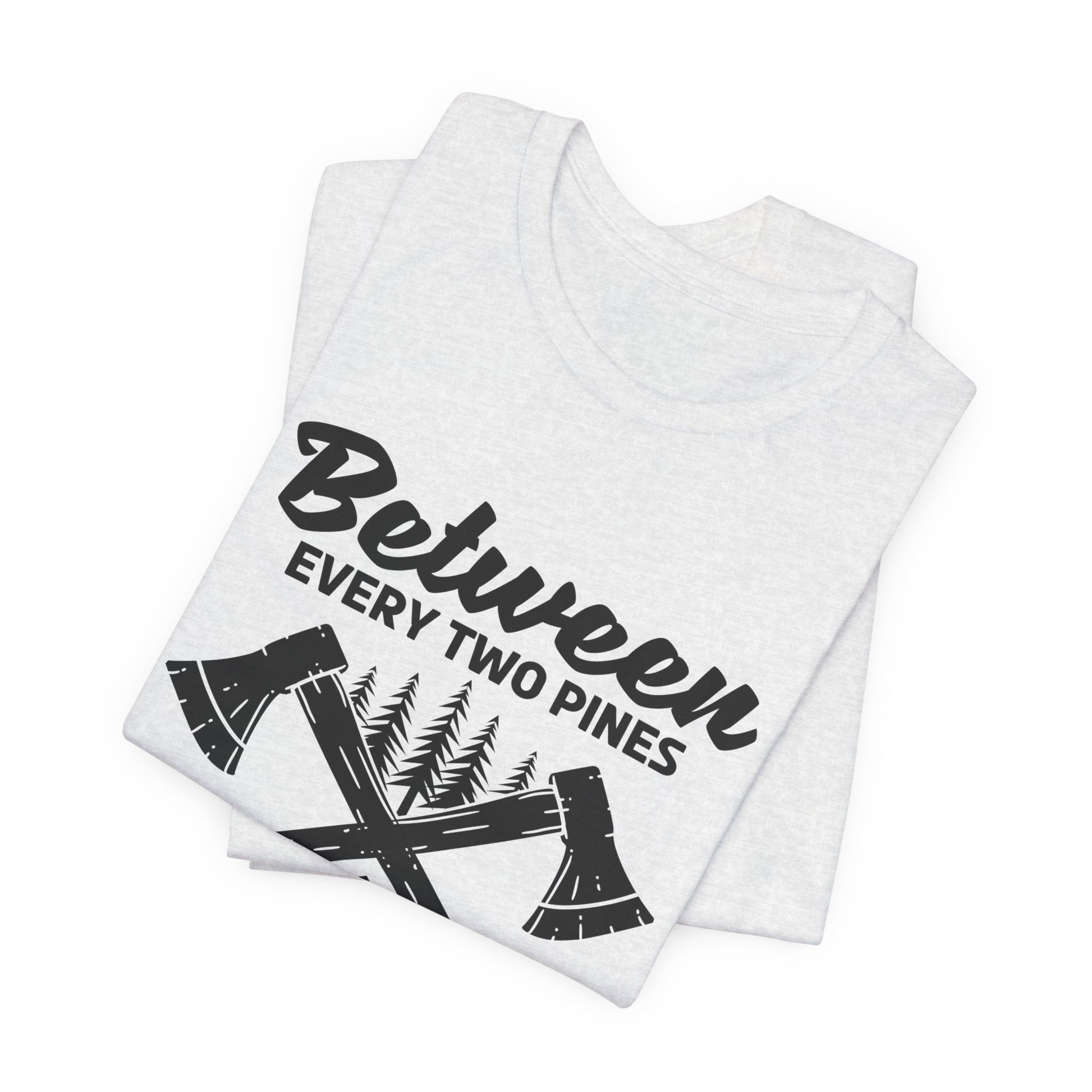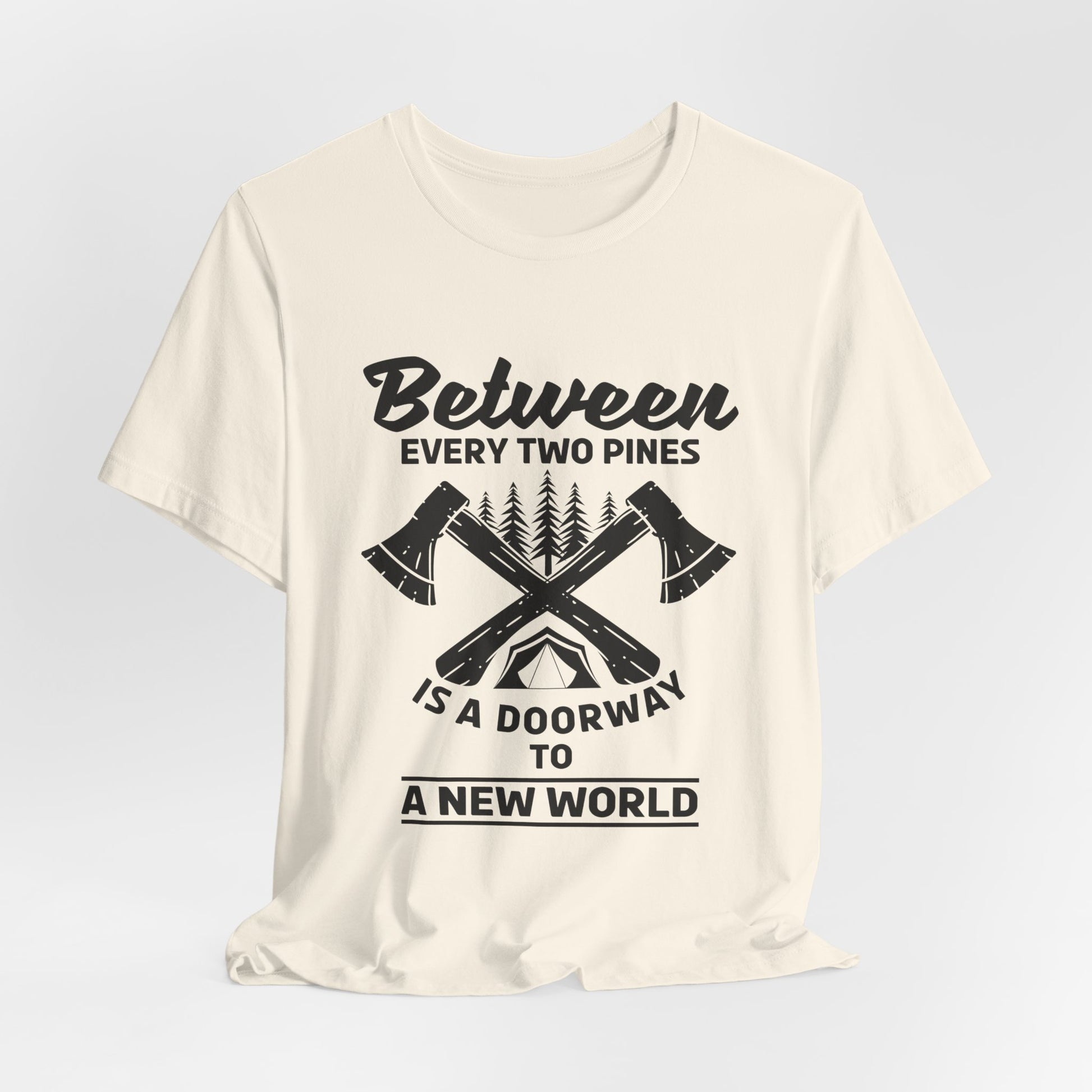 Camping: Between Two Pines Is A Doorway To A New World - Unisex Jersey Short Sleeve Tee - 12631