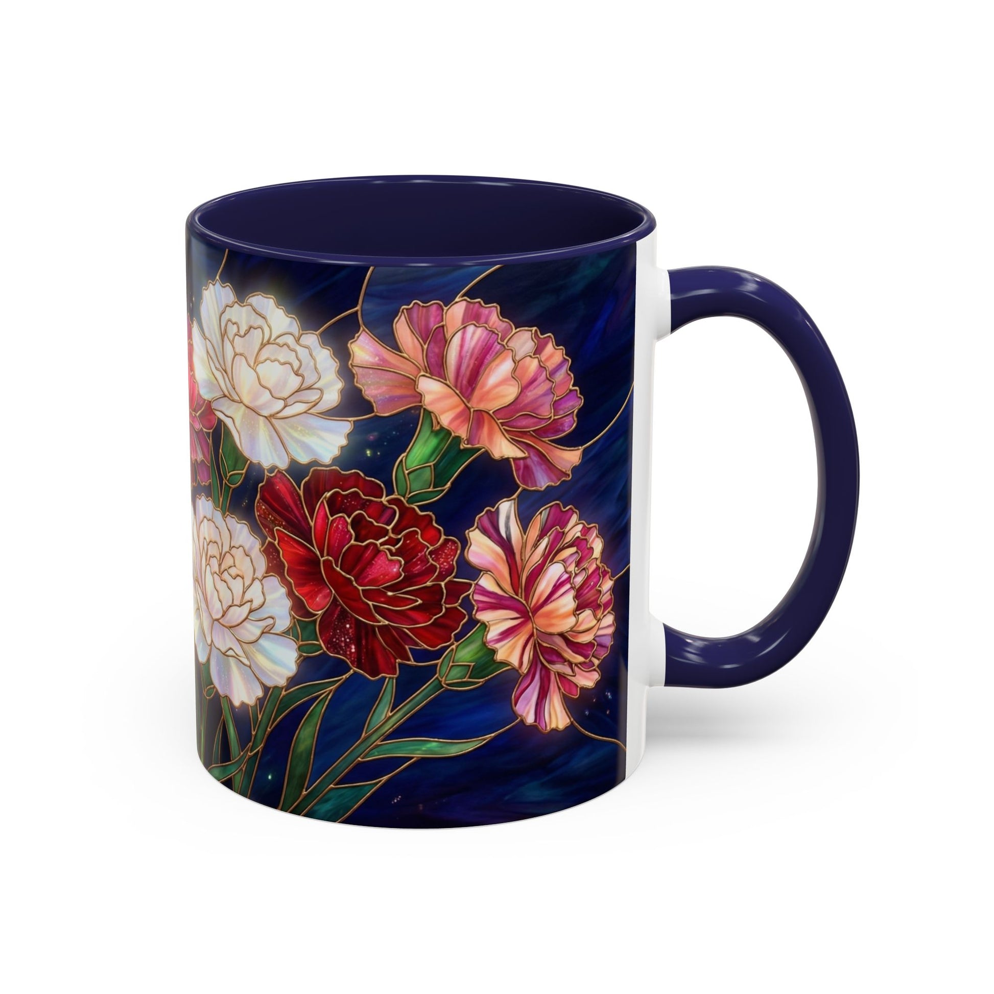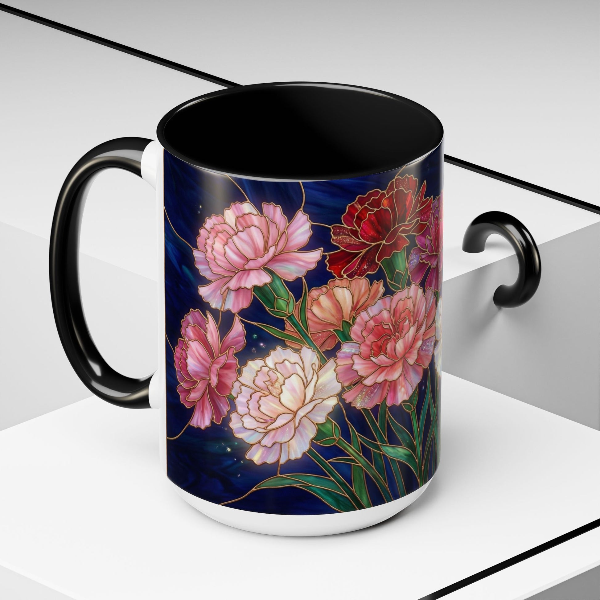 Carnation Floral Accent Coffee Mug — Stained Glass Design (11/15oz) - 14559
