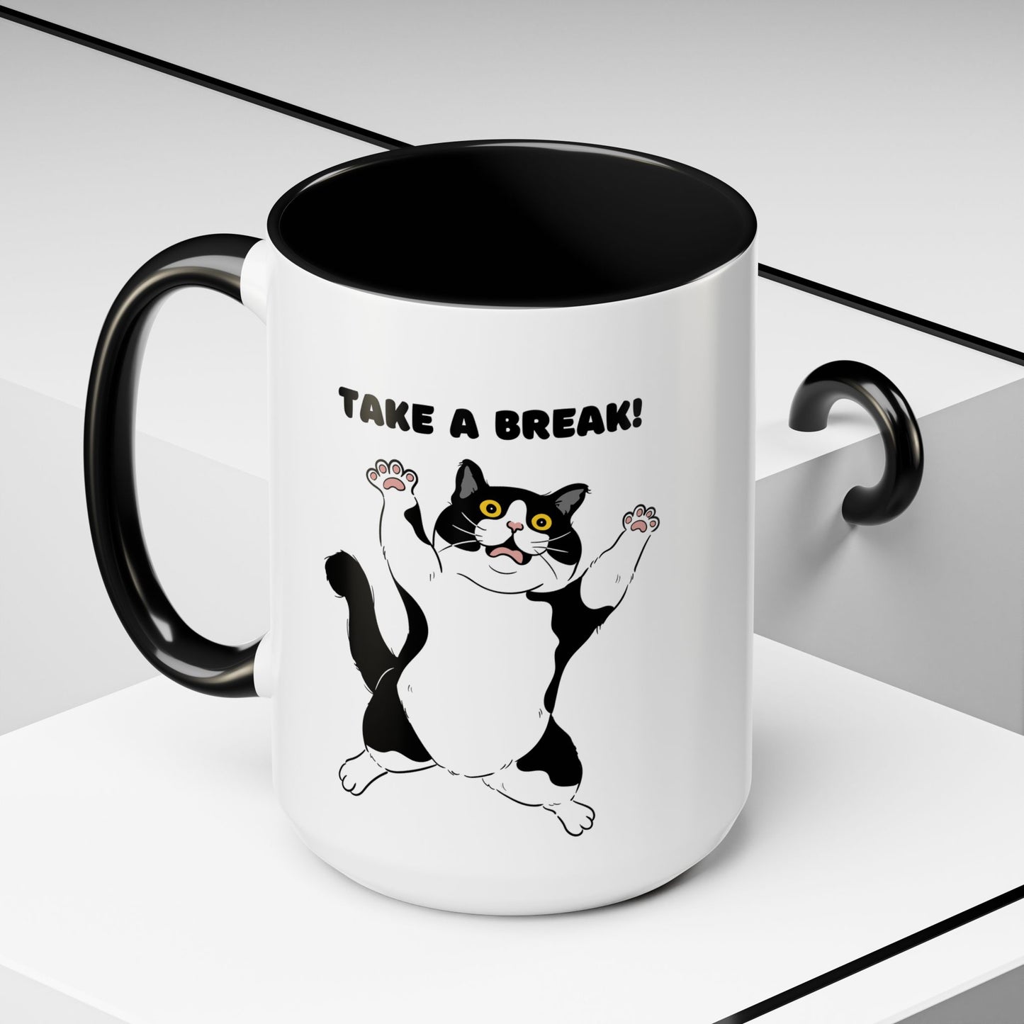 Cat, Take a Break, Drink Coffee - Accent Coffee Mug (11, 15oz) - 11295
