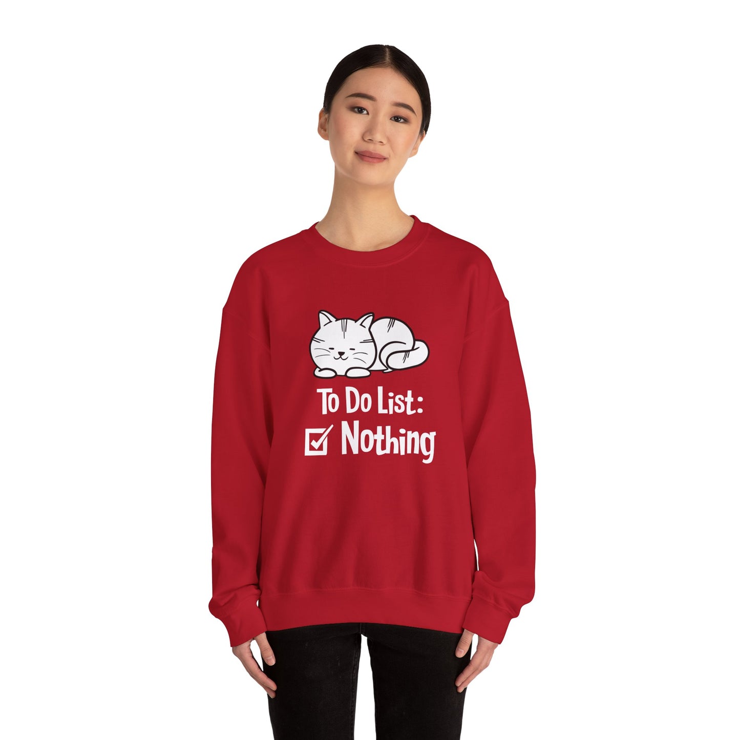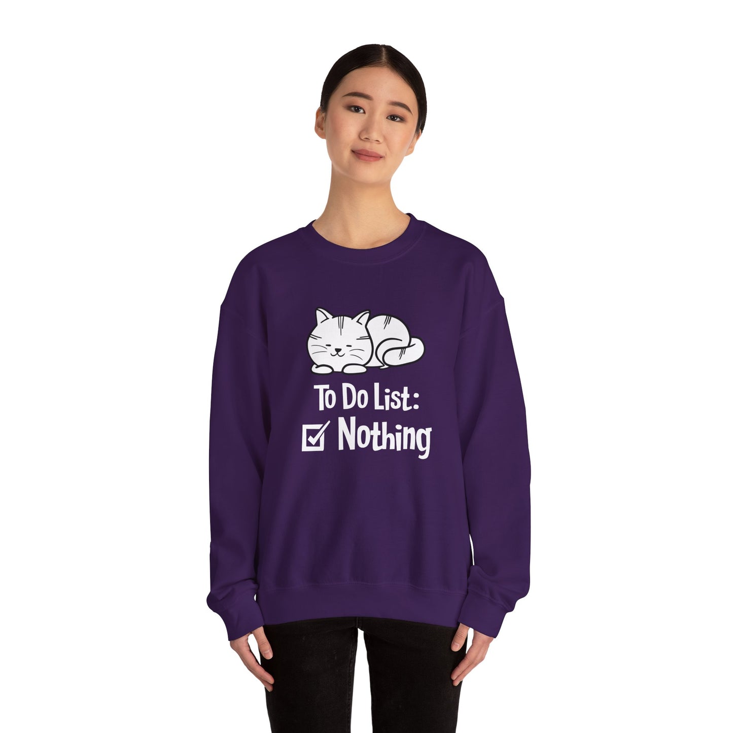 - Fun, Playful Design: Featuring a humorous "Cat, To Do List: Nothing" graphic, this sweatshirt is a lighthearted way to express your love for cats and their leisurely lifestyle.