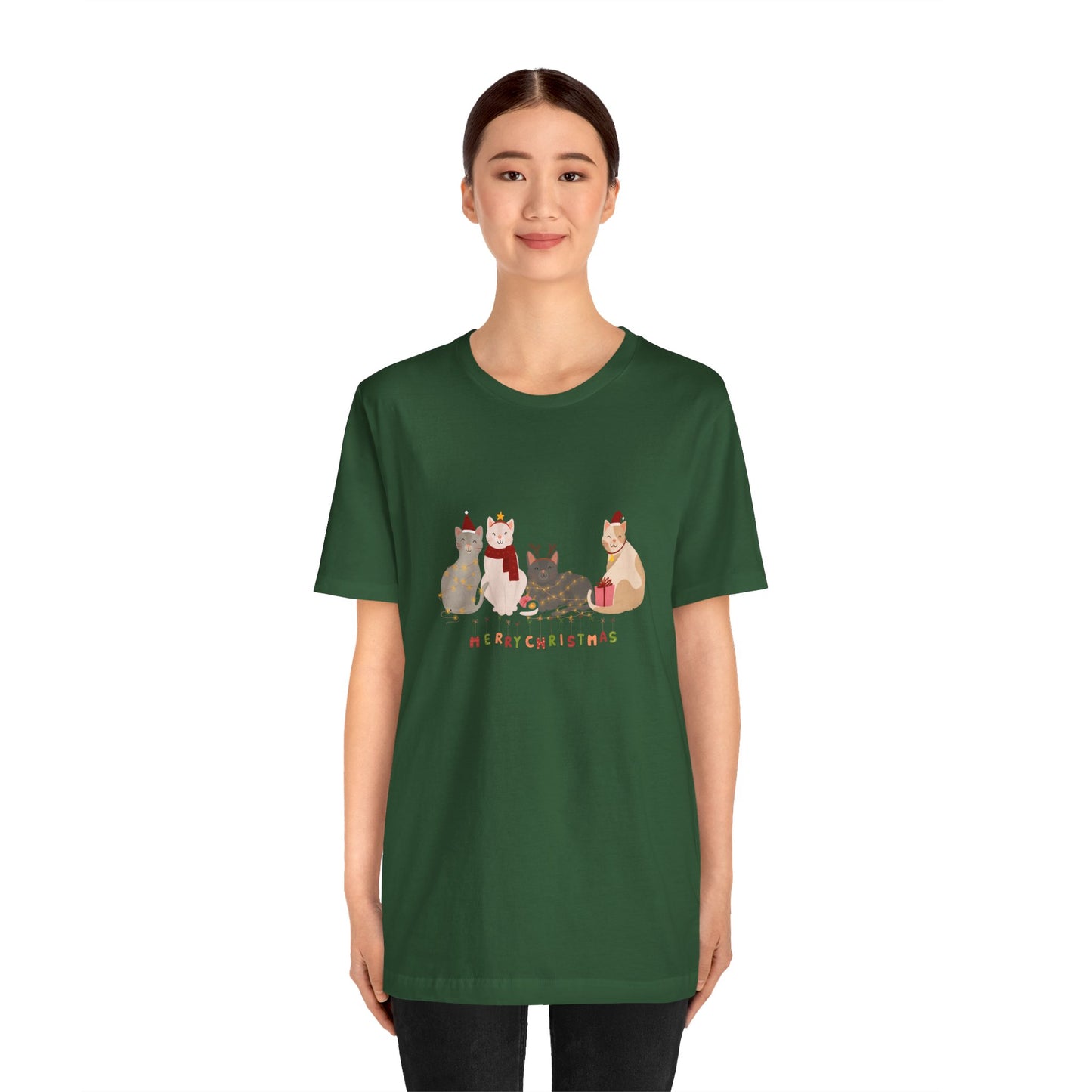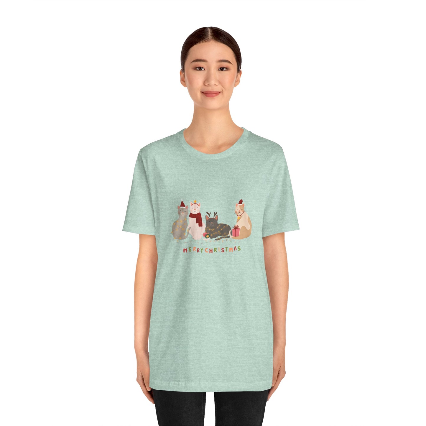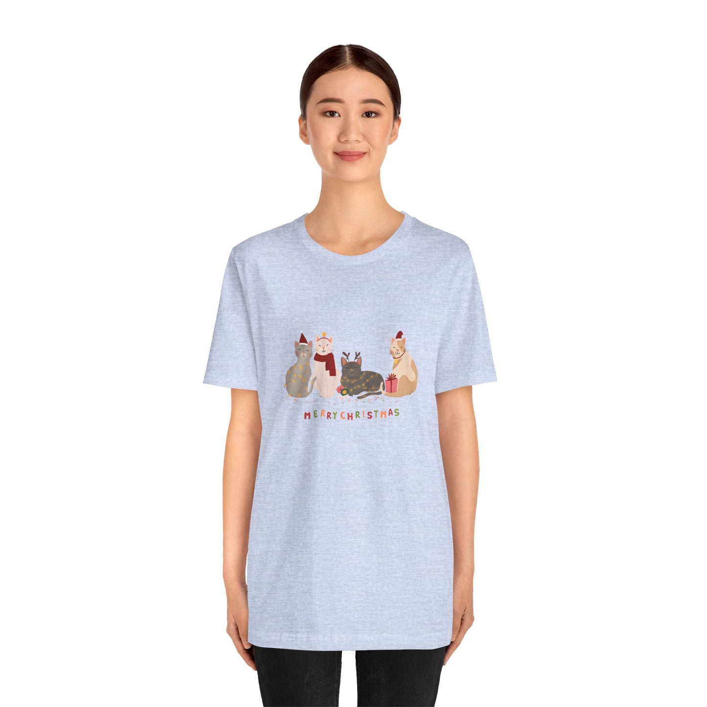 Celebrate the holiday season with our Cats, Merry Christmas Unisex Jersey Short Sleeve Tee! Featuring adorable cats and a festive "Merry Christmas" message, this tee is the purrfect way to spread holiday cheer in comfort and style.