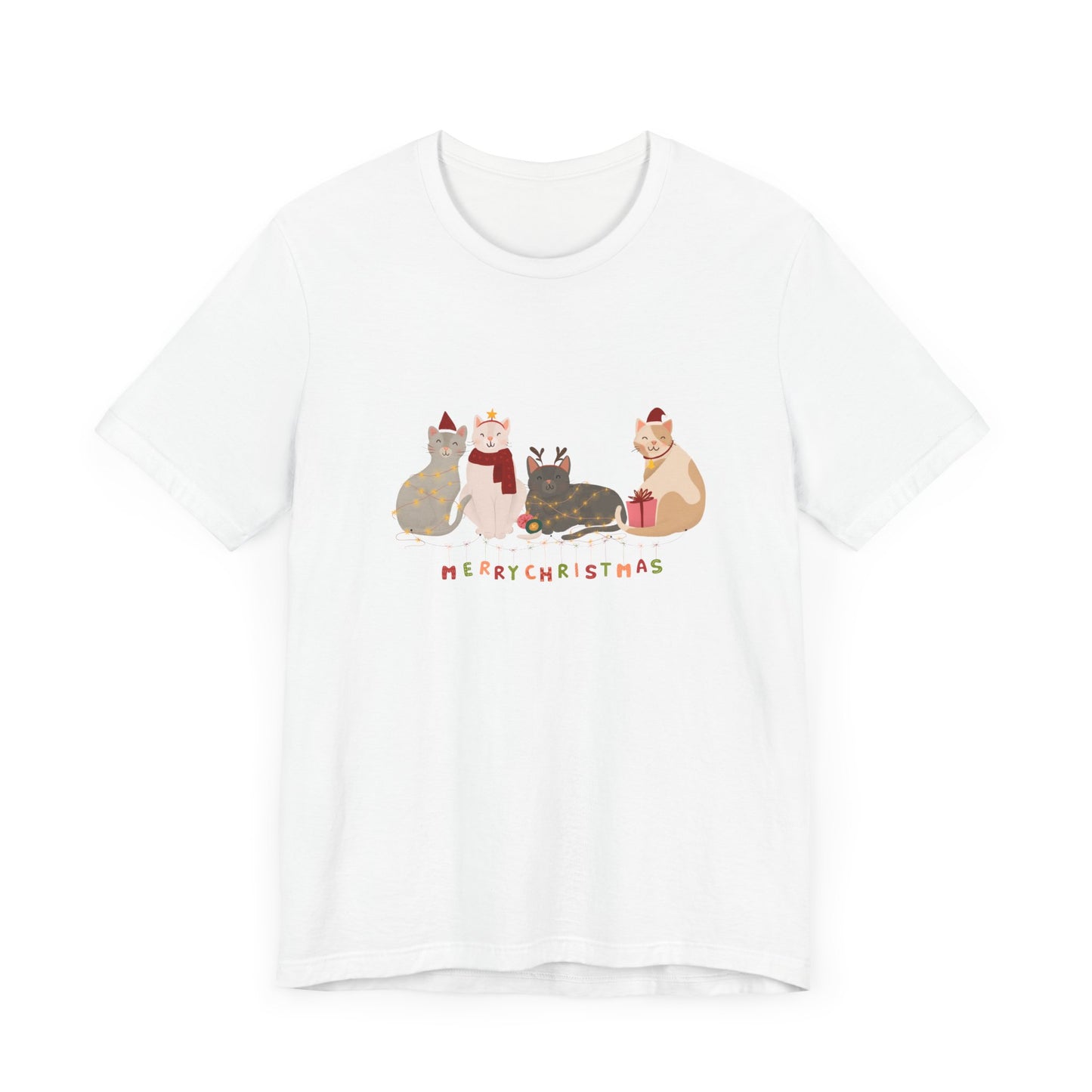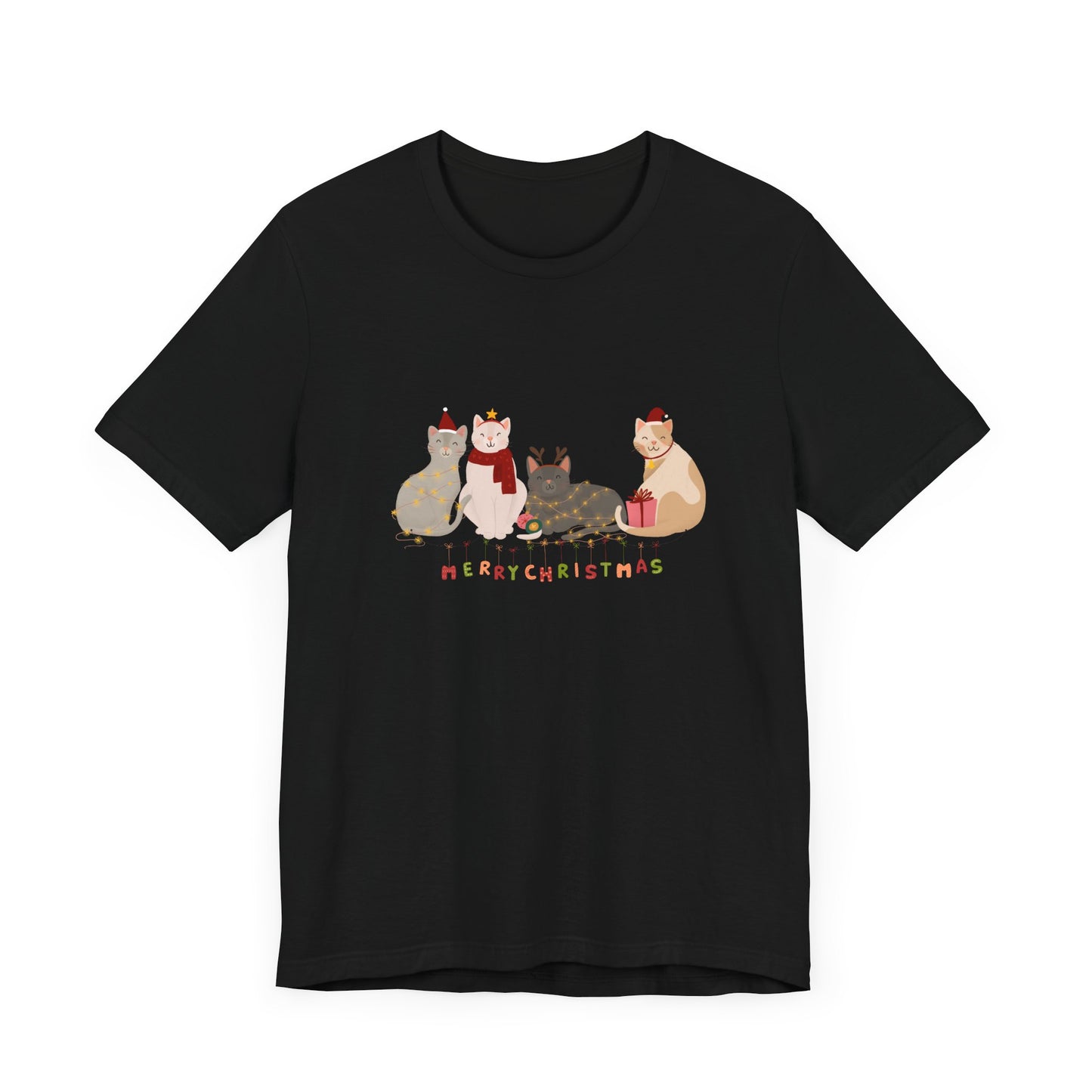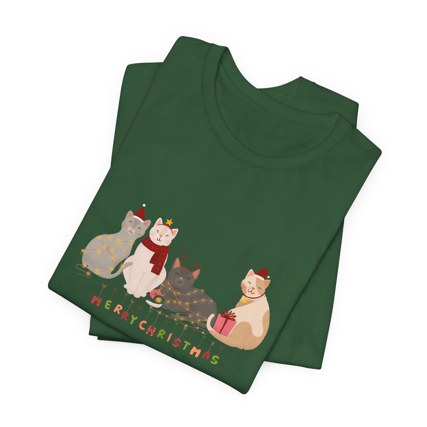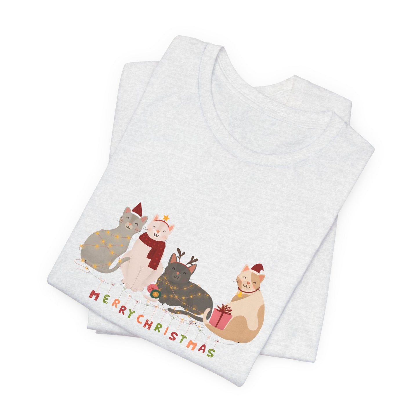 Whether you're celebrating with furry friends or sharing the holiday spirit, this tee is a must-have for any cat lover this Christmas season.