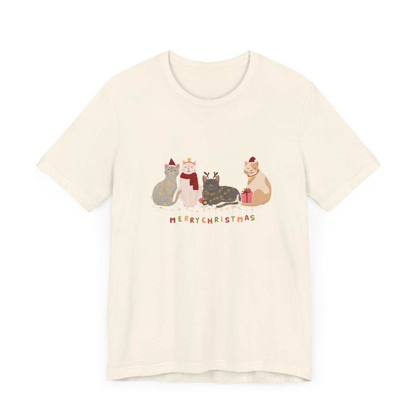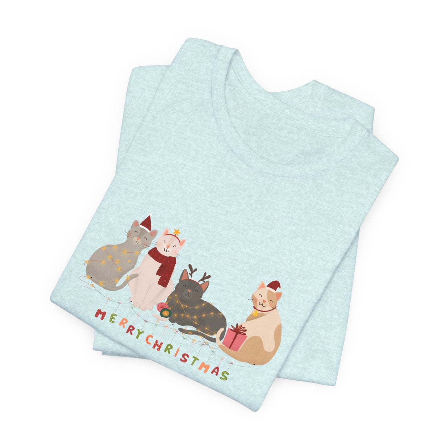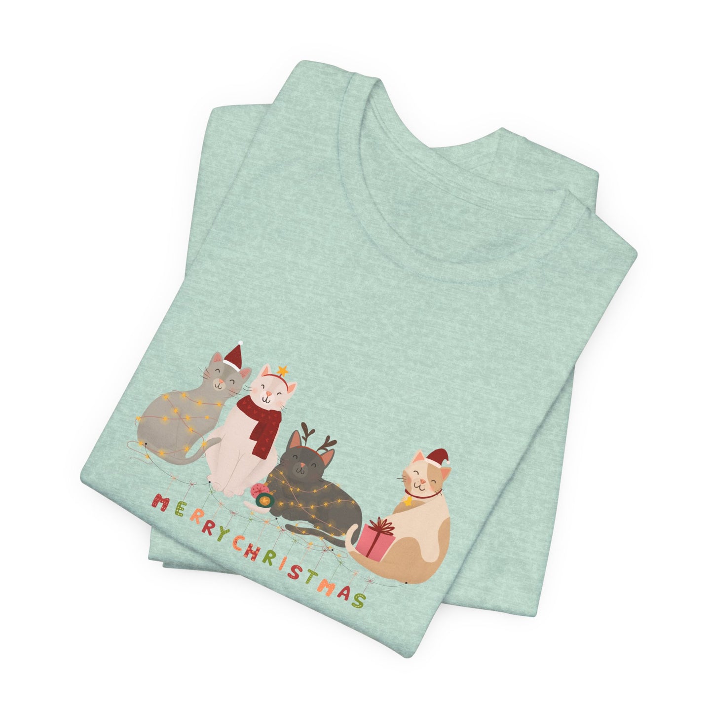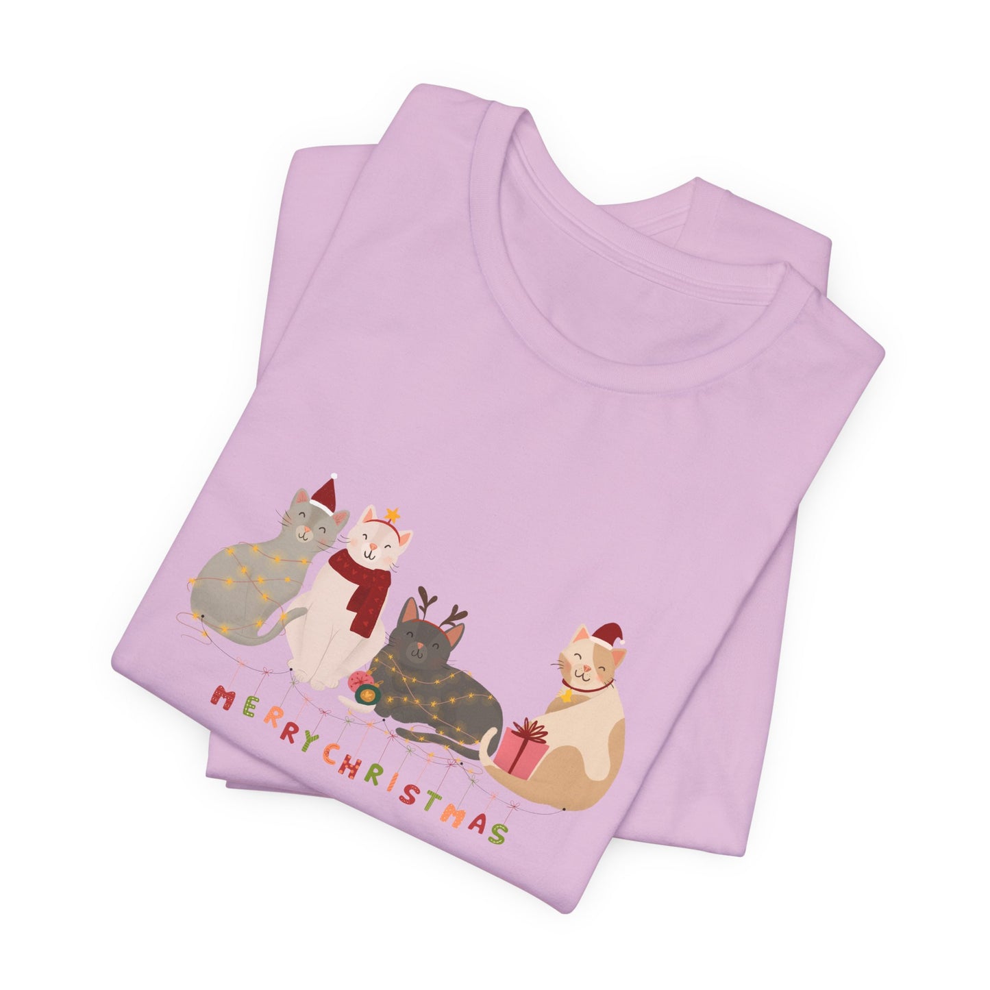 Whether you're celebrating with furry friends or sharing the holiday spirit, this tee is a must-have for any cat lover this Christmas season.