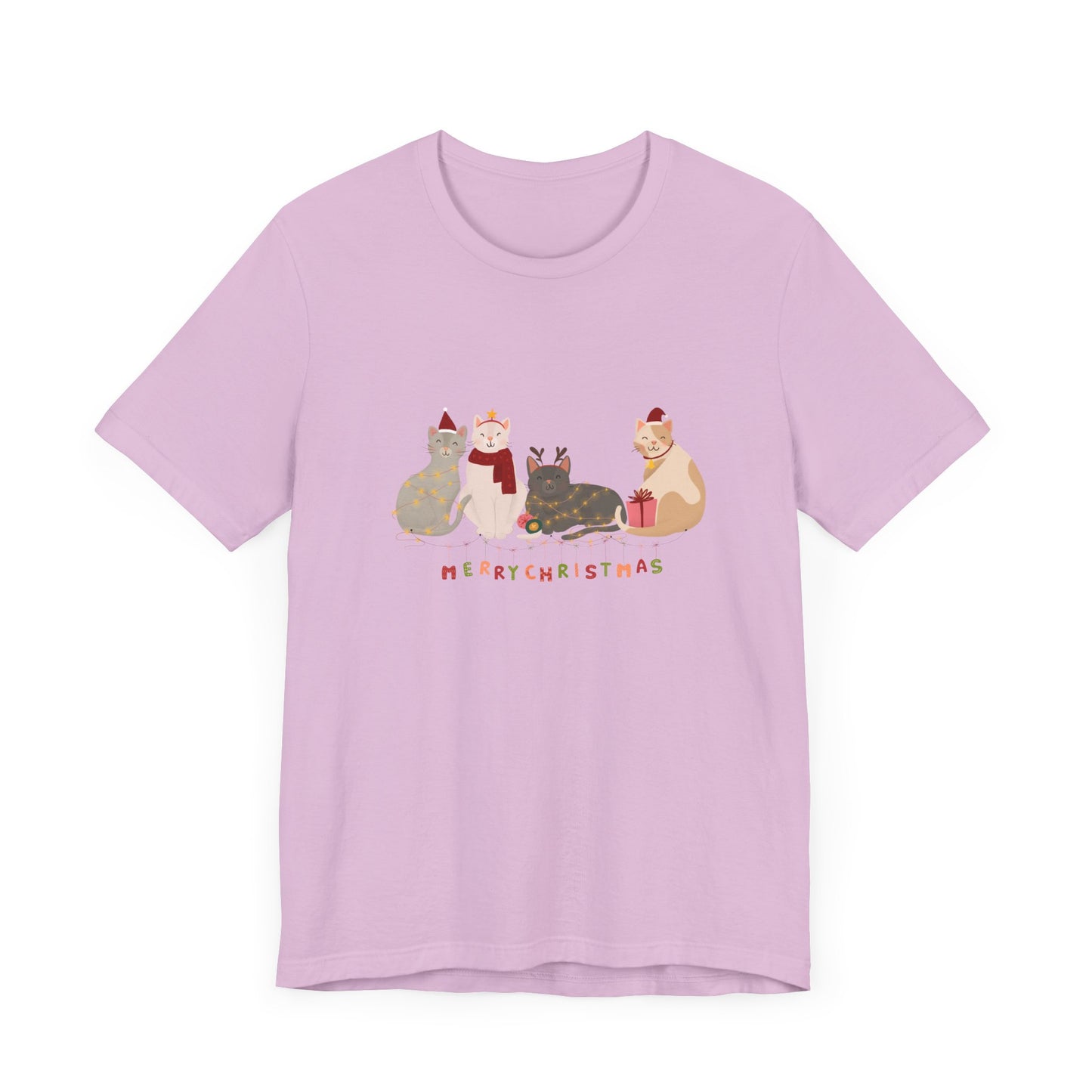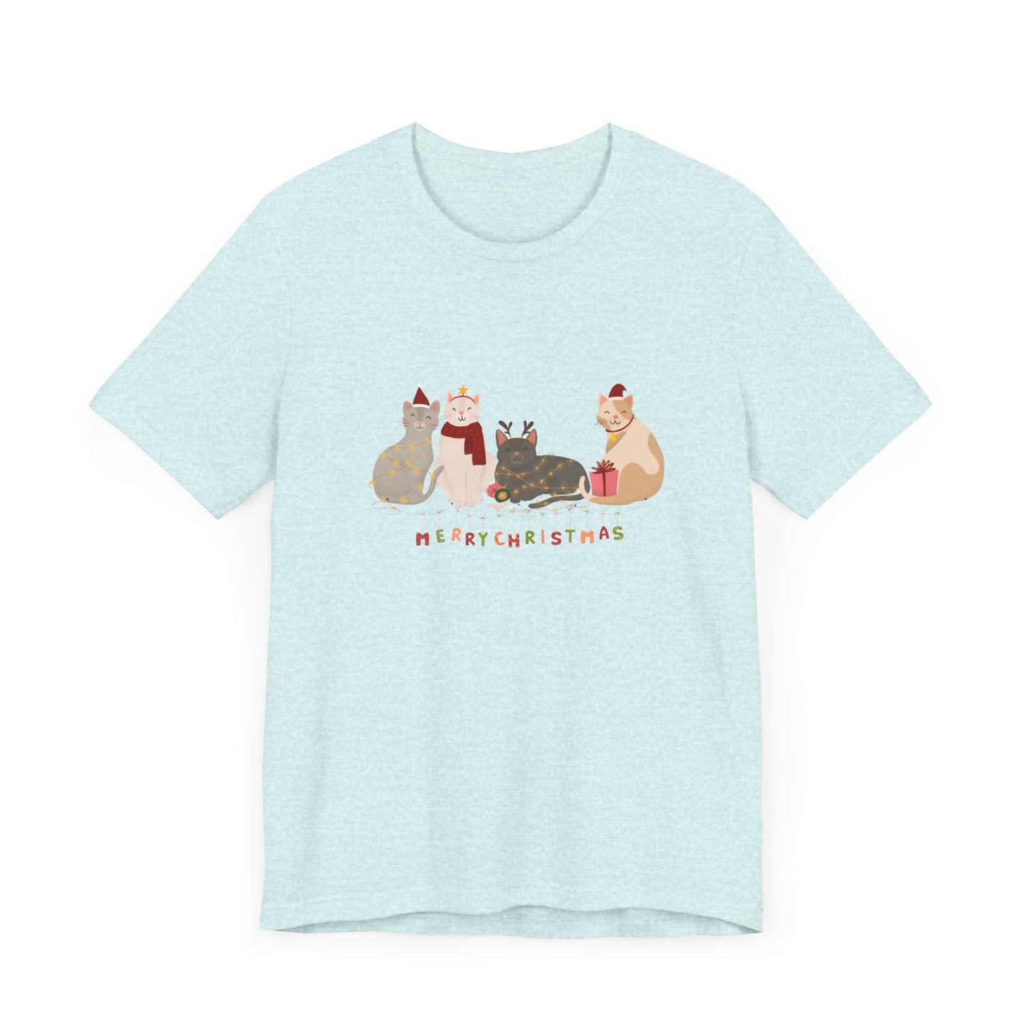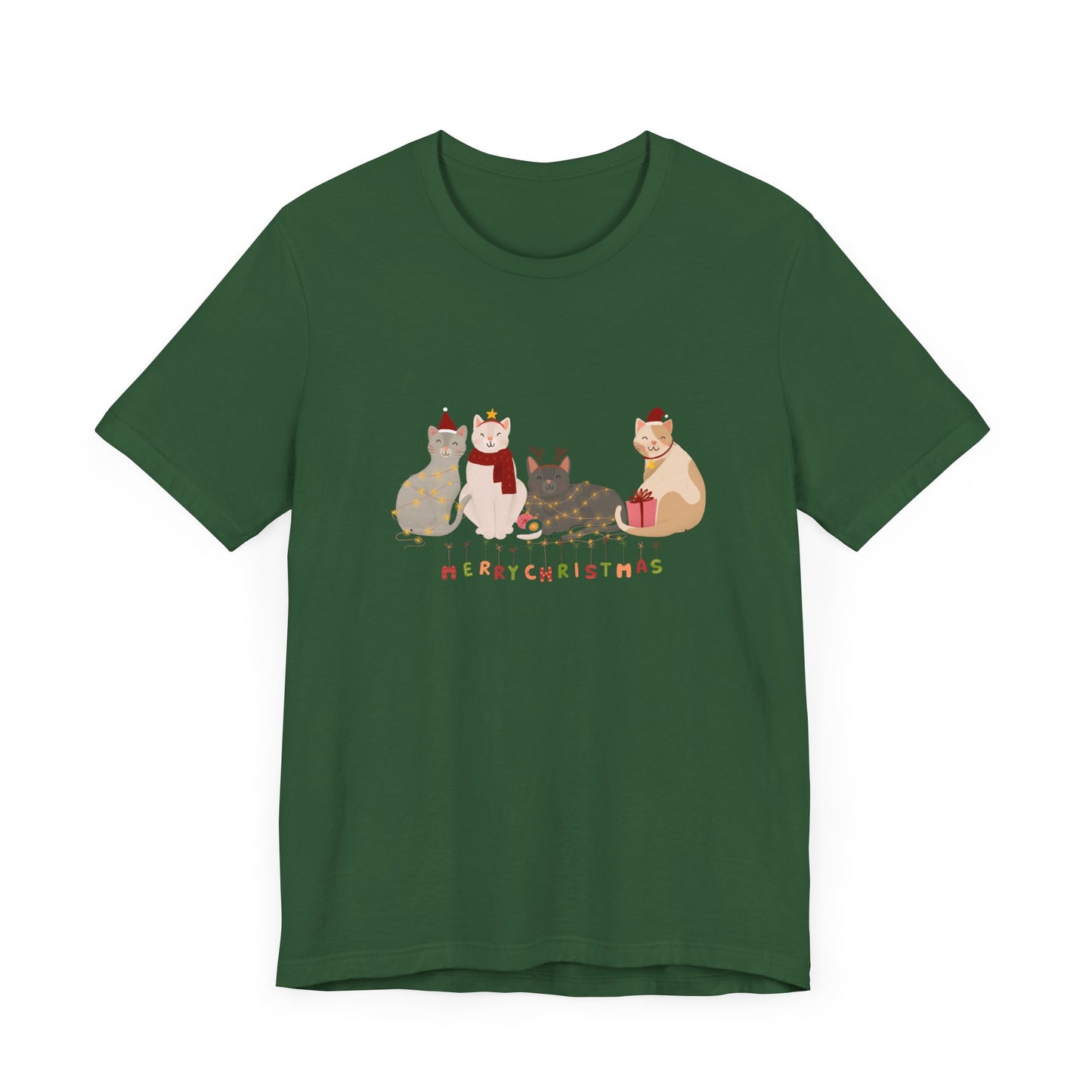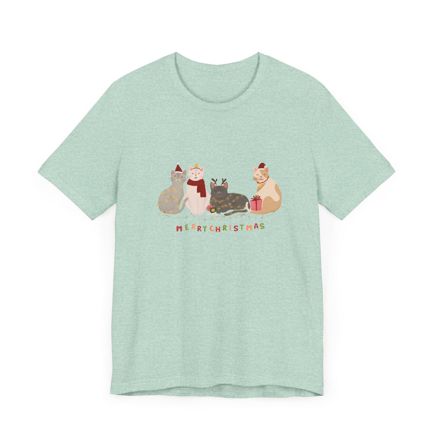 Whether you're celebrating with furry friends or sharing the holiday spirit, this tee is a must-have for any cat lover this Christmas season.
