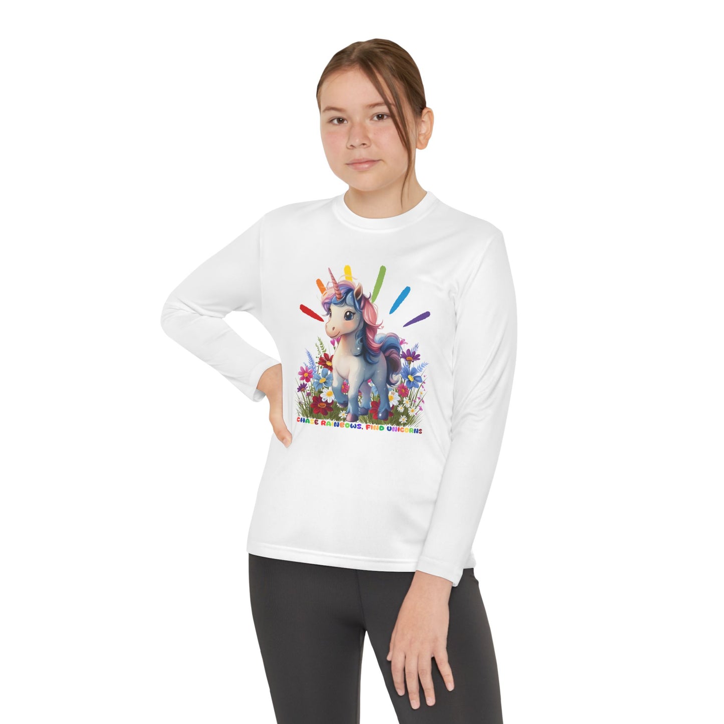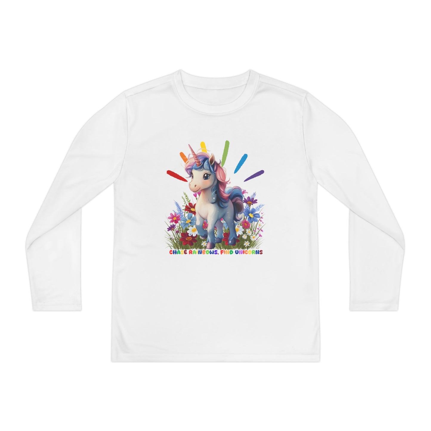 Chase Rainbows, Find Unicorns - Youth Long Sleeve Competitor Tee - 10847
