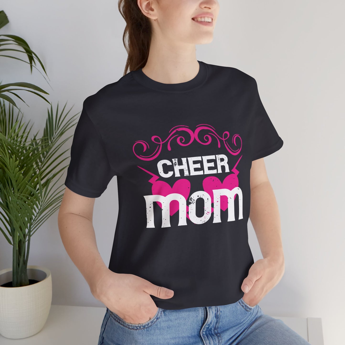 Celebrate the spirit of a true cheerleader with our "Cheer Mom" Unisex Jersey Short Sleeve Tee. Designed for the moms who cheer the loudest and support their athletes every step of the way, this tee is both stylish and comfortable, making it perfect for game days and beyond.
