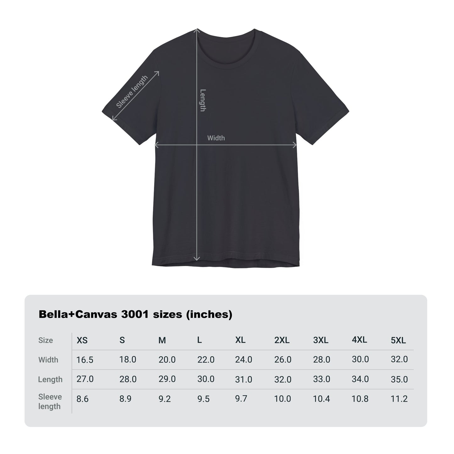 This classic unisex jersey short sleeve tee fits like a well-loved favorite. Soft cotton and quality print make users fall in love with it over and over again. These t-shirts have-ribbed knit collars to bolster shaping. The shoulders are tapered for a better fit over time. Dual side seams hold the garment's shape for longer.