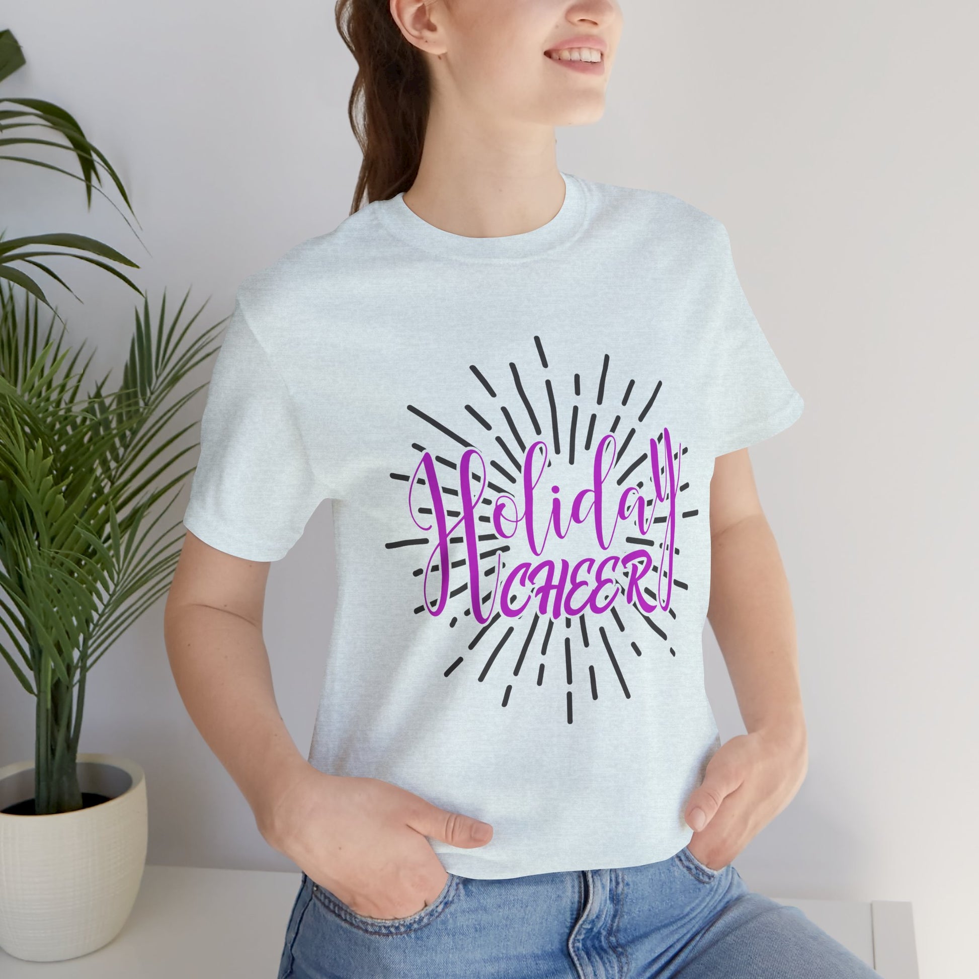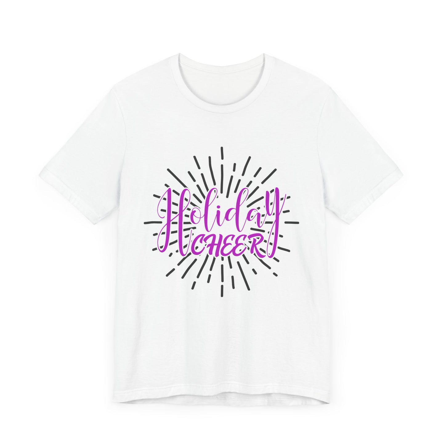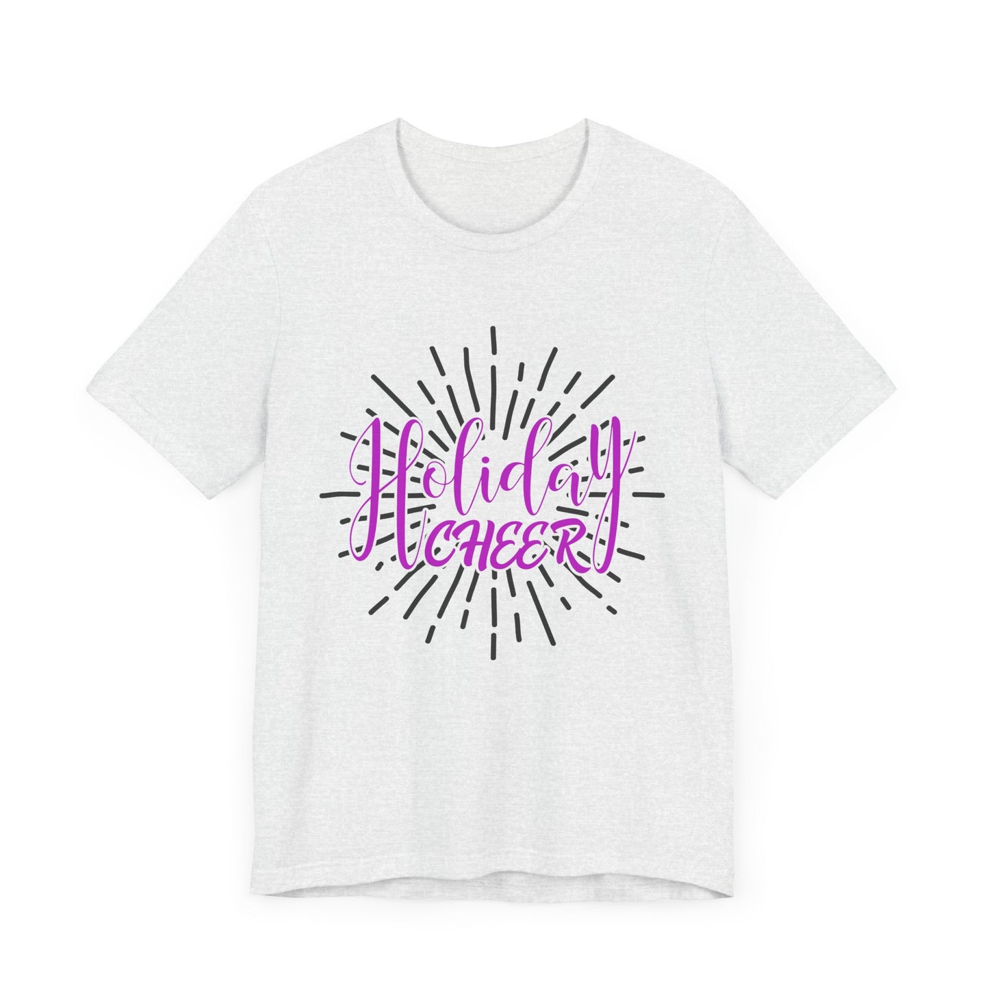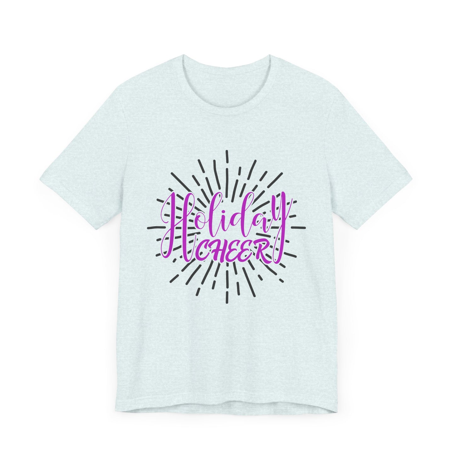 Celebrate the magic of the season with our "Holiday Cheer" Unisex Jersey Short Sleeve Tee. Whether you're spreading holiday joy, enjoying festive activities, or simply relaxing with loved ones, this tee is the perfect way to showcase your Christmas spirit. Get yours today and let the holiday cheer begin!