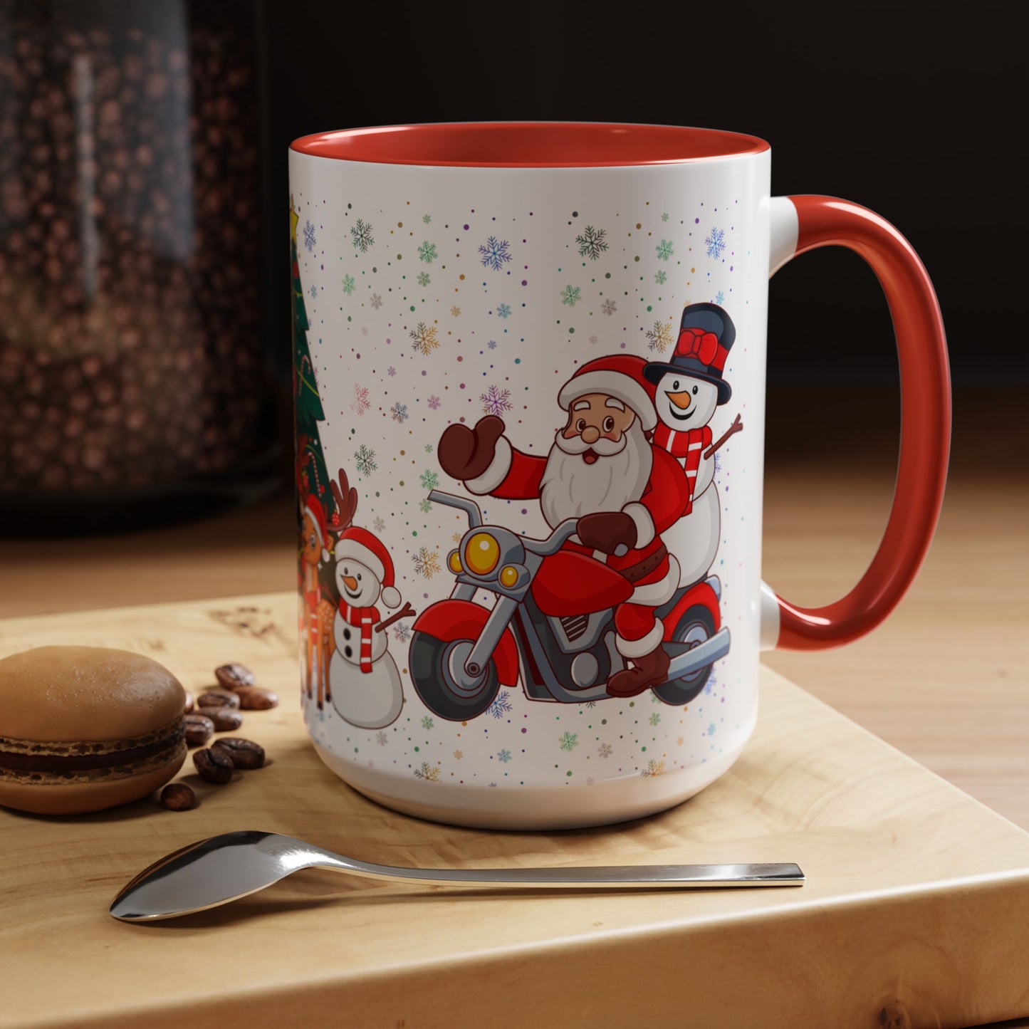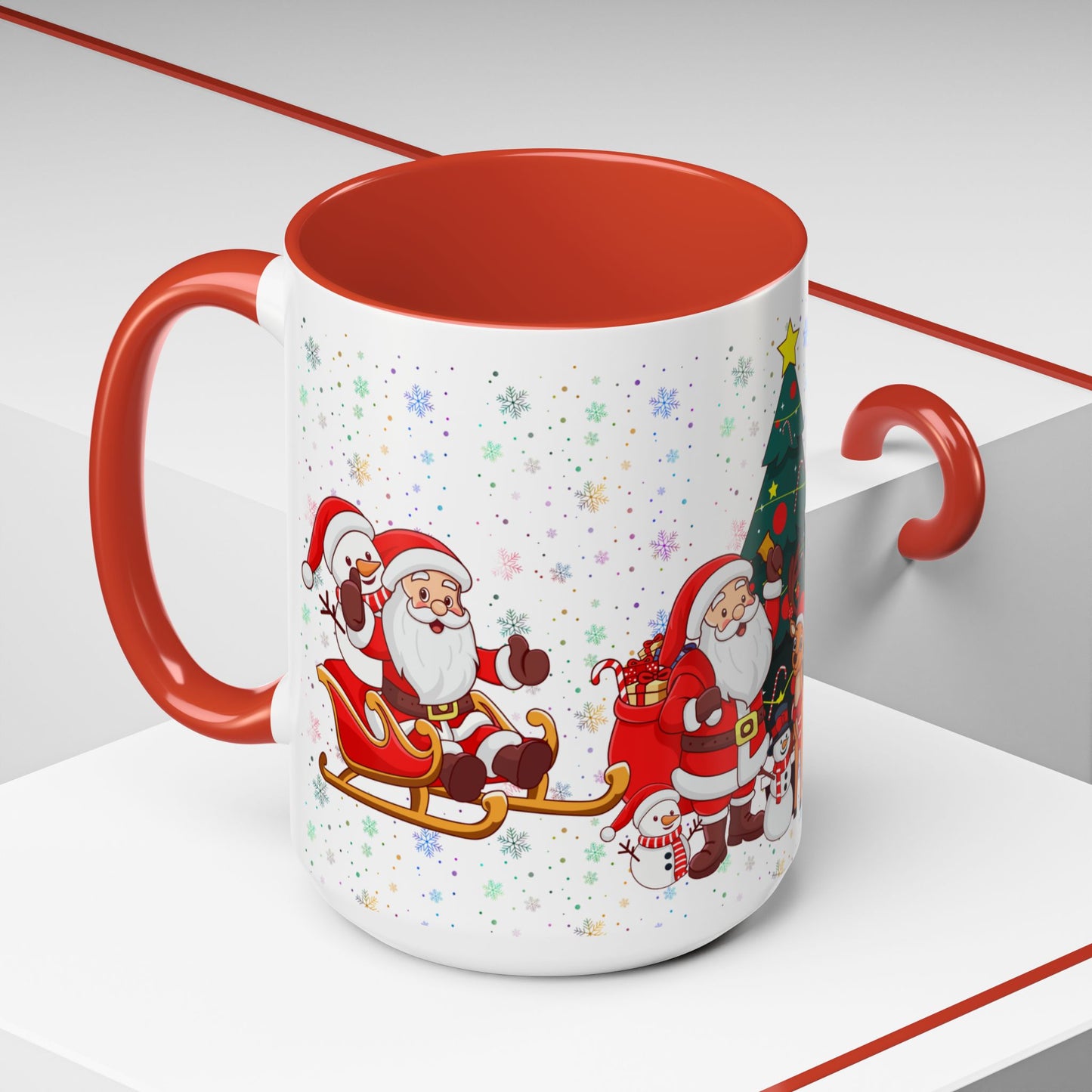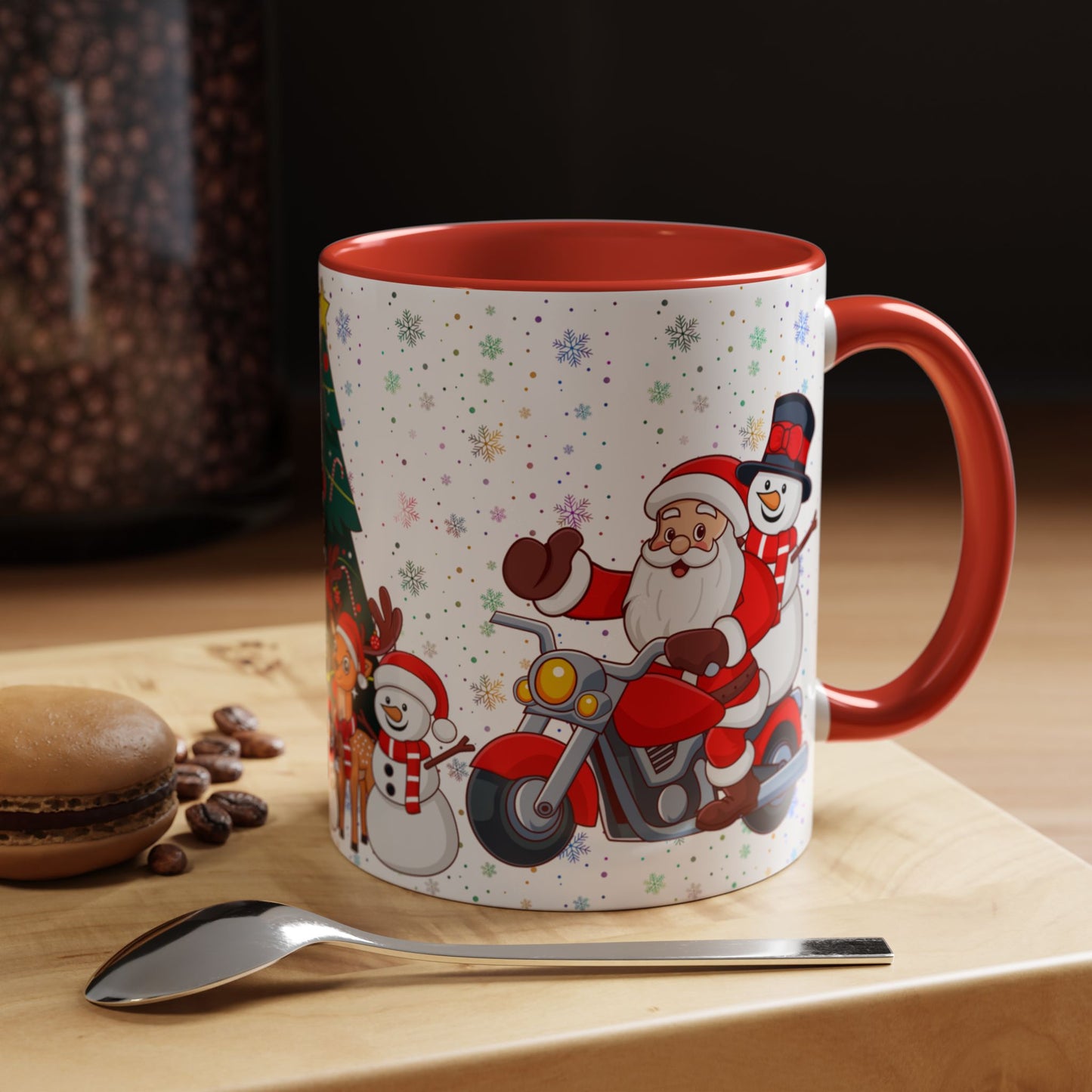 Bring the festive cheer to your coffee breaks with our Christmas Party Accent Coffee Mug! Featuring a delightful design of Santa, a snowman, and a reindeer celebrating together, this mug is the perfect way to enjoy your favorite beverages during the holiday season.