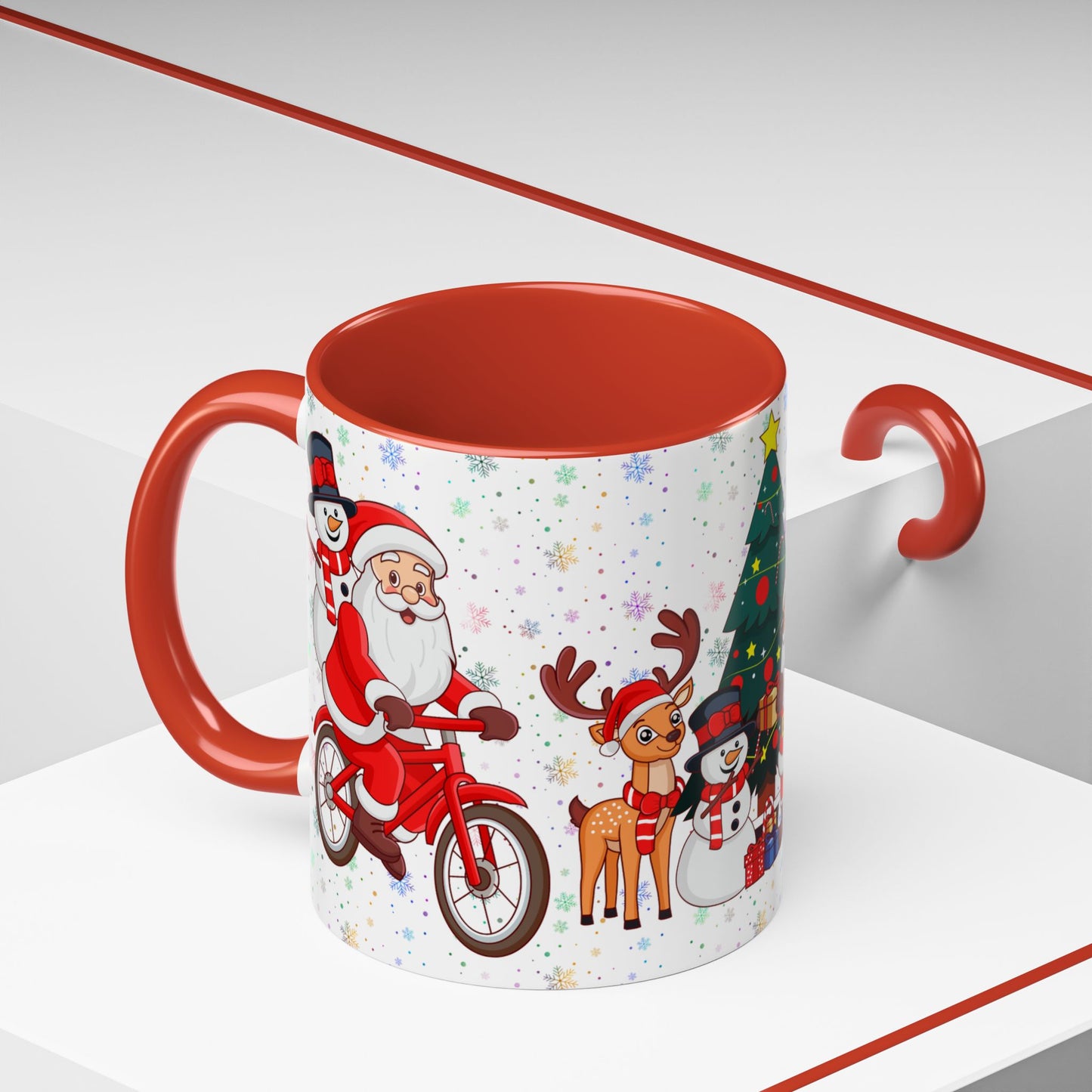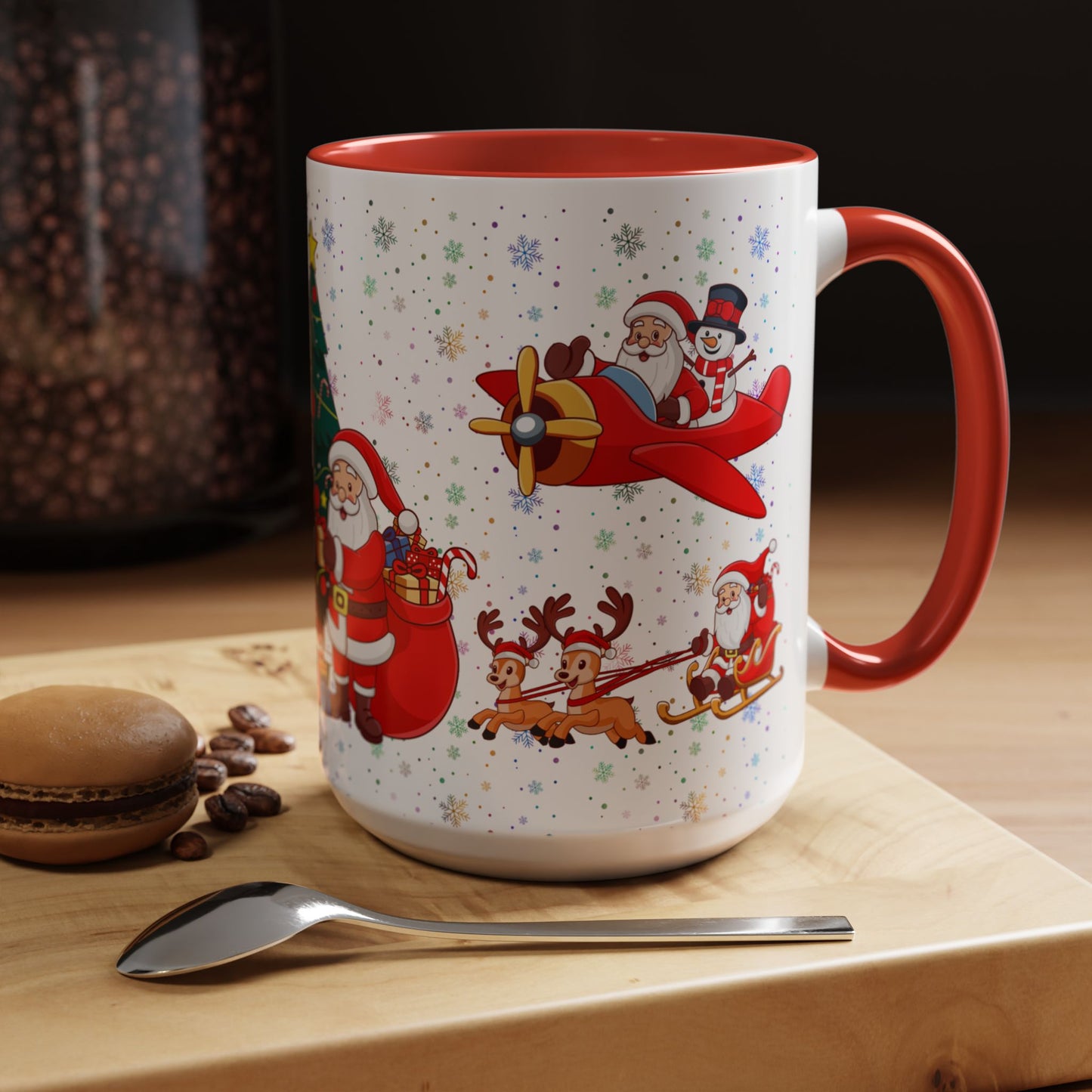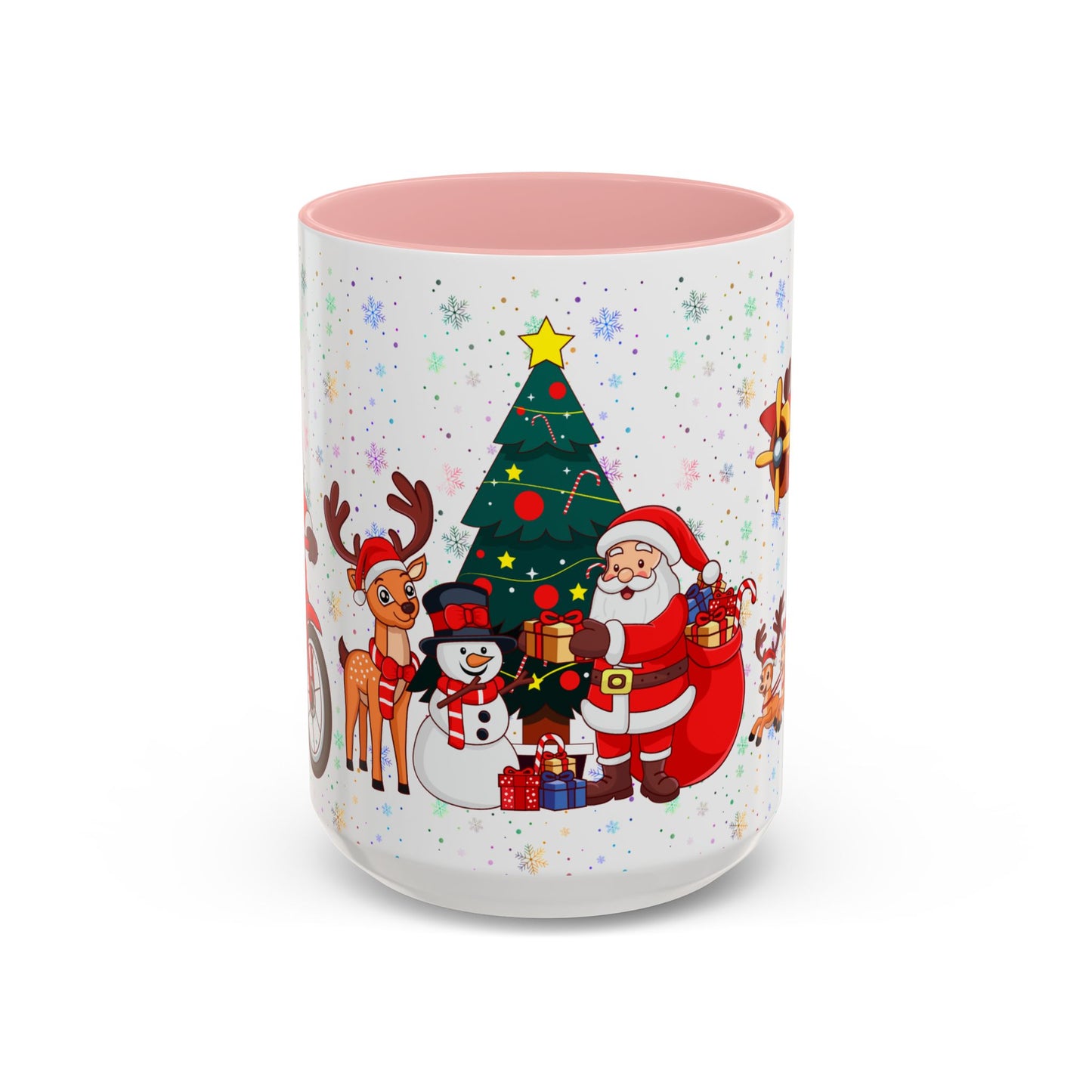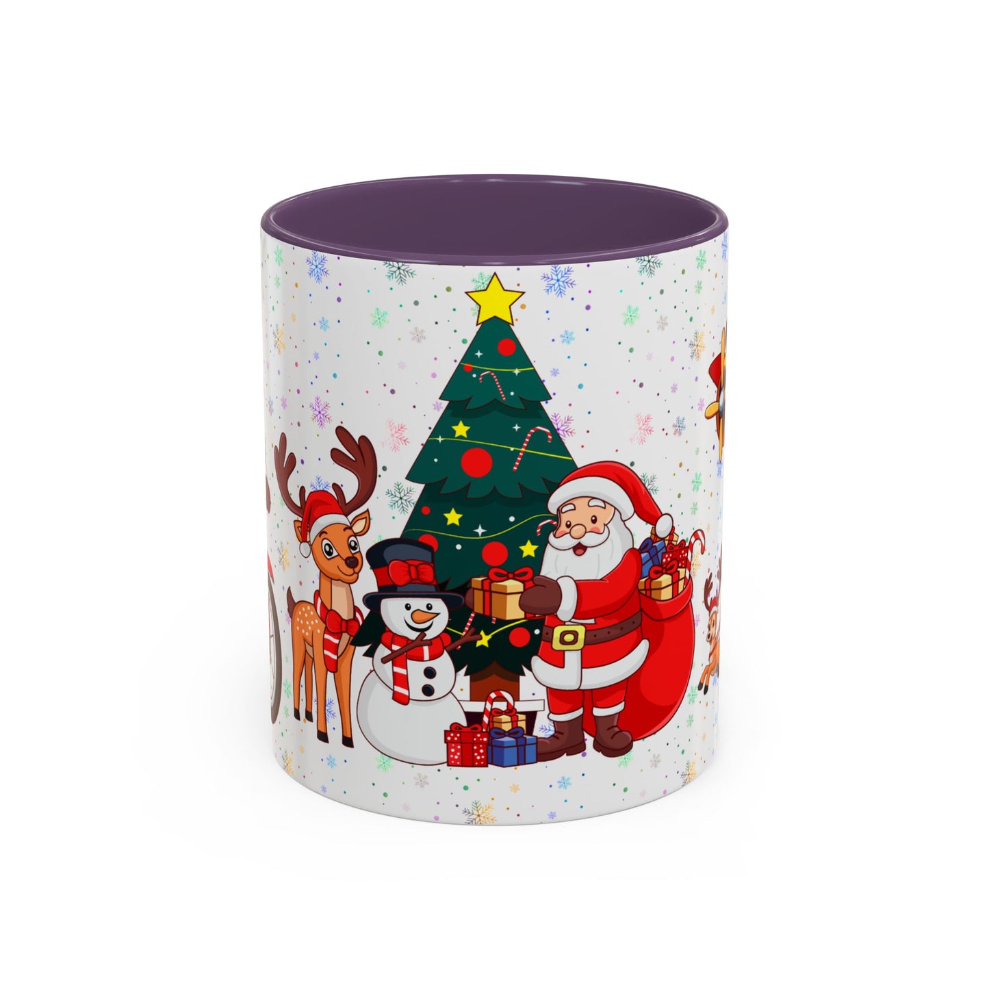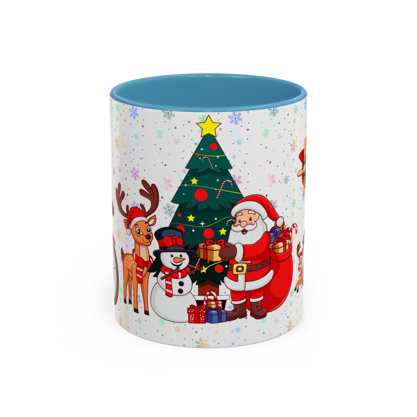 Bring the festive cheer to your coffee breaks with our Christmas Party Accent Coffee Mug! Featuring a delightful design of Santa, a snowman, and a reindeer celebrating together, this mug is the perfect way to enjoy your favorite beverages during the holiday season.