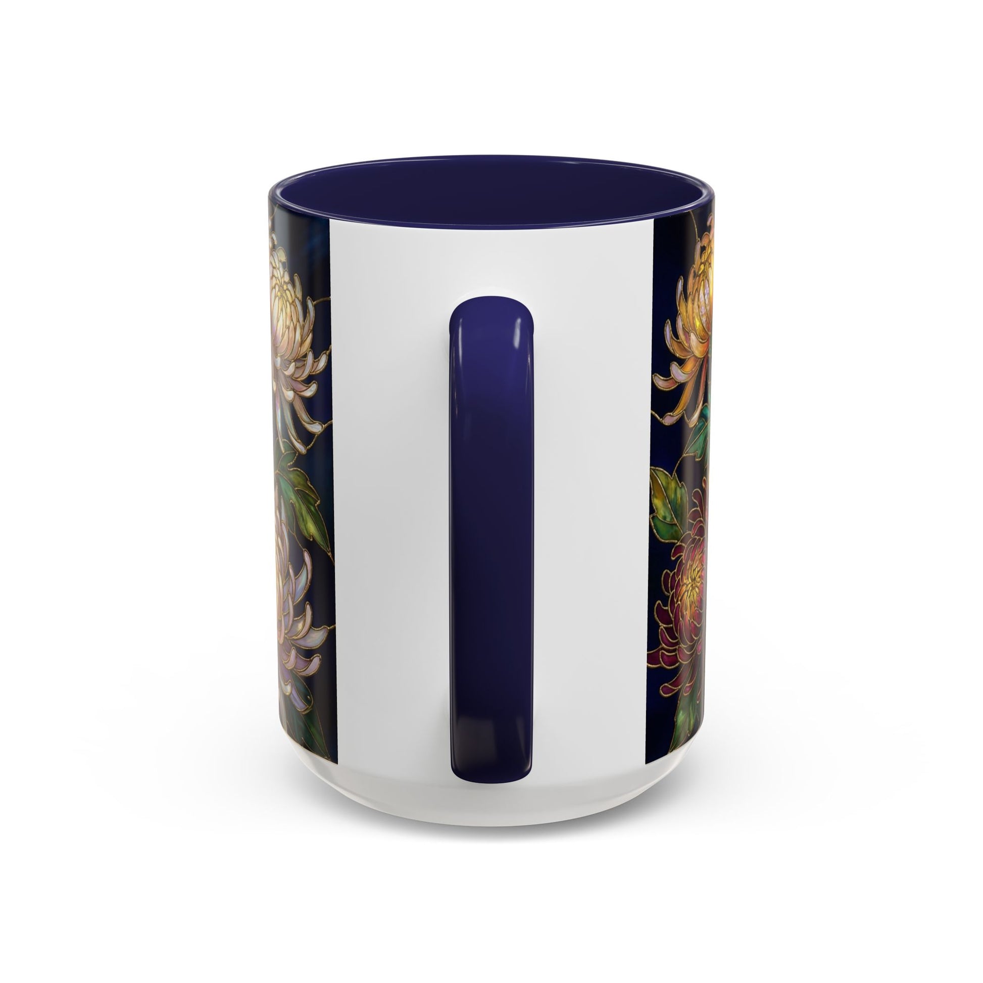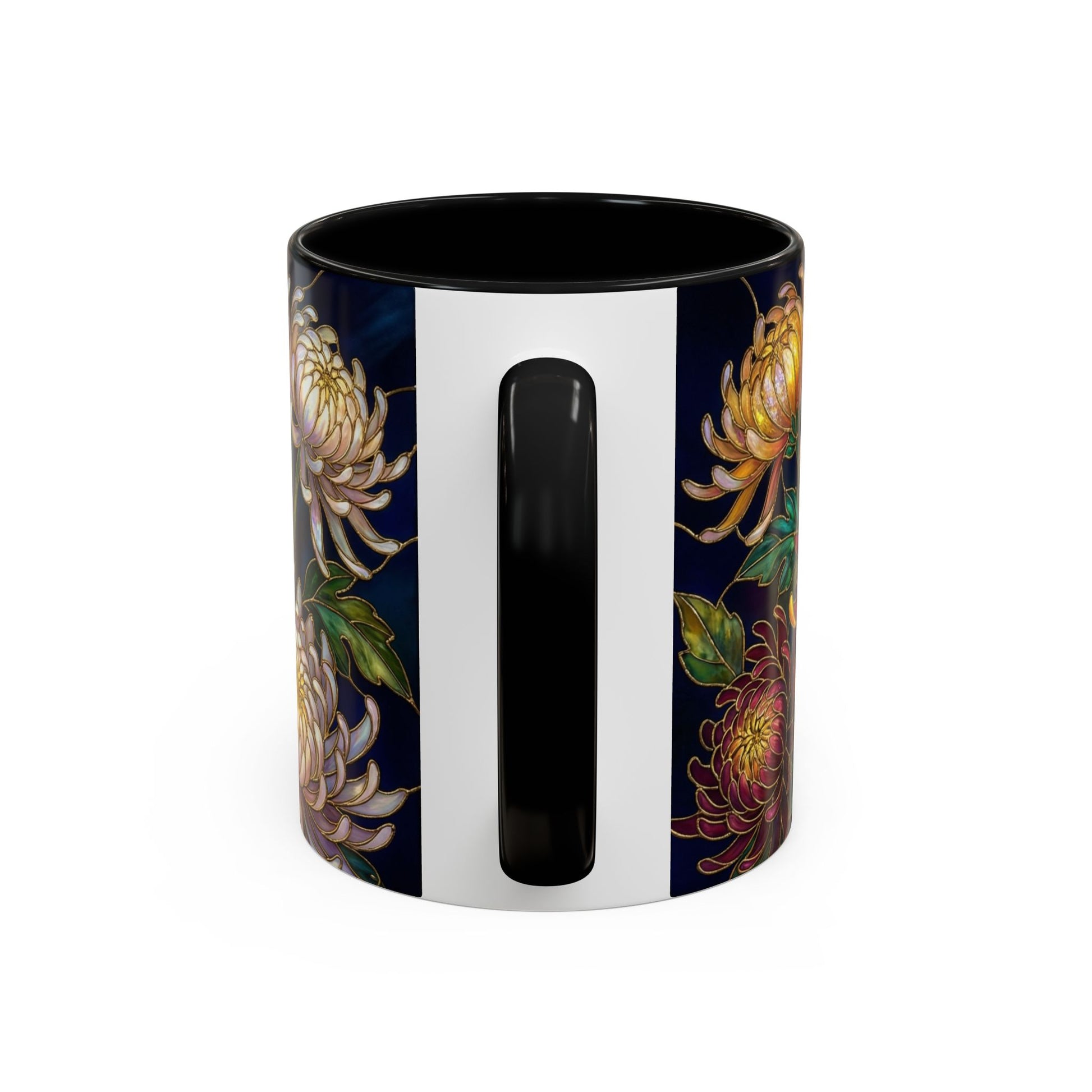 Chrysanthemum Floral Accent Coffee Mug — Stained Glass Design (11/15oz) - 14541
