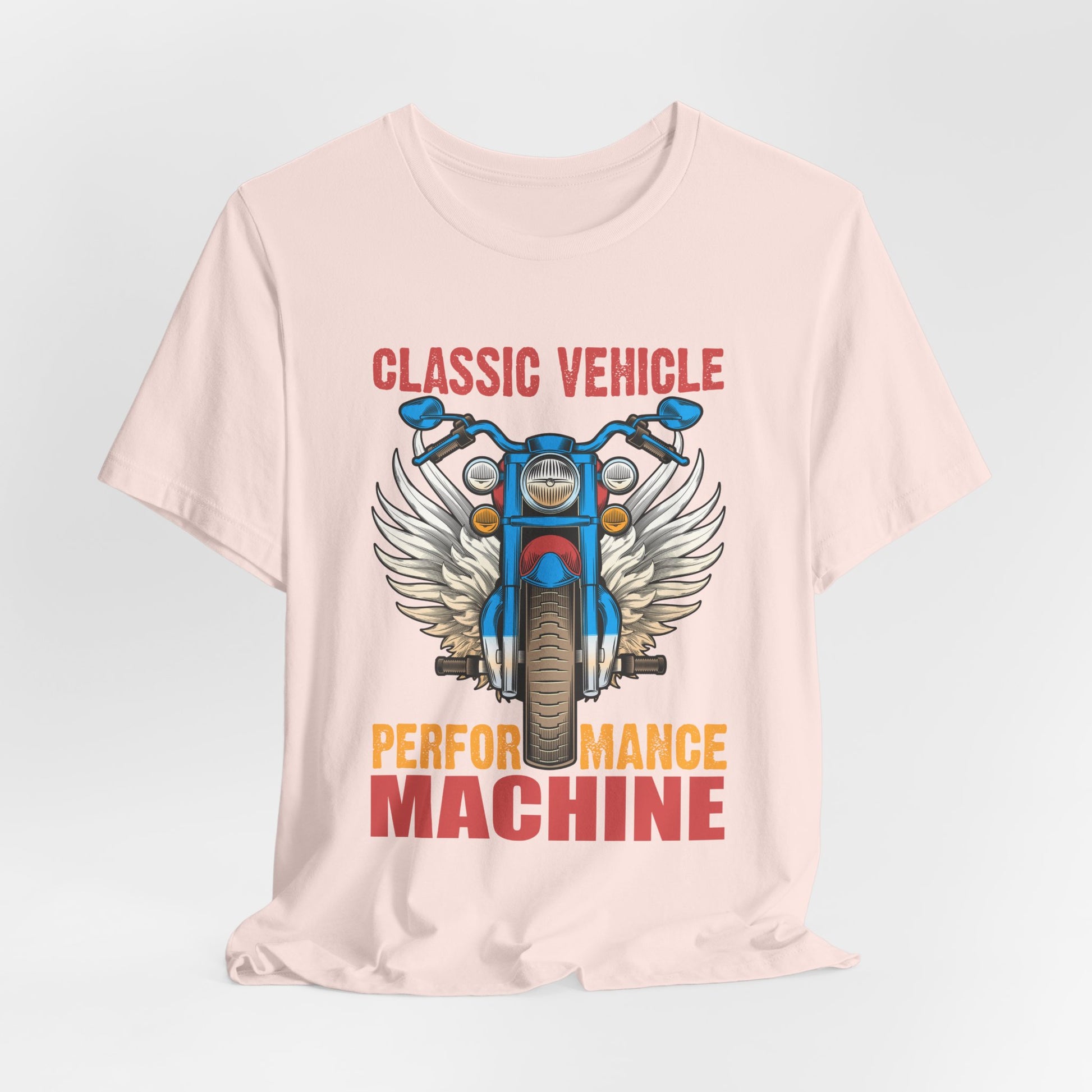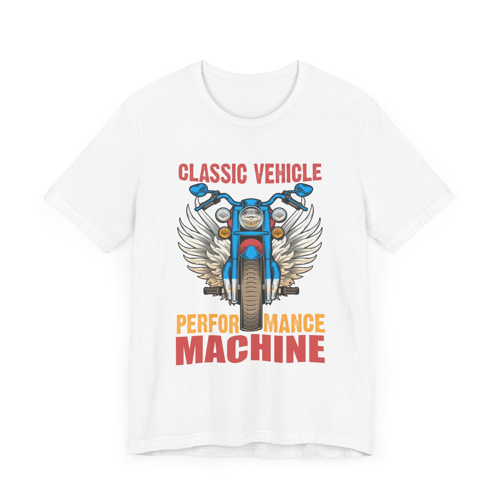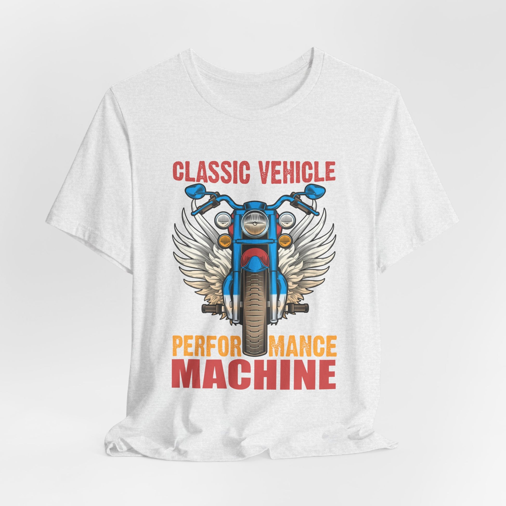 Made from high-quality ring-spun cotton, this tee offers a soft and comfortable fit for both men and women. The striking design features the phrase "Classic Vehicle, Performance Machine" alongside a sleek motorcycle graphic, capturing the essence of what it means to ride with power and precision.
