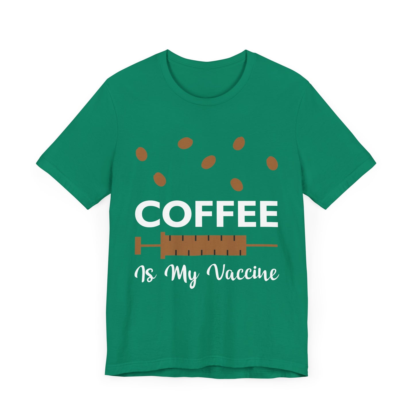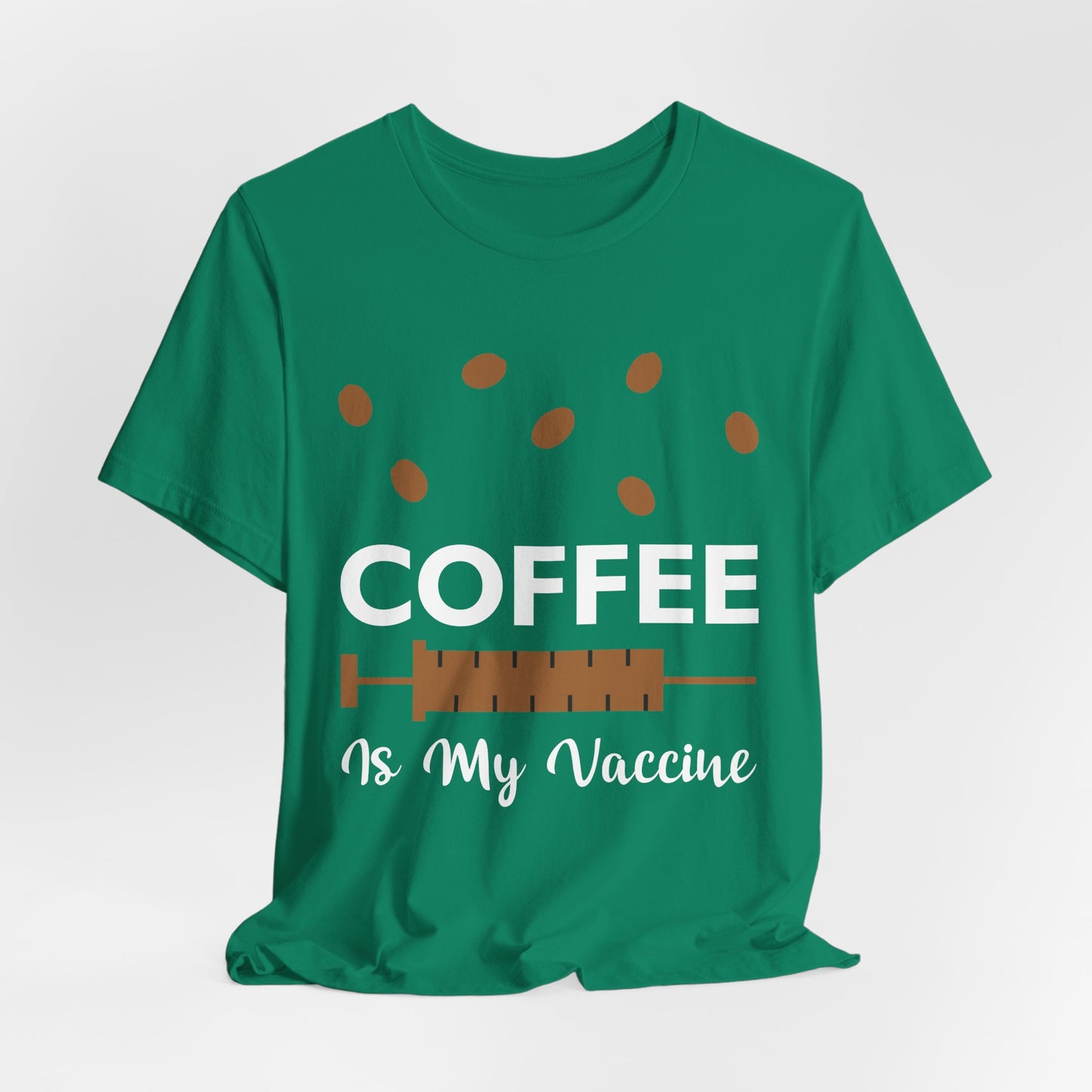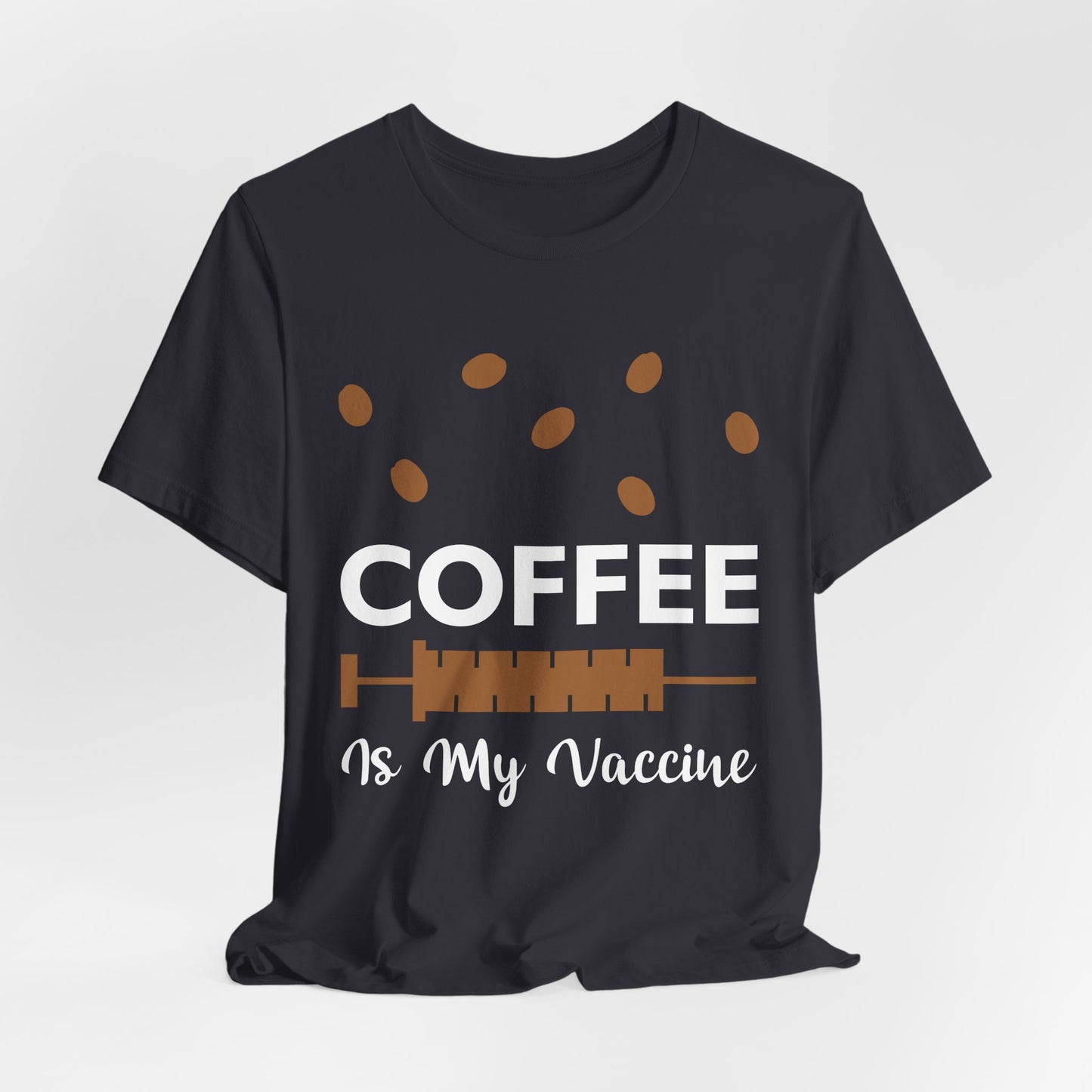 Celebrate your love for coffee with a humorous twist in the “Coffee Is My Vaccine” Unisex Jersey Short Sleeve Tee. Order yours today and enjoy your daily coffee ritual with a smile!