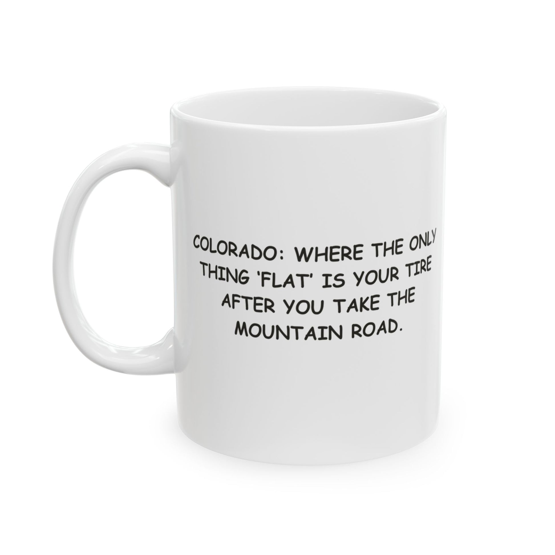 "Colorado: Where the only thing ‘flat’ is your tire after you take the mountain road." Ceramic Coffee Mug - 13465