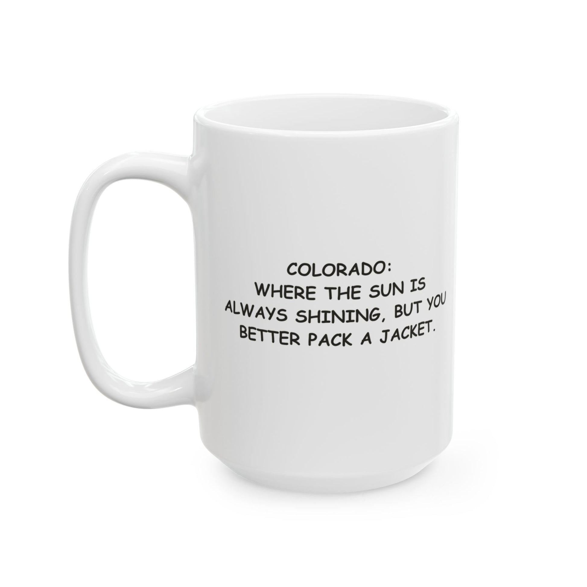 Colorado: Where the sun is always shining, but you better pack a jacket." Ceramic Mug - 13529