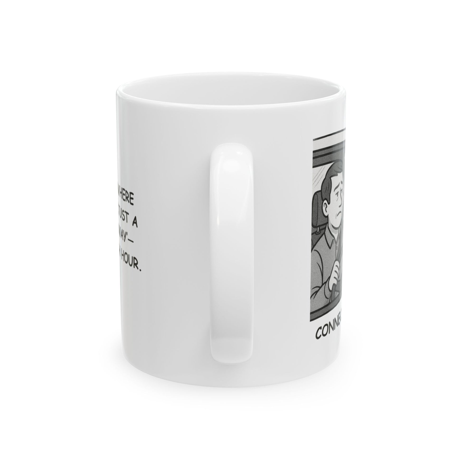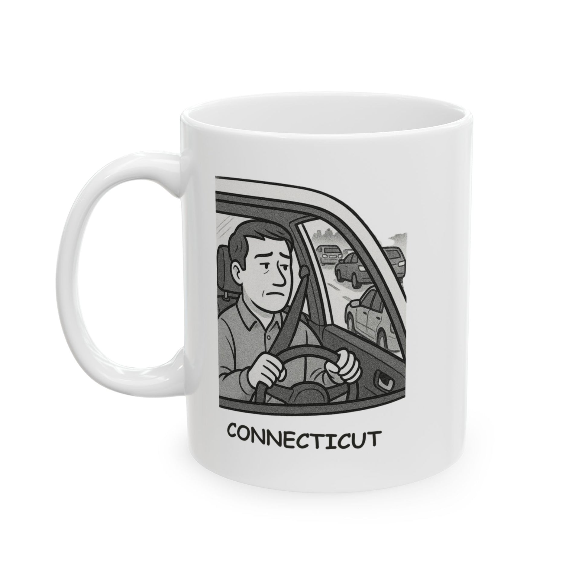 In Connecticut, everything’s close—until traffic says otherwise. Our "Connecticut: Where everything is ‘just a short drive away’—unless it’s rush hour." Ceramic Mug delivers a laugh with every sip. Built from sturdy ceramic, it’s perfect for surviving those “short” drives that turn into scenic delays.