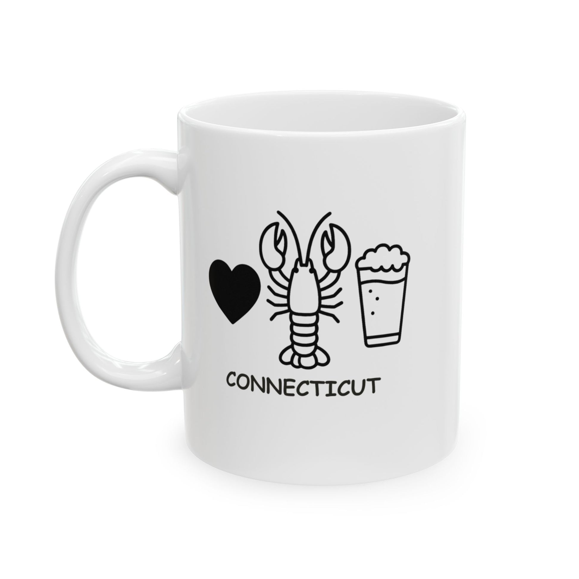 In Connecticut, happiness is served with butter and a lobster roll. Our "Connecticut: Where the best things in life come with a side of lobster." Ceramic Mug brings a taste of coastal charm to every sip. Whether you're enjoying your morning brew or dreaming of your next seafood feast, this mug is the perfect companion.