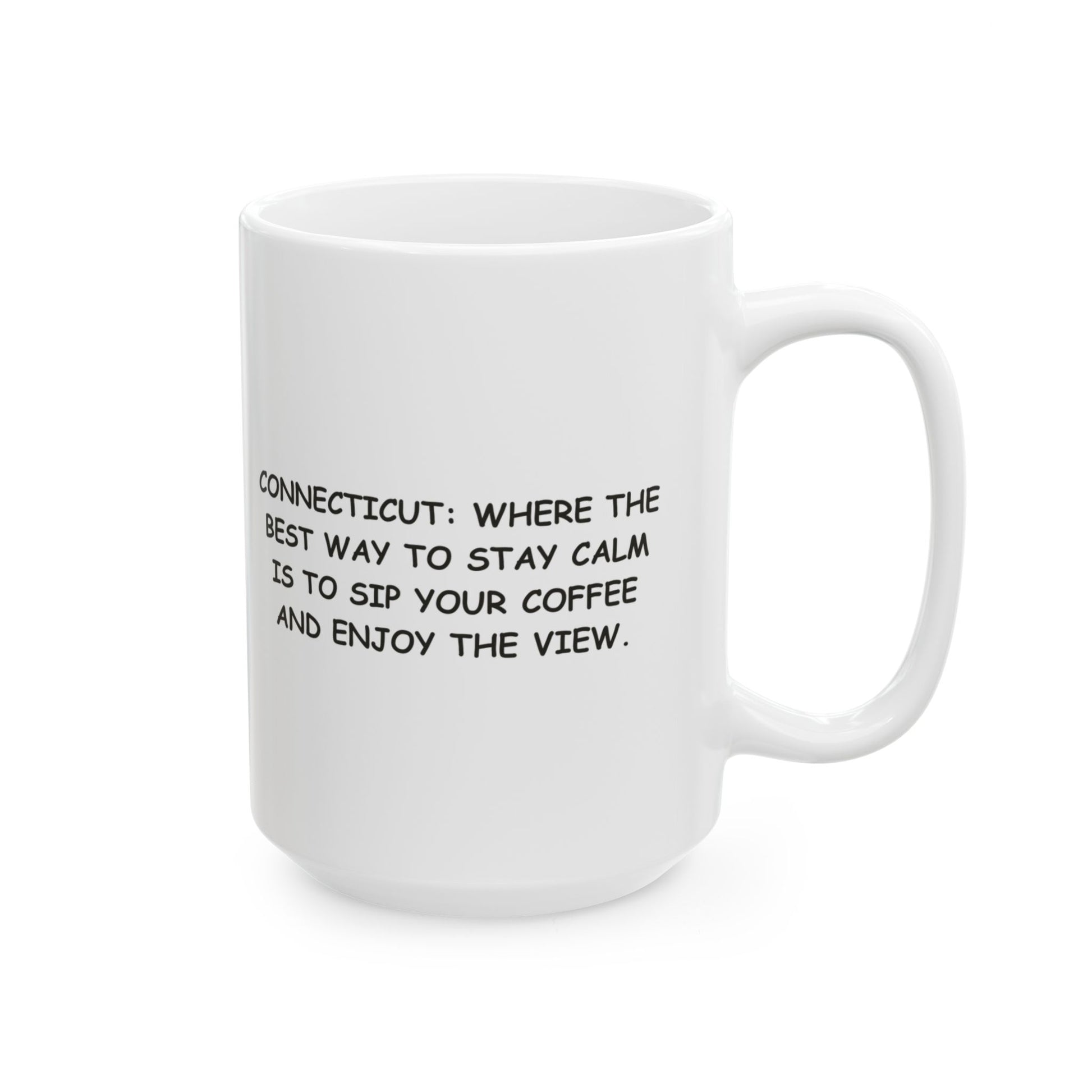 "Connecticut: Where the best way to stay calm is to sip your coffee and enjoy the view." Ceramic Coffee Mug - 13803
