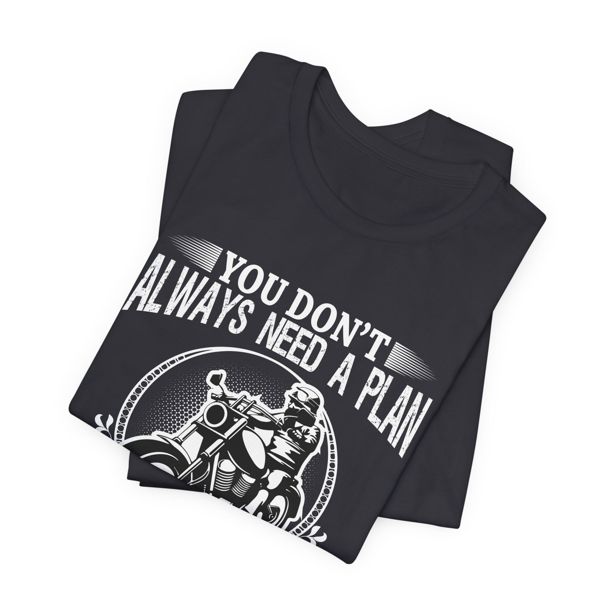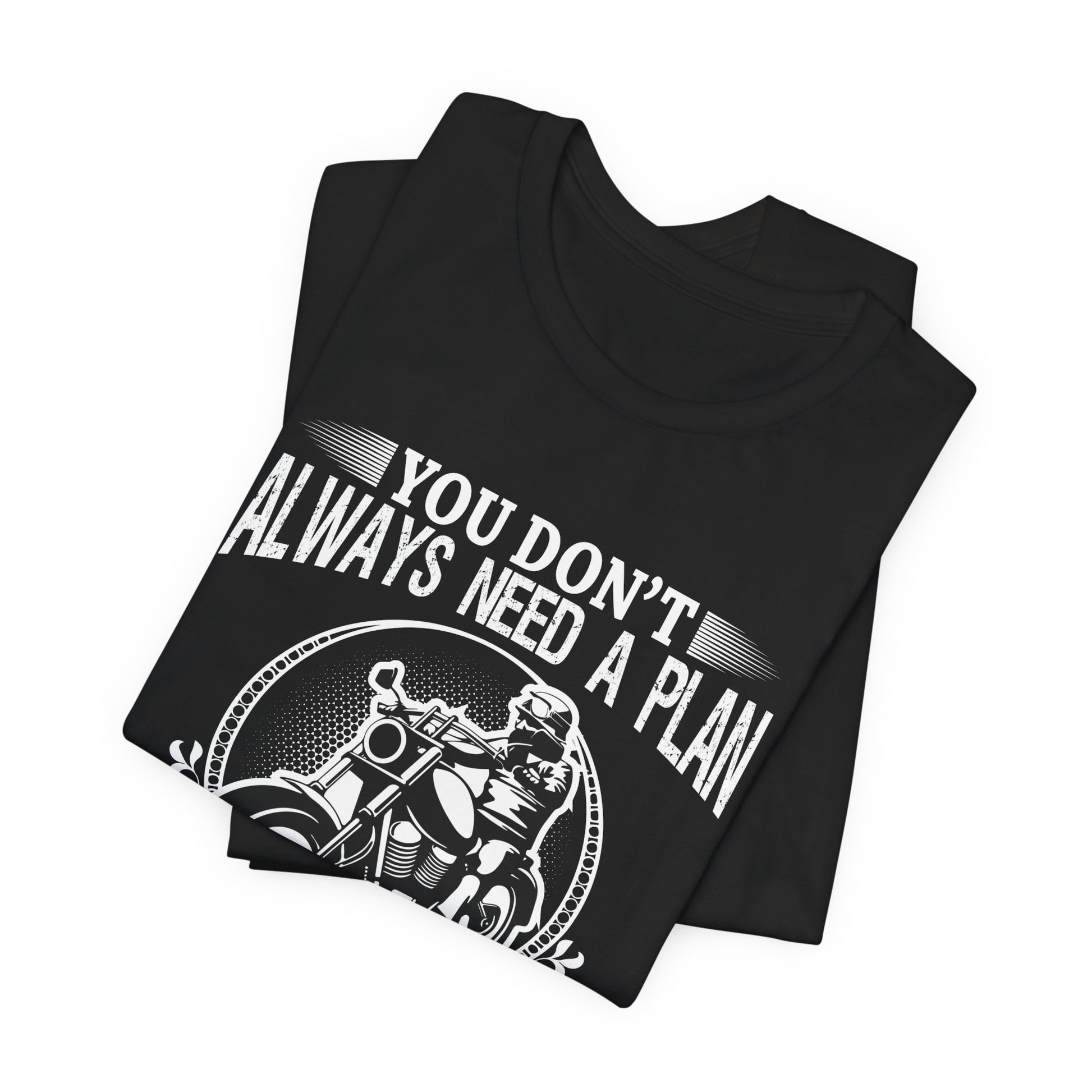 Unleash your inner rebel with our "Motobikes: You Don't Always Need a Plan, Sometimes You Just Need Balls And A Beard" Unisex Jersey Short Sleeve Tee. This tee is for those who live life on the edge, embracing the thrill of the ride without hesitation.