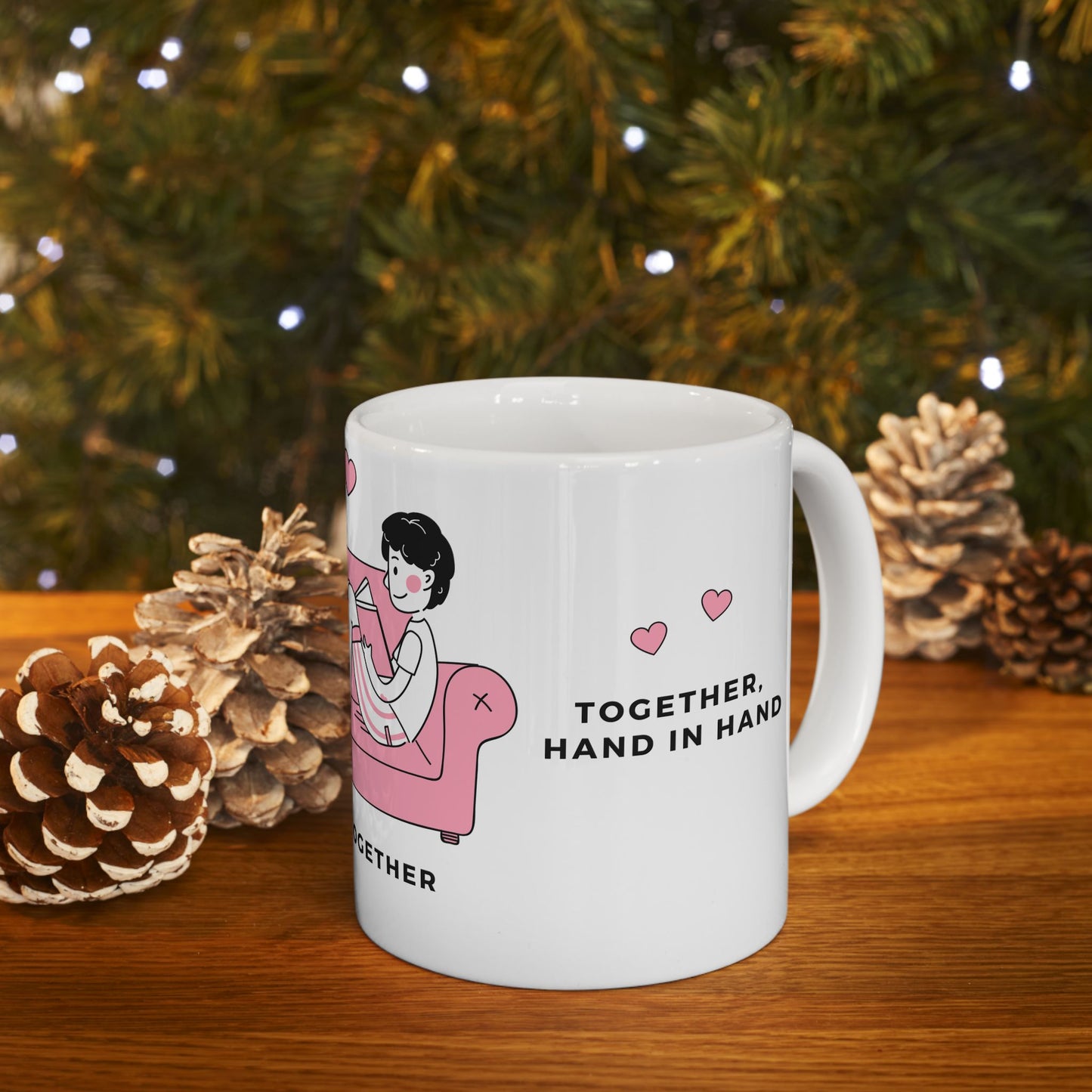 Celebrate love that lasts a lifetime with our Couple, Forever Together ceramic mug. Designed for soulmates, this mug is a beautiful reminder that true love knows no end. Whether you're sipping coffee together or sharing a quiet moment apart, this mug keeps your hearts connected.