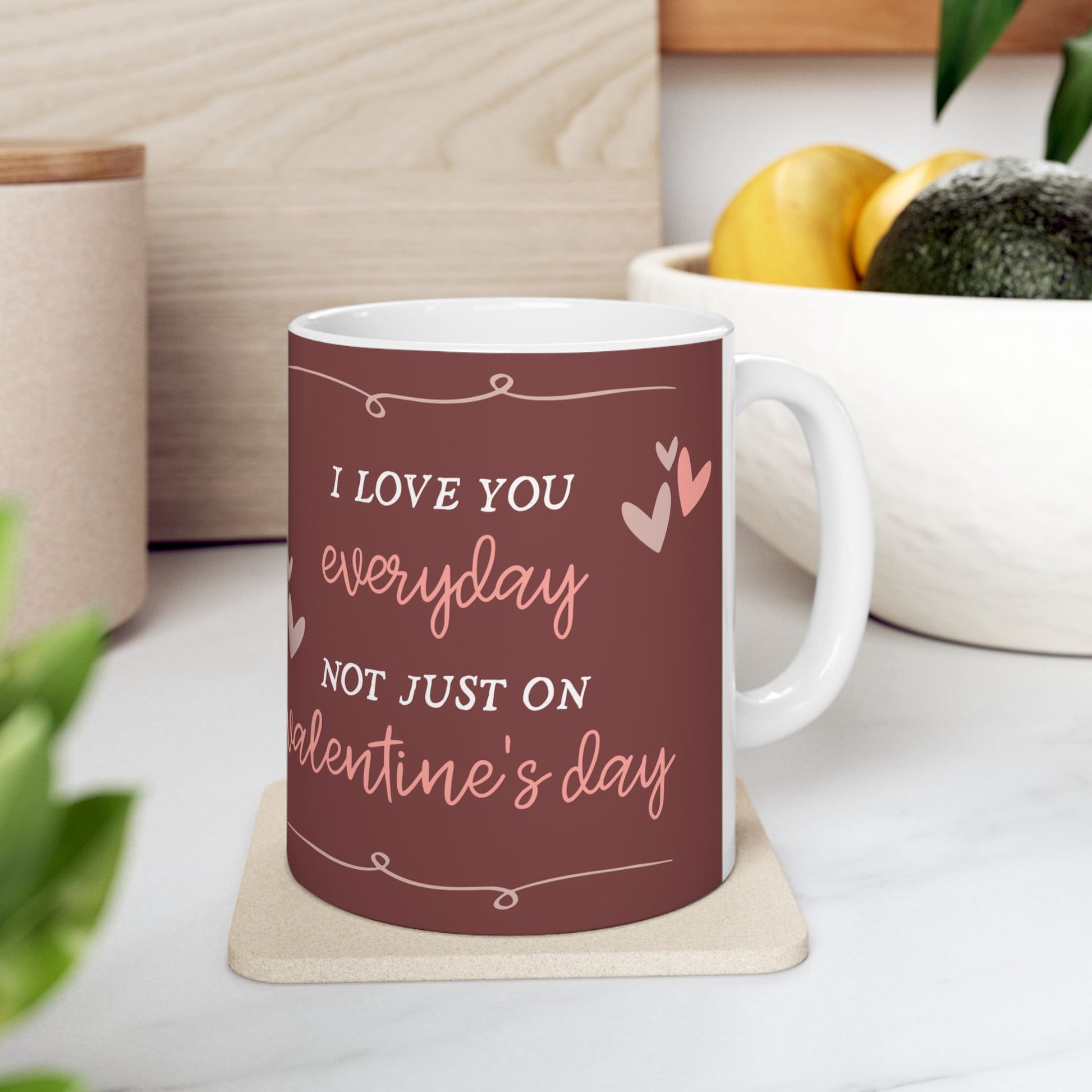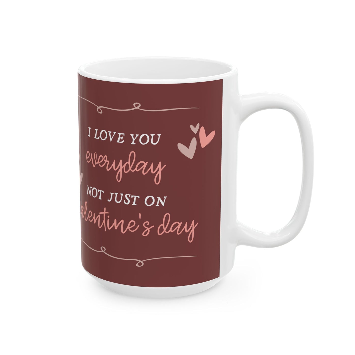 Show your love every day with this heartfelt "I Love You Every Day, Not Just On Valentine's Day" ceramic mug. Featuring a warm and loving message, this mug is the perfect way to remind someone special that your love goes beyond just one day. Available in both 11oz and 15oz sizes, it’s ideal for enjoying your favorite hot beverages while cherishing your bond. The elegant design, paired with a contrasting color handle and interior, makes it a unique and thoughtful gift for your significant other or a lovely reminder for yourself. Crafted from durable ceramic, this mug will be a daily reminder of your endless affection.