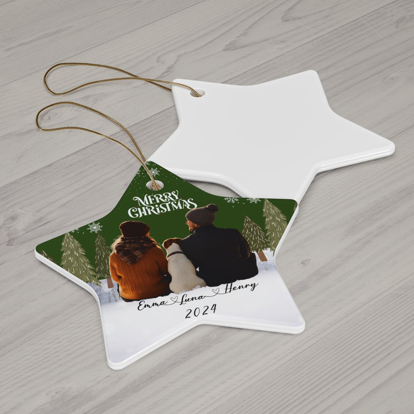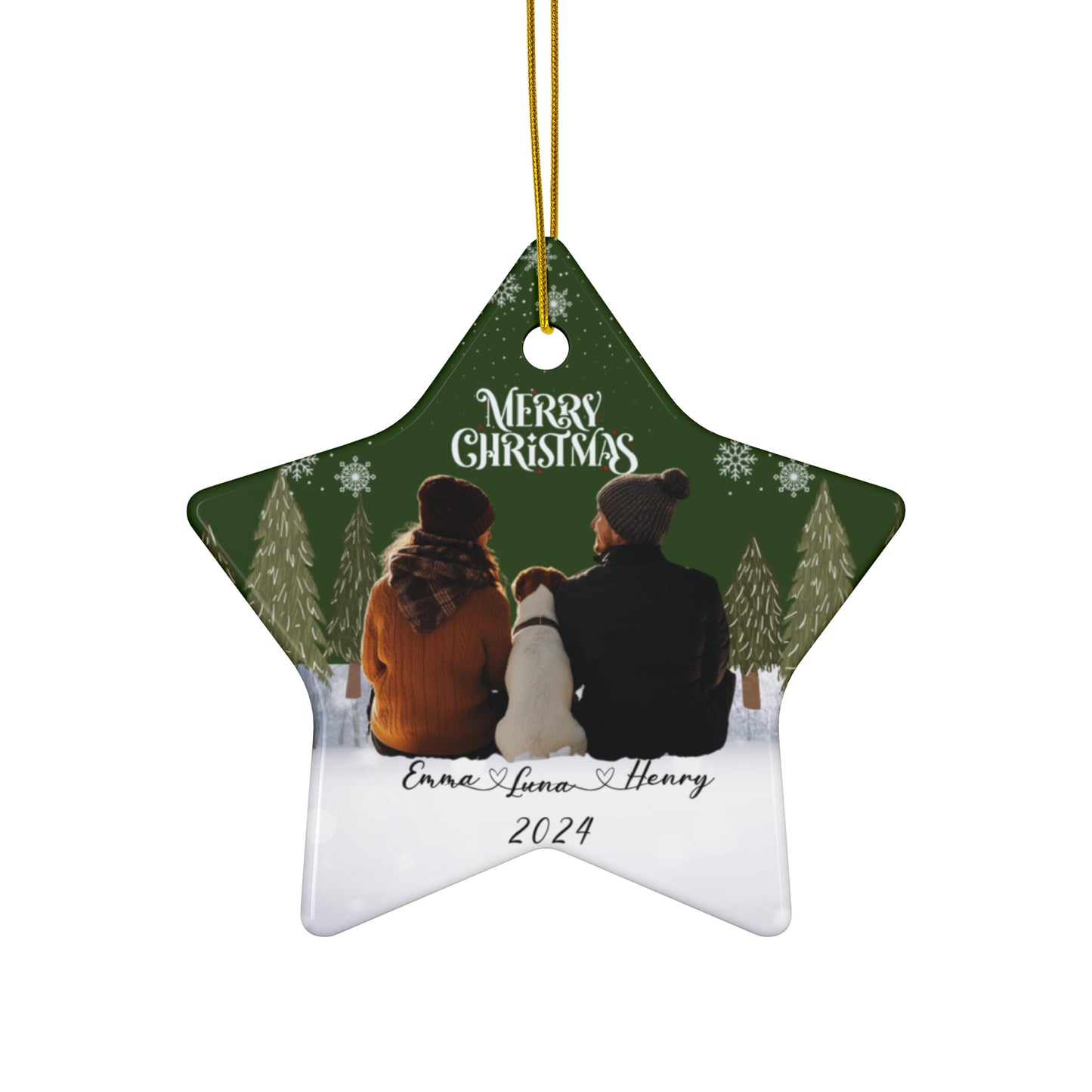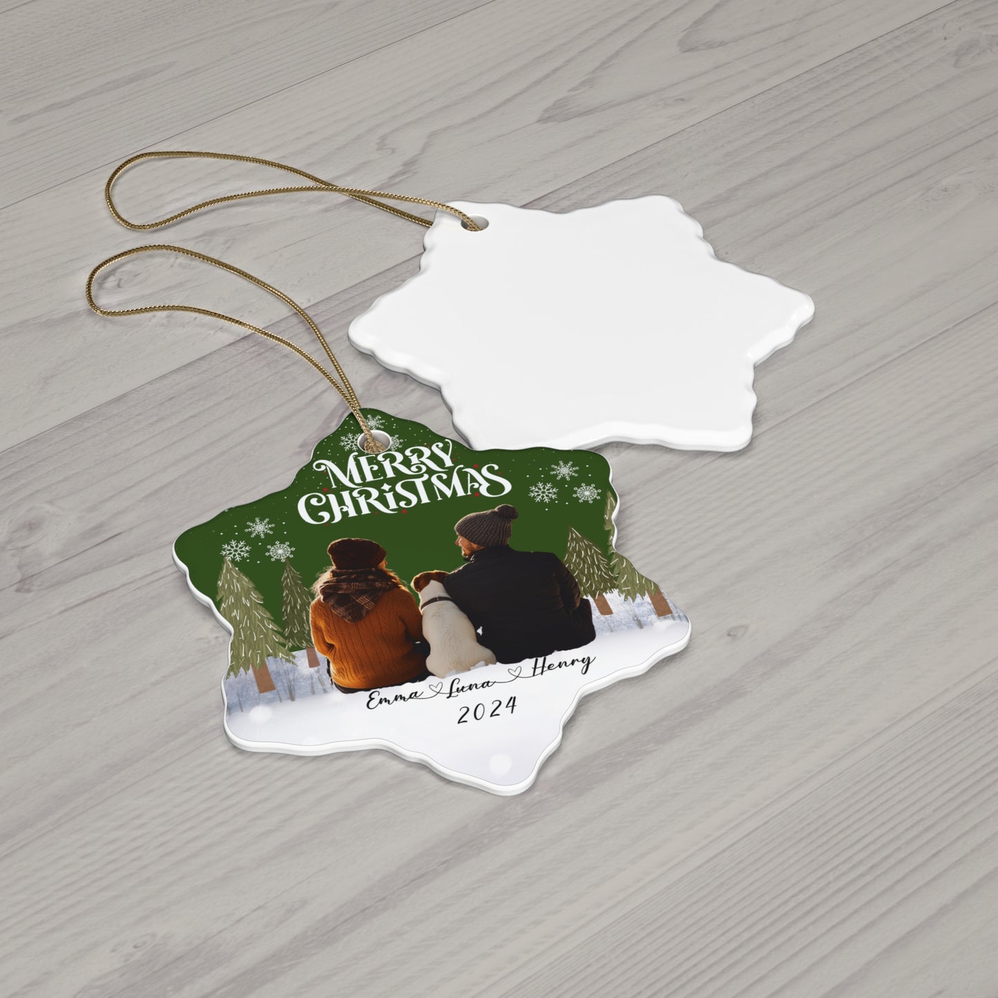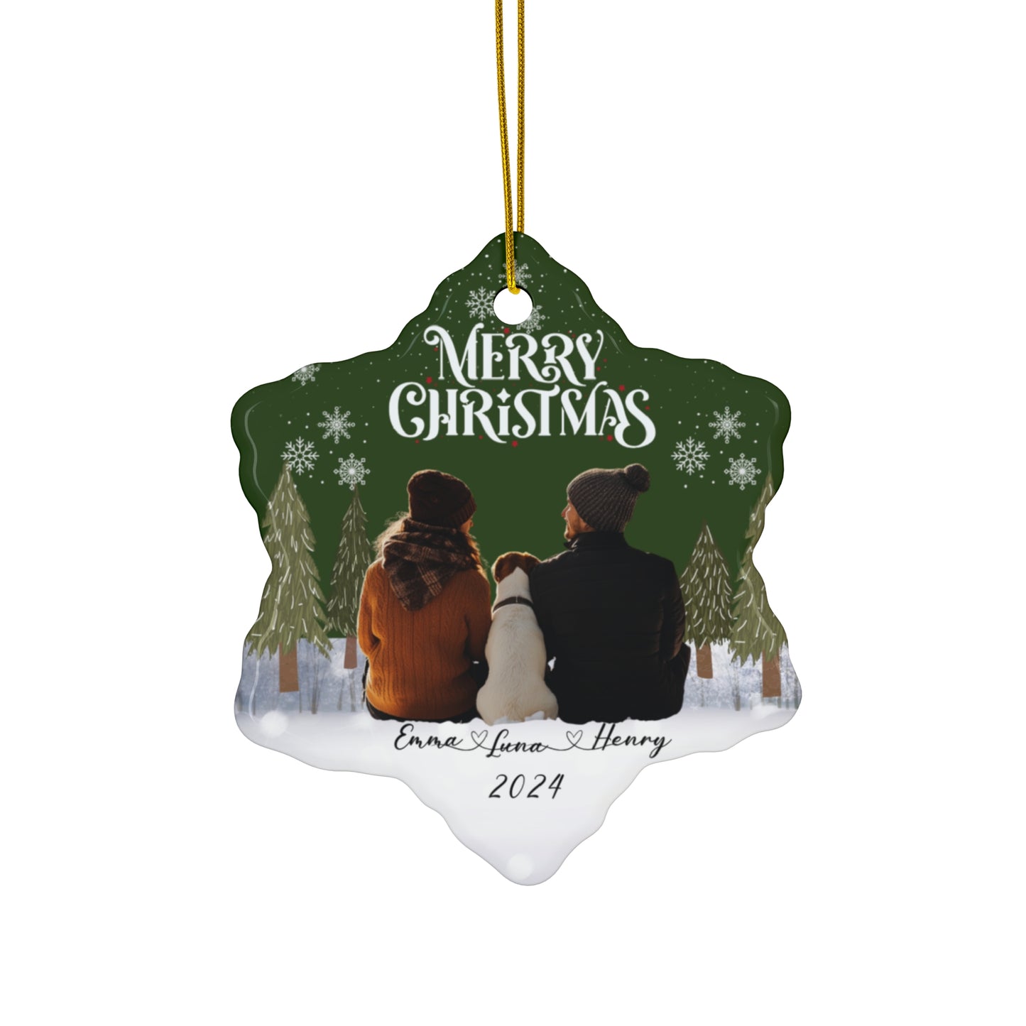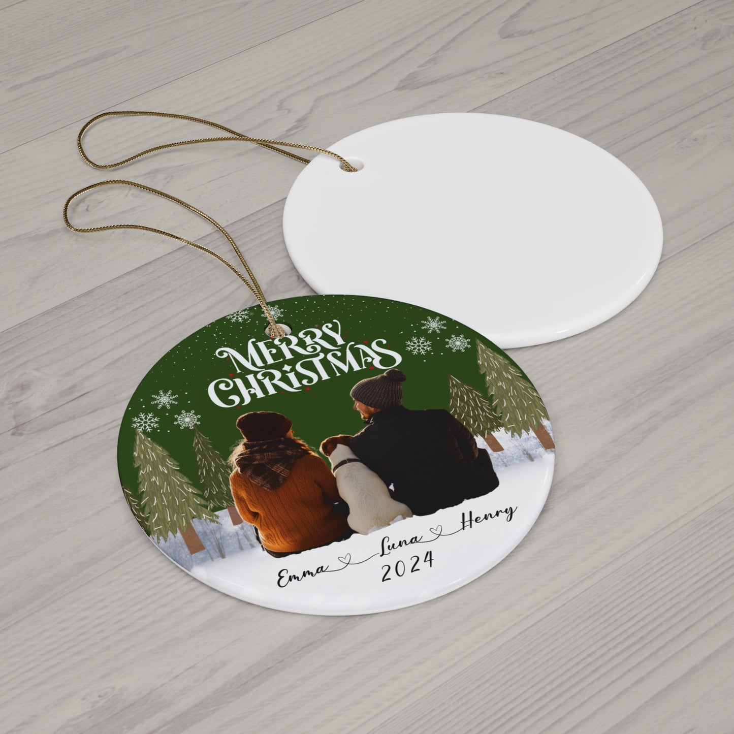 Capture the magic of the holidays with our Couple With A Dog Customizable Ceramic Ornament! Perfect for couples who cherish their four-legged family members, this ornament allows you to add a photo of you, your partner, and your beloved pup. Available in four charming shapes, it’s a beautiful way to showcase your love and companionship this season.