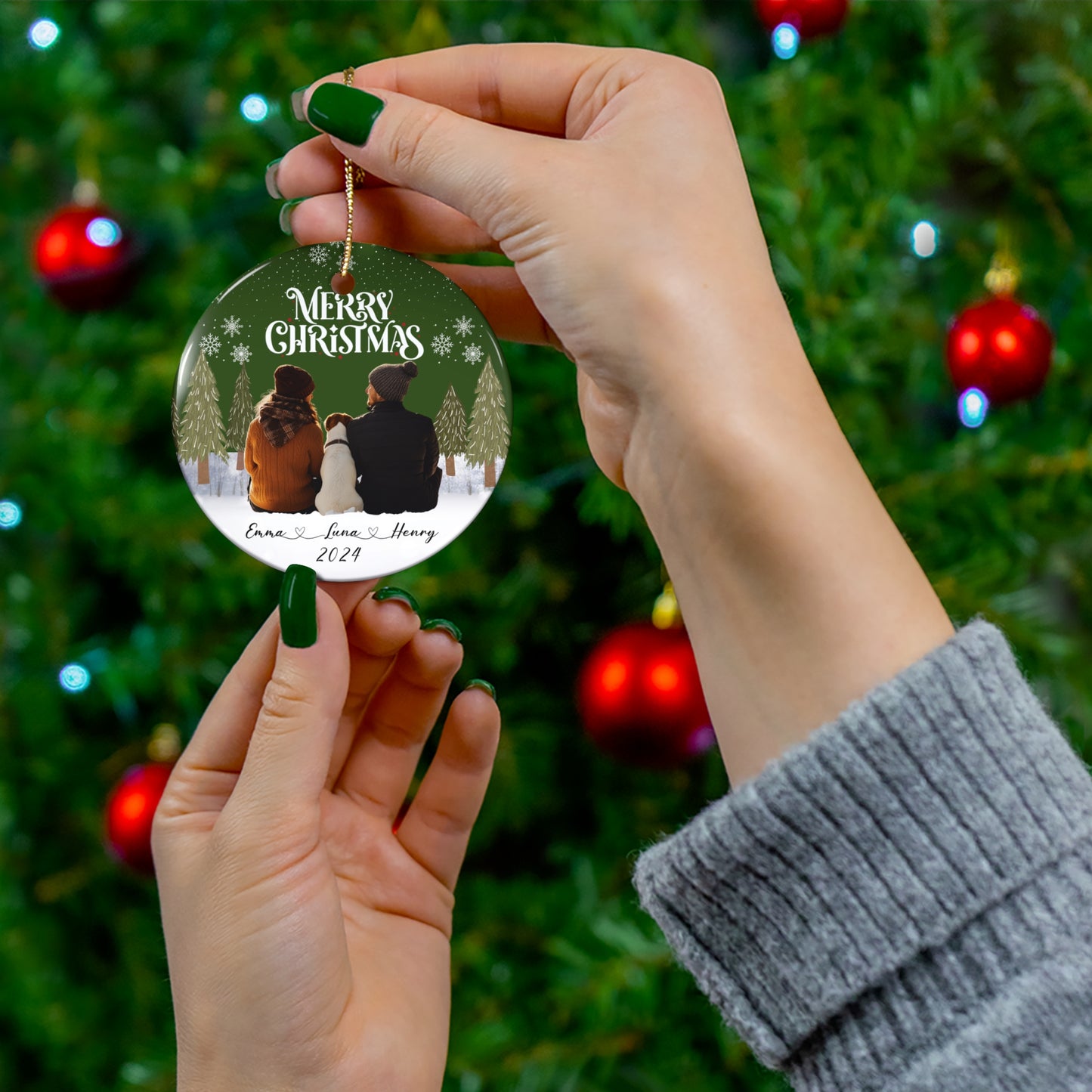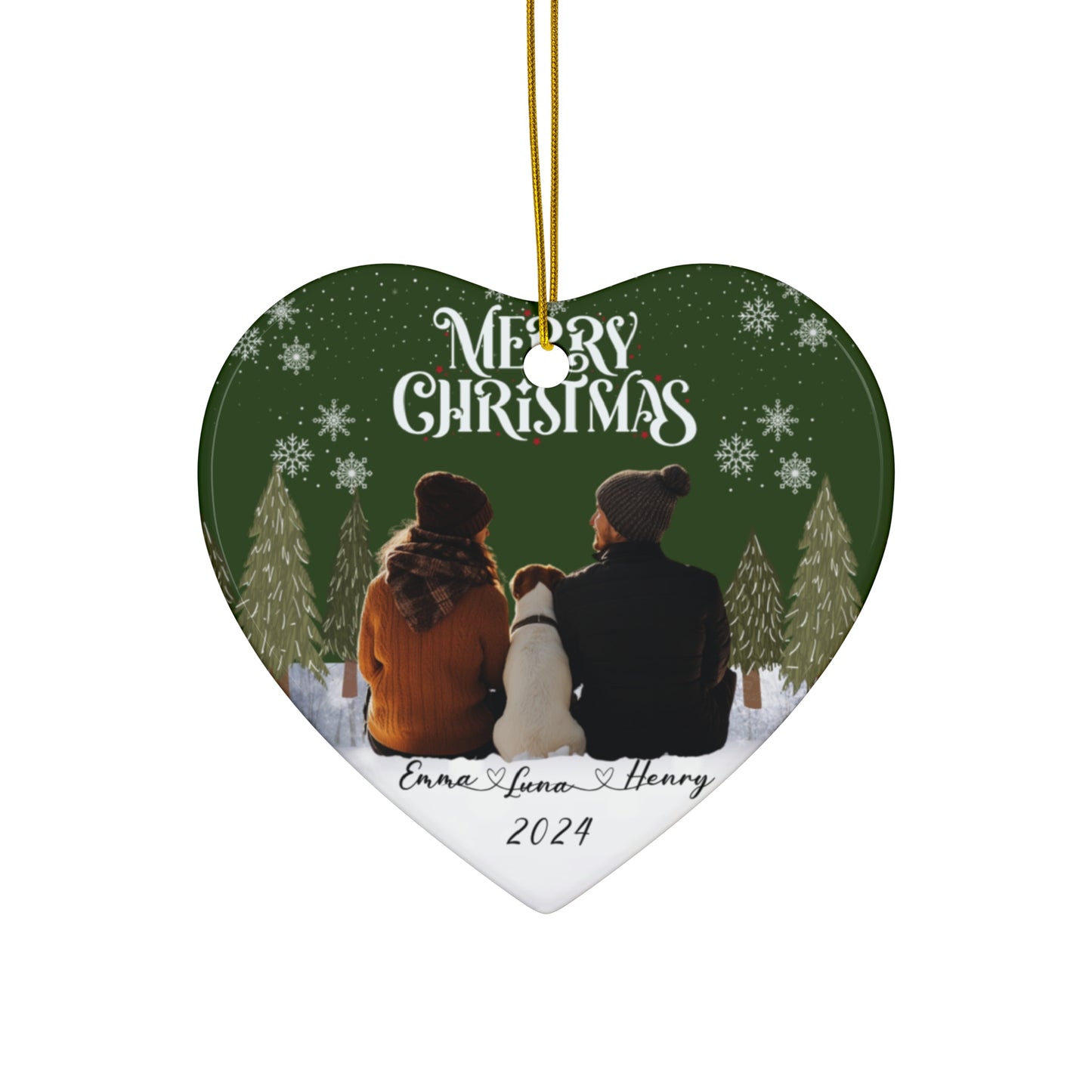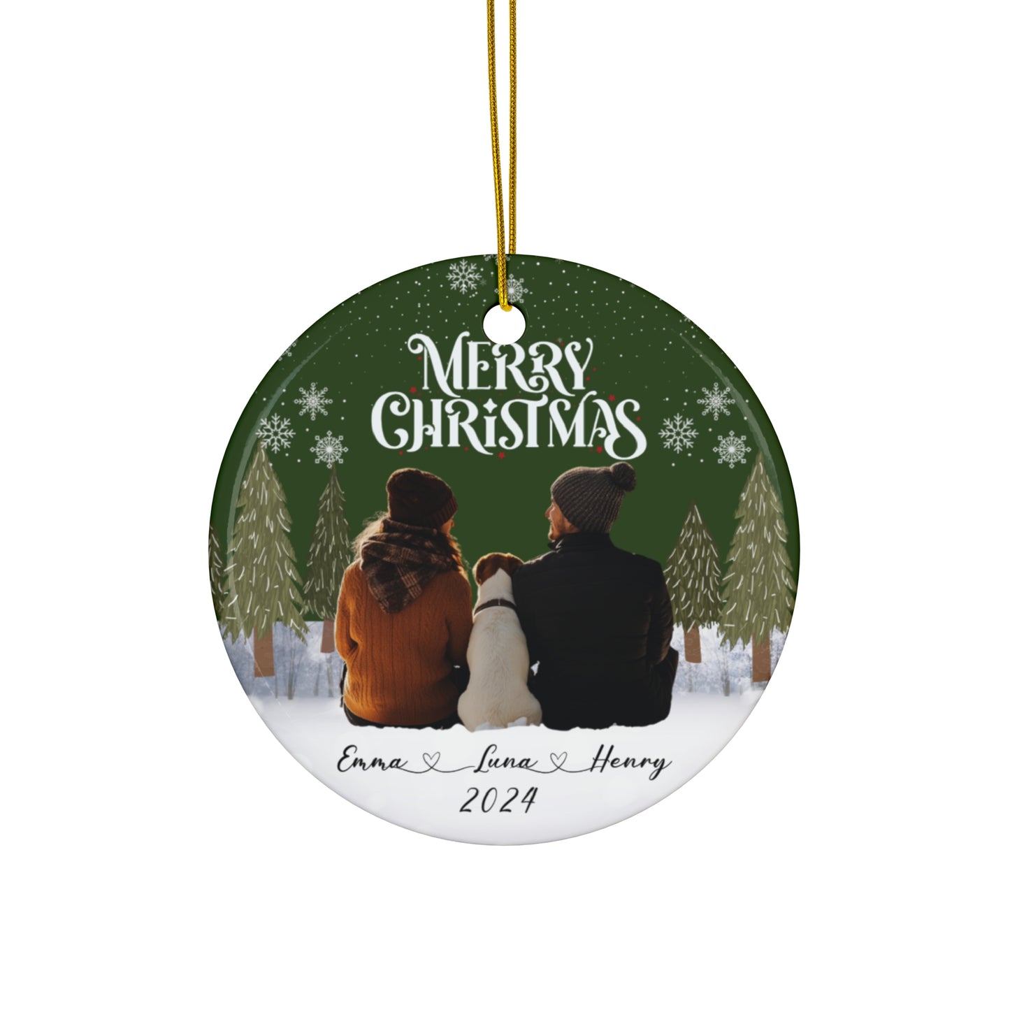 Couple With A Dog, Customizable - Ceramic Ornament, 4 Shapes - 10032