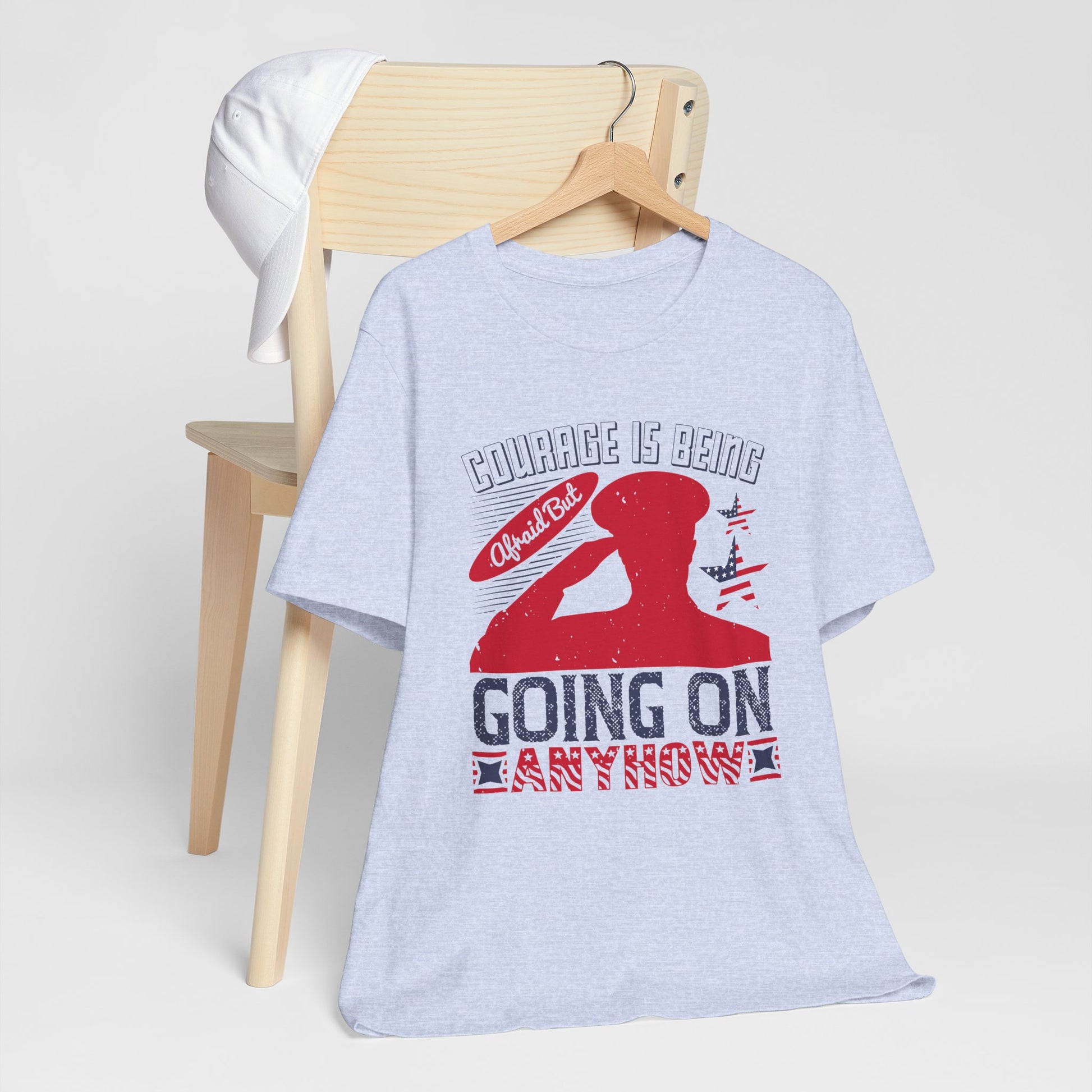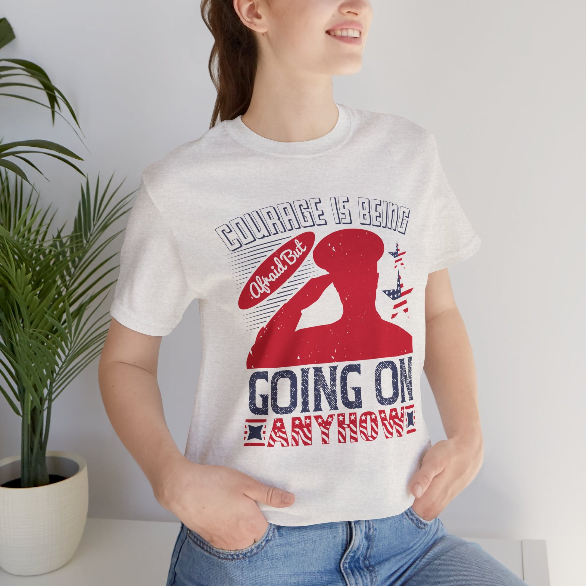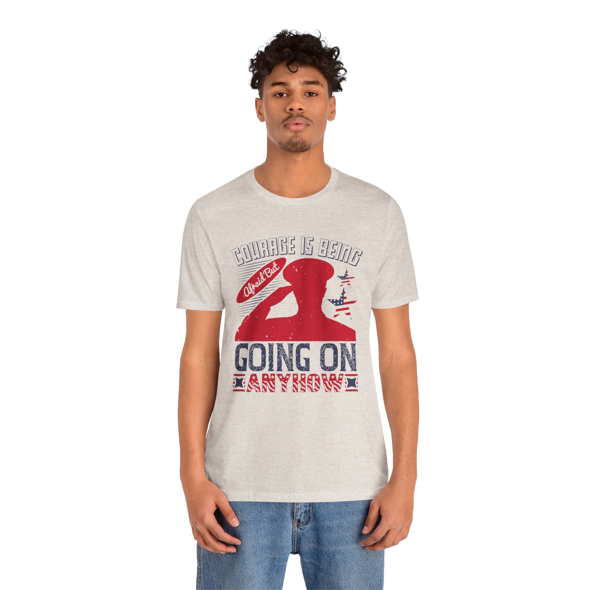 "Courage is being Afraid, But Going On Anyhow ", Patriotic Unisex Graphic Tee, Casual Wear, Gifts for Encouragement, Everyday Comfort - 13815