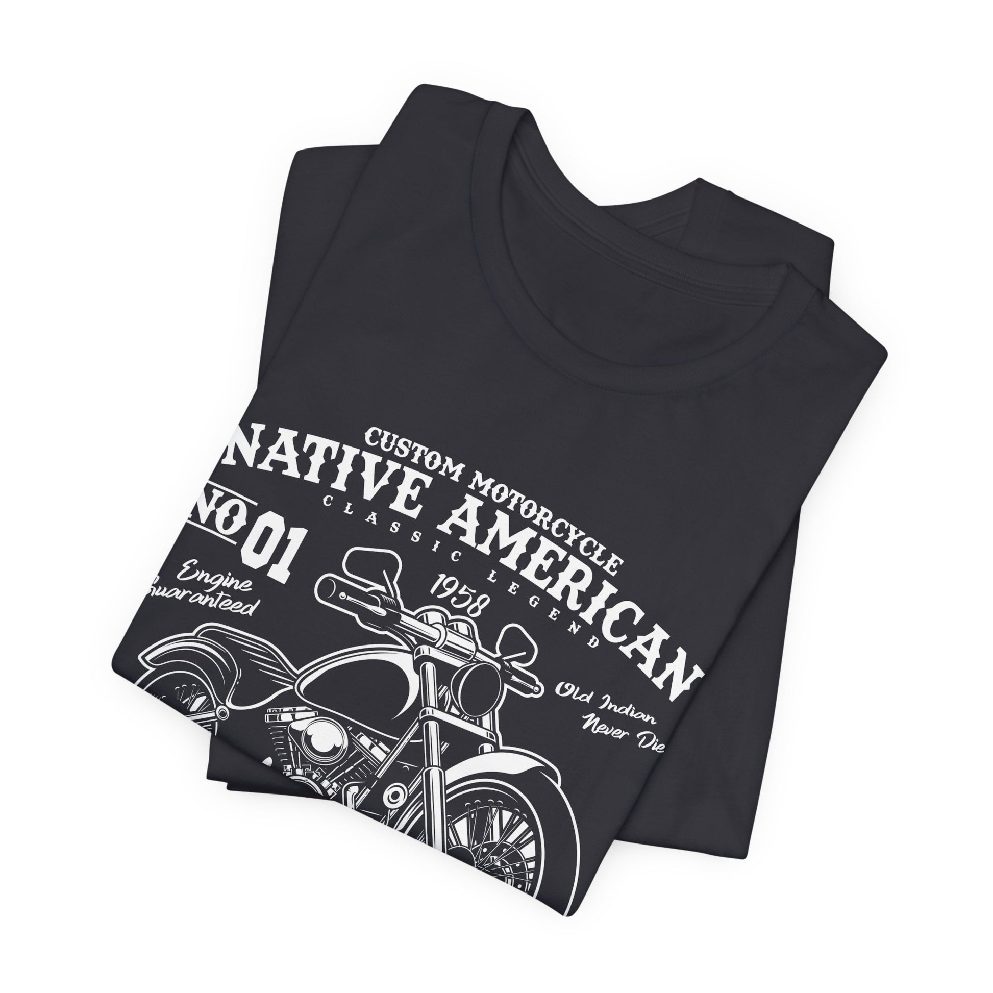 Embrace your love for motorcycles and respect for Native American traditions with our "Custom Motorcycle, Native American" tee. Order yours today and hit the road in style!