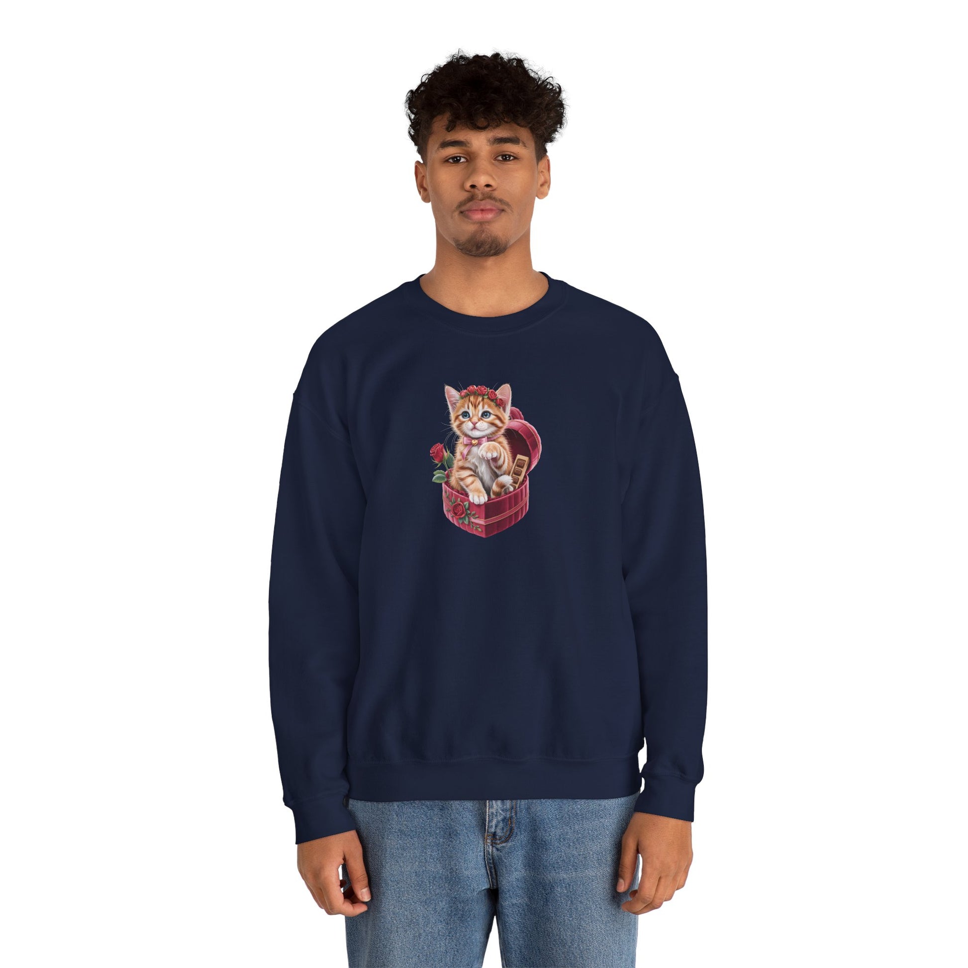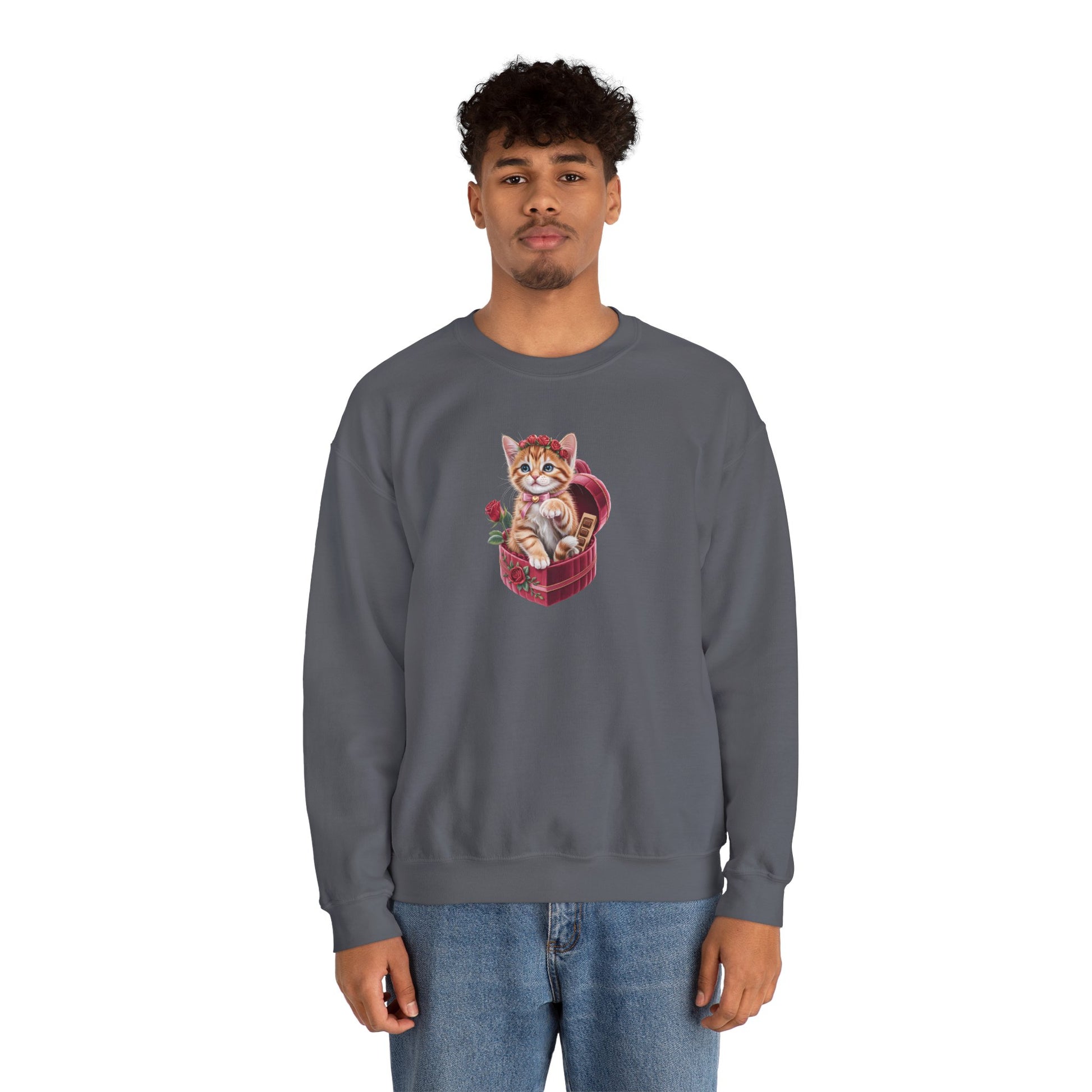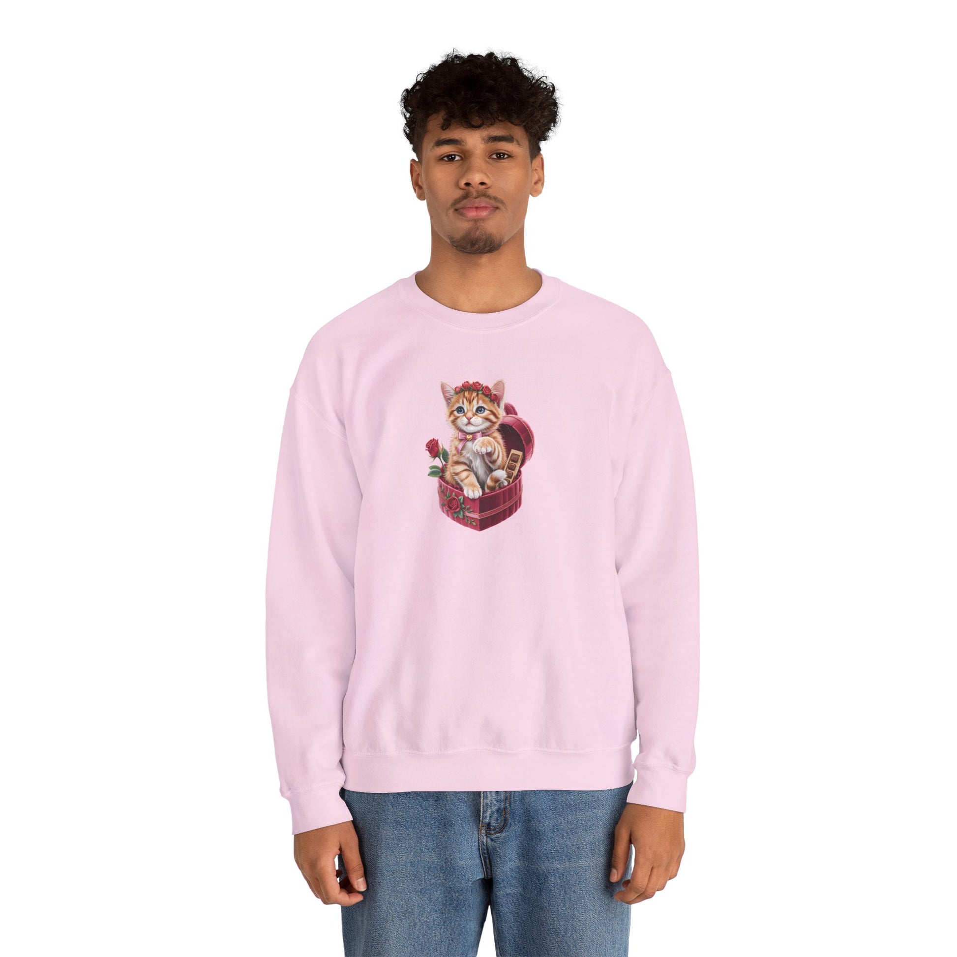 This Cute Cat Valentine Sweatshirt features an irresistibly sweet kitten illustration nestled in a heart-shaped gift box, surrounded by roses and romantic details. Designed to feel cozy and heart-warming, it’s the perfect piece for cat lovers who adore soft aesthetics and charming art.