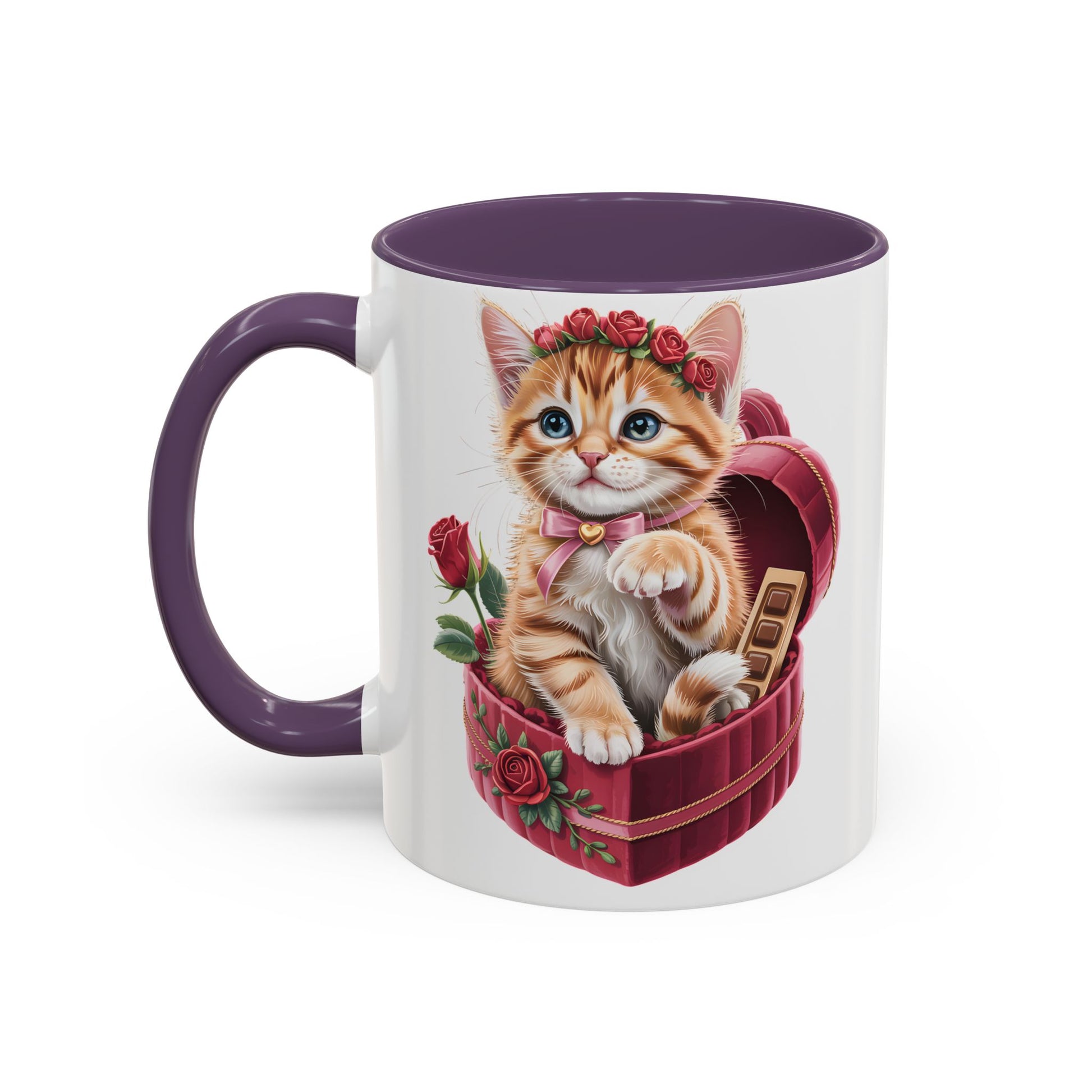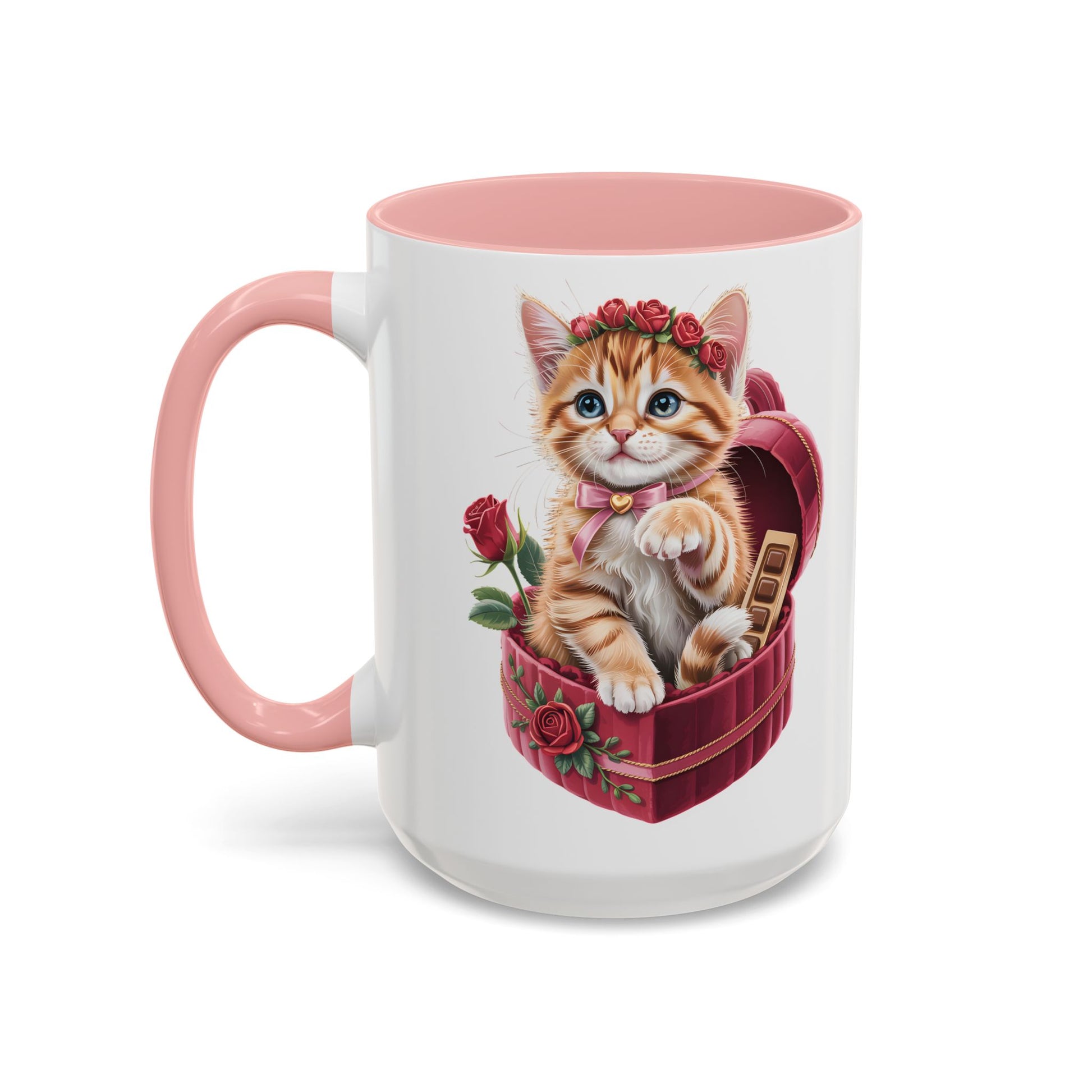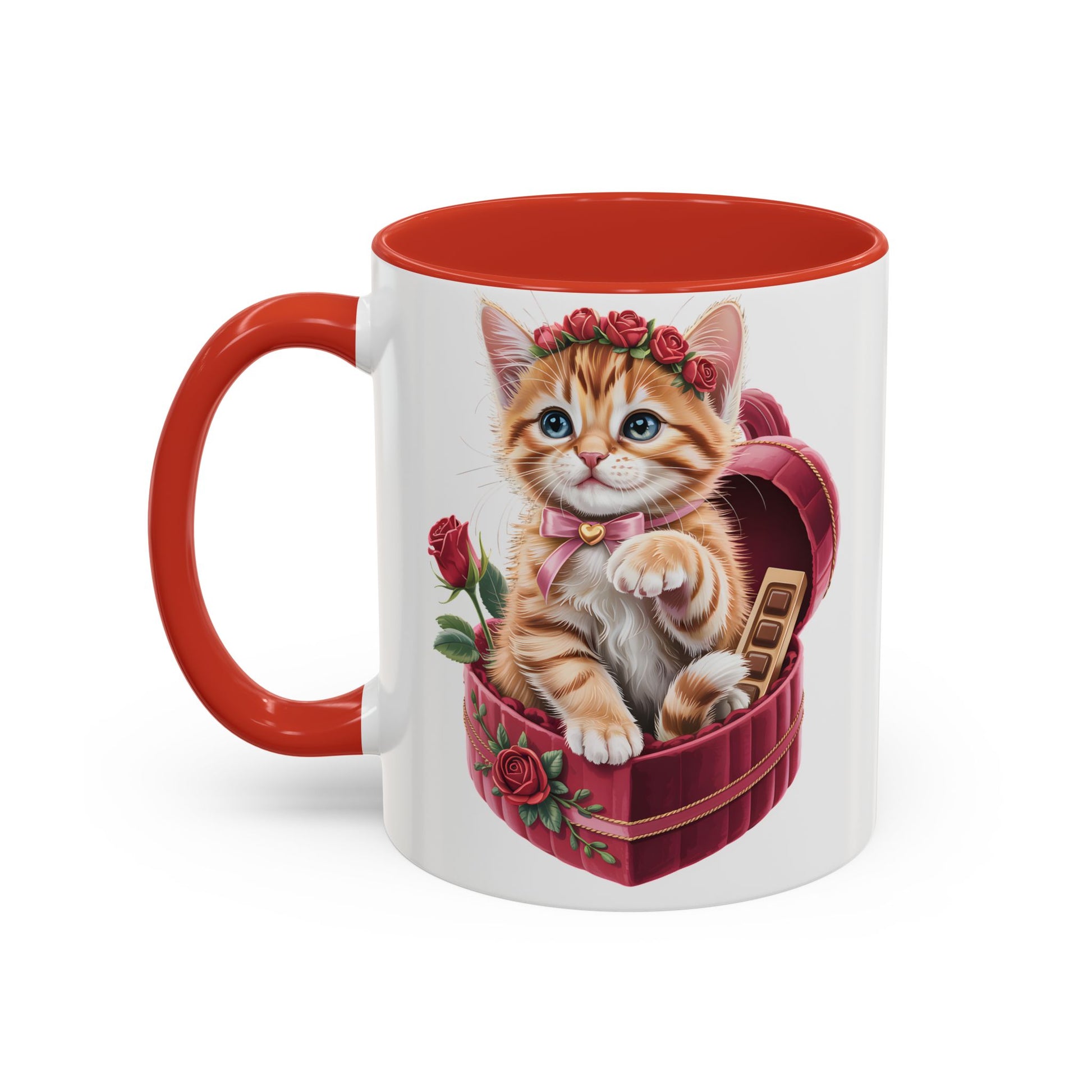 This Cute Kitten Valentine Mug features an irresistibly sweet kitten illustration nestled in a heart-shaped gift box, surrounded by roses and romantic details. Designed to melt hearts, it’s the perfect little reminder of love, warmth, and cozy moments.