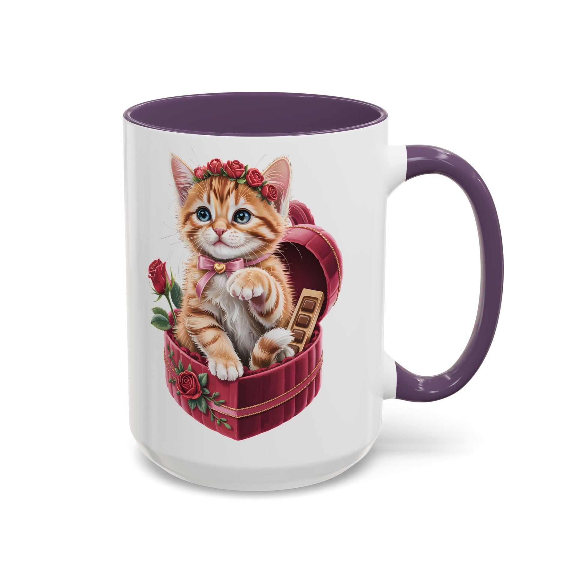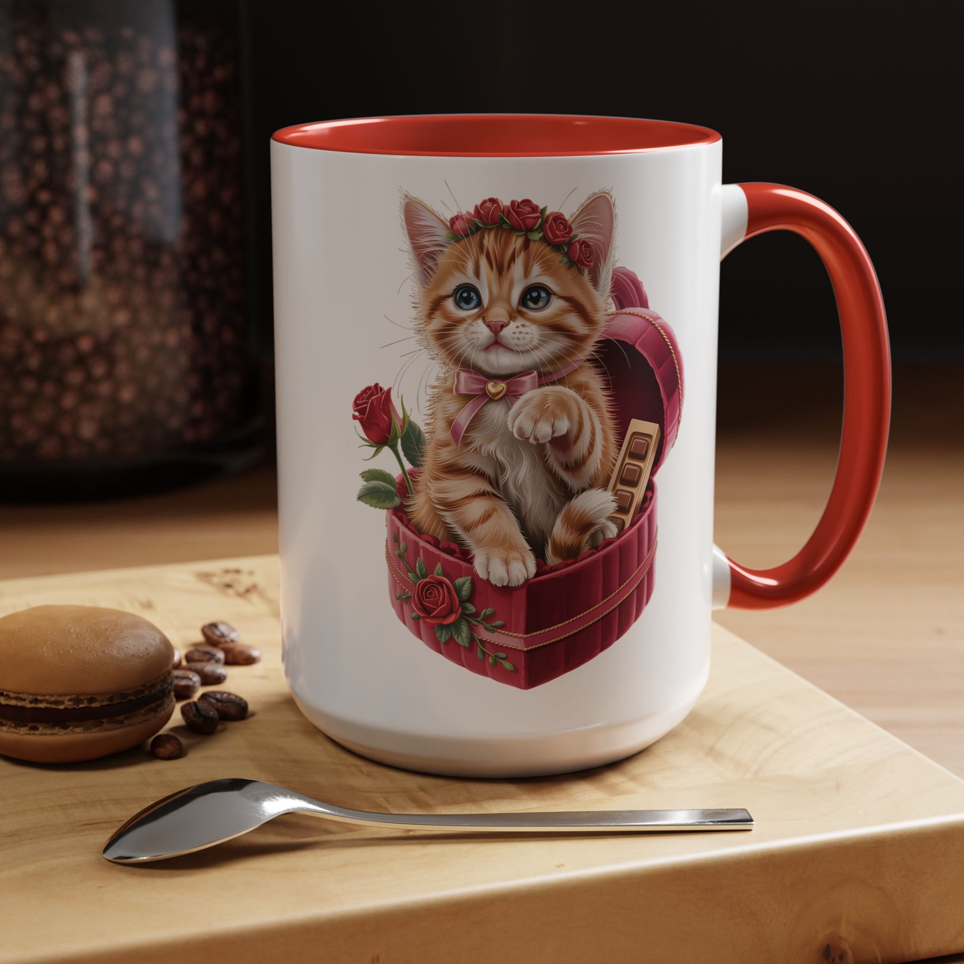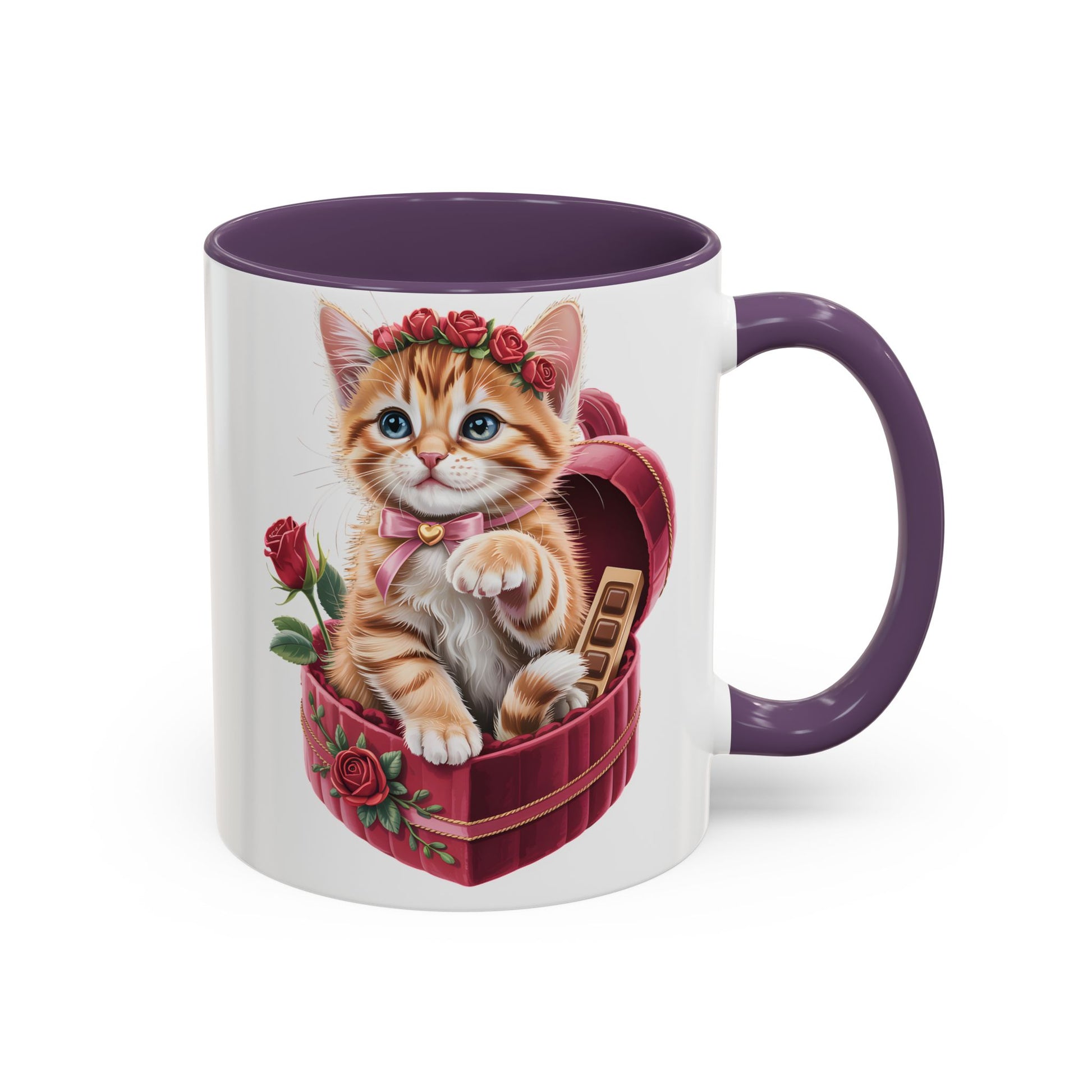 This Cute Kitten Valentine Mug features an irresistibly sweet kitten illustration nestled in a heart-shaped gift box, surrounded by roses and romantic details. Designed to melt hearts, it’s the perfect little reminder of love, warmth, and cozy moments.