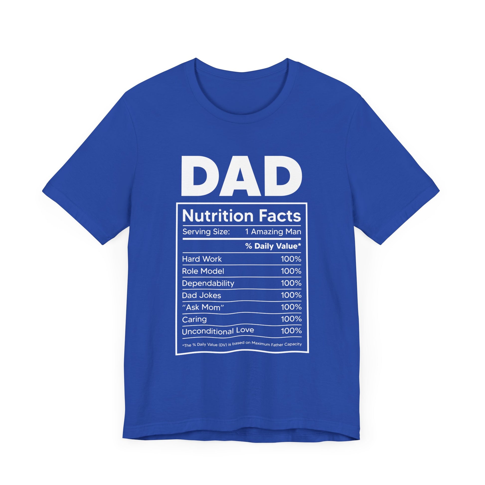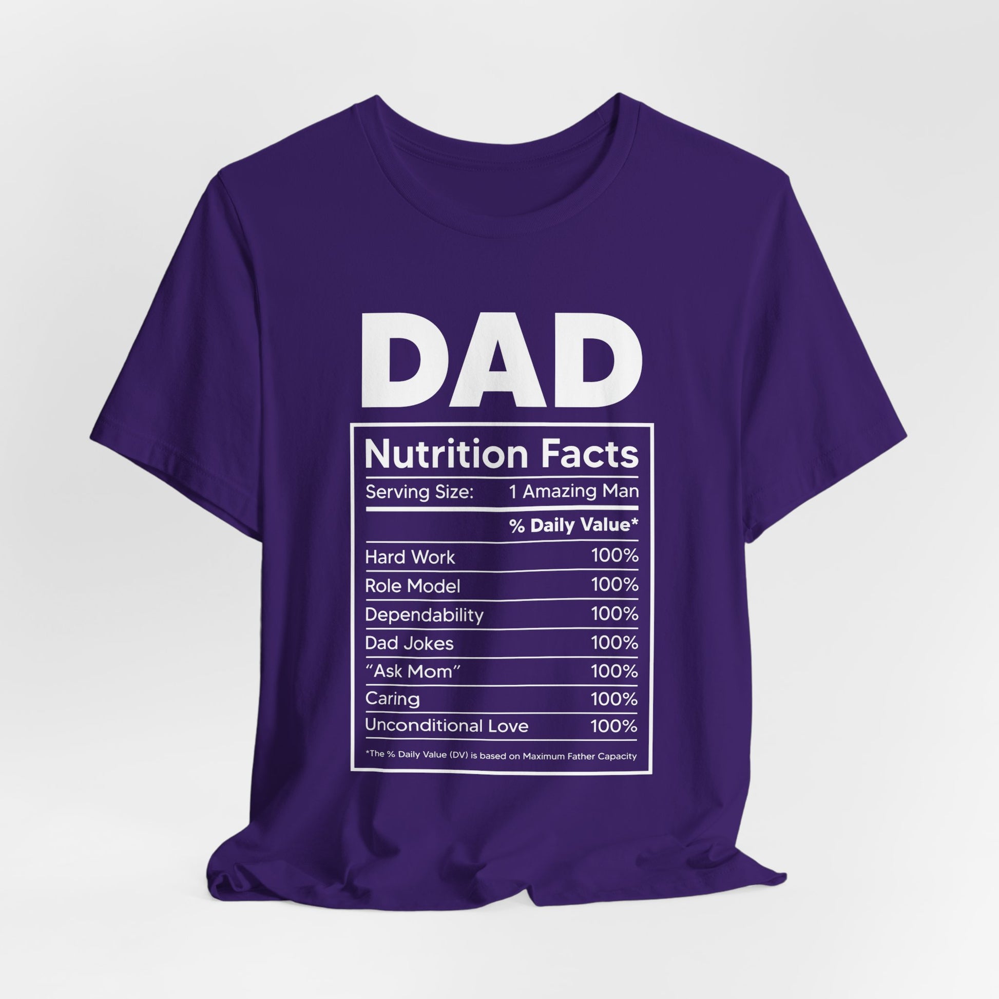 Perfect for Father's Day, birthdays, or just to show your appreciation, the Dad, Nutrition Facts tee is a thoughtful and entertaining way to celebrate the dads who enrich our lives. Order yours today and let the world know the true value of being a dad!