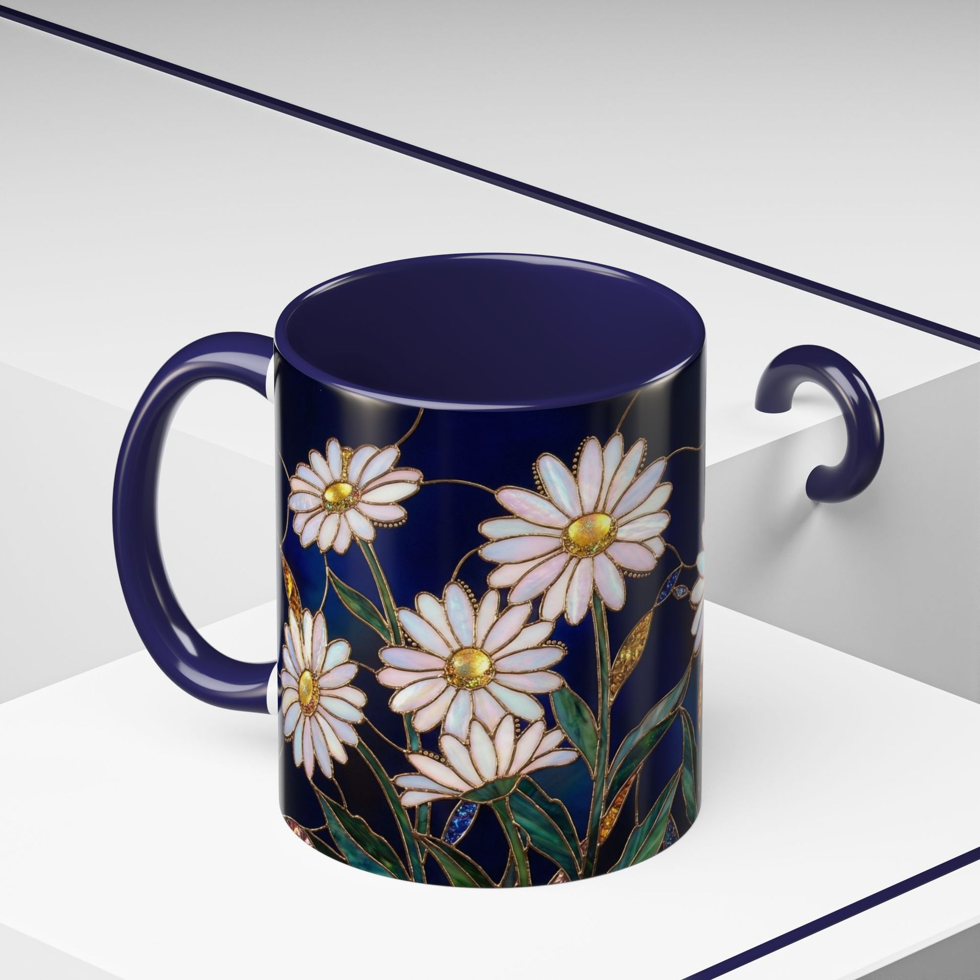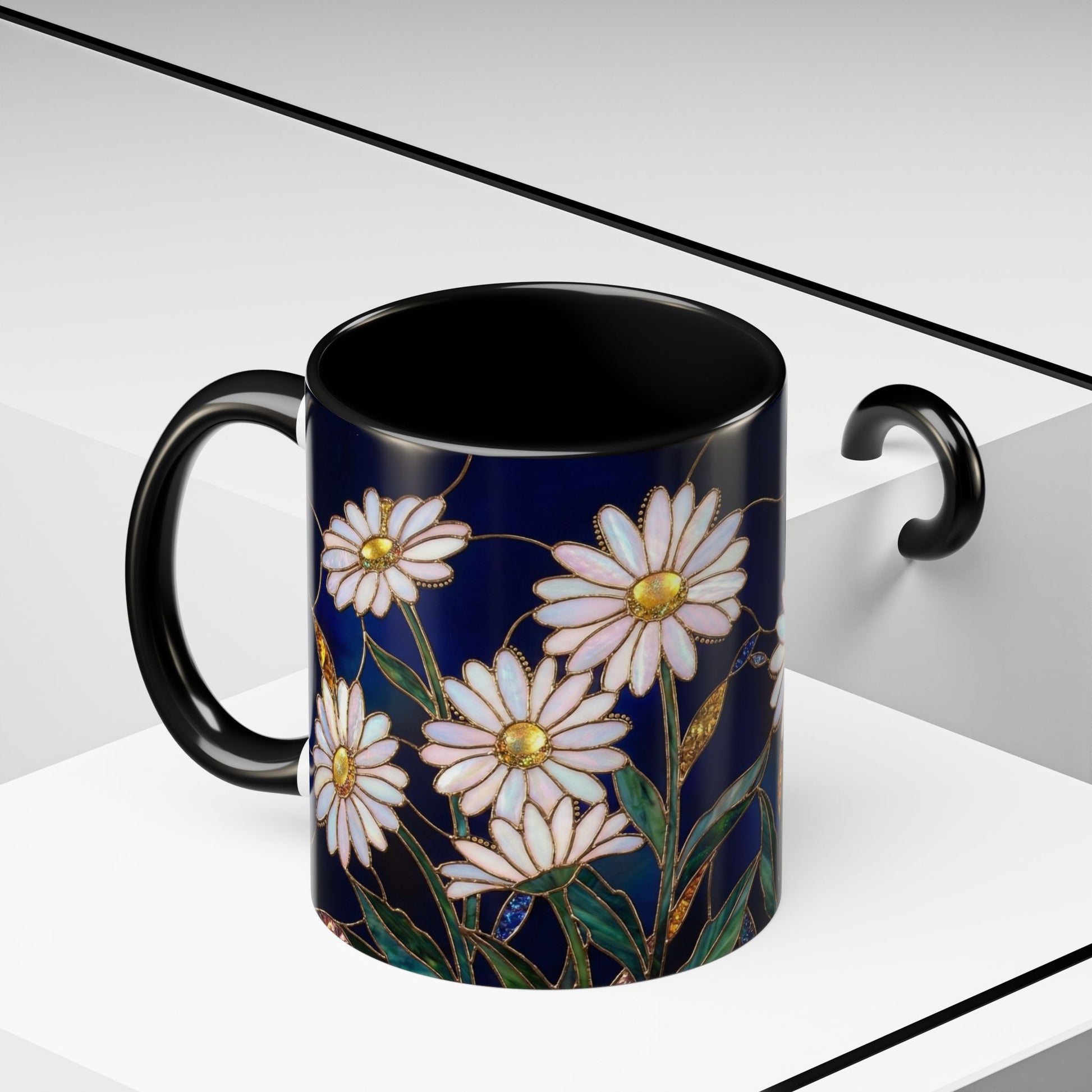 Daisy Floral Accent Coffee Mug — Stained Glass Design (11/15oz) - 14563