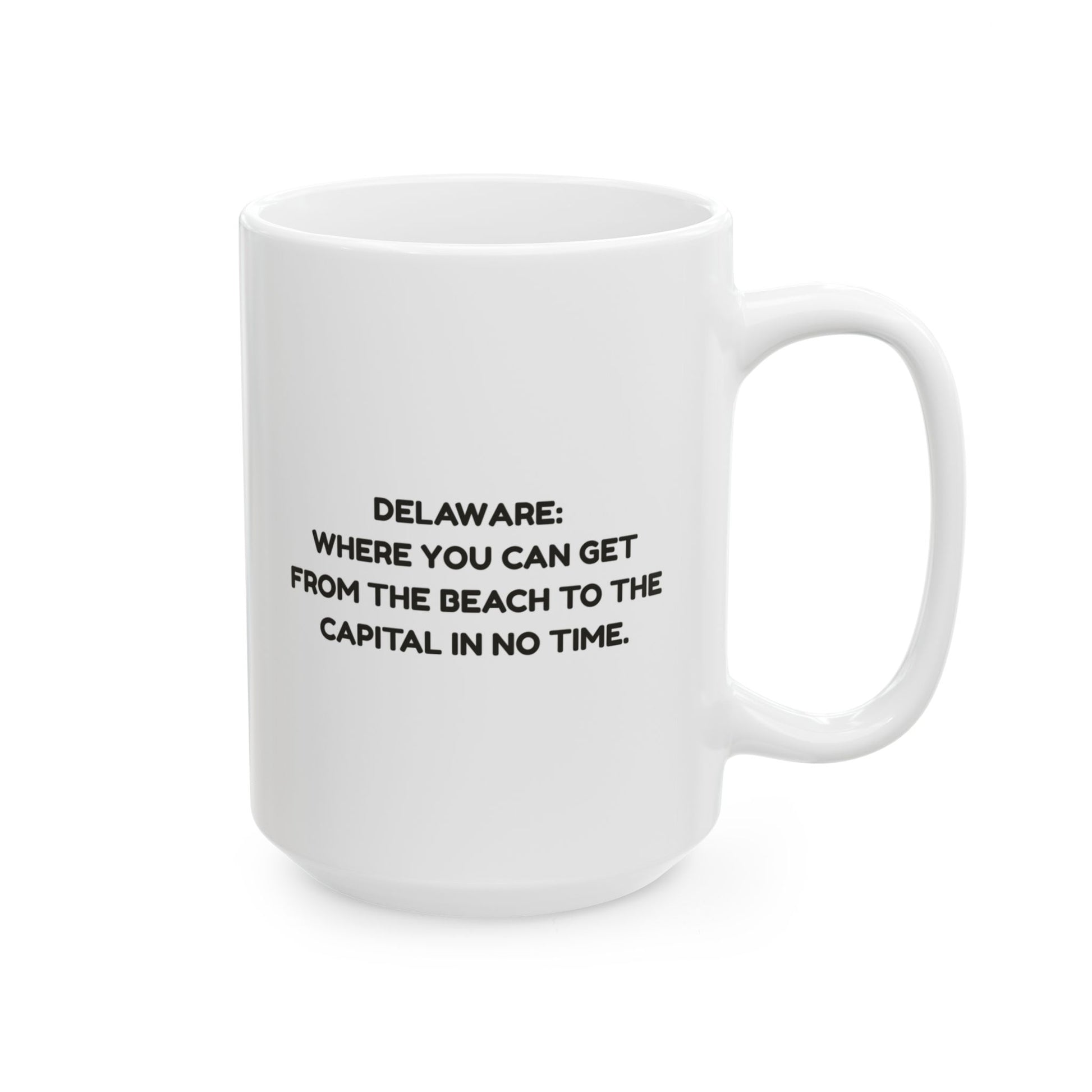 "Delaware: Where you can get from the beach to the capital in no time." Ceramic Mug - 14141
