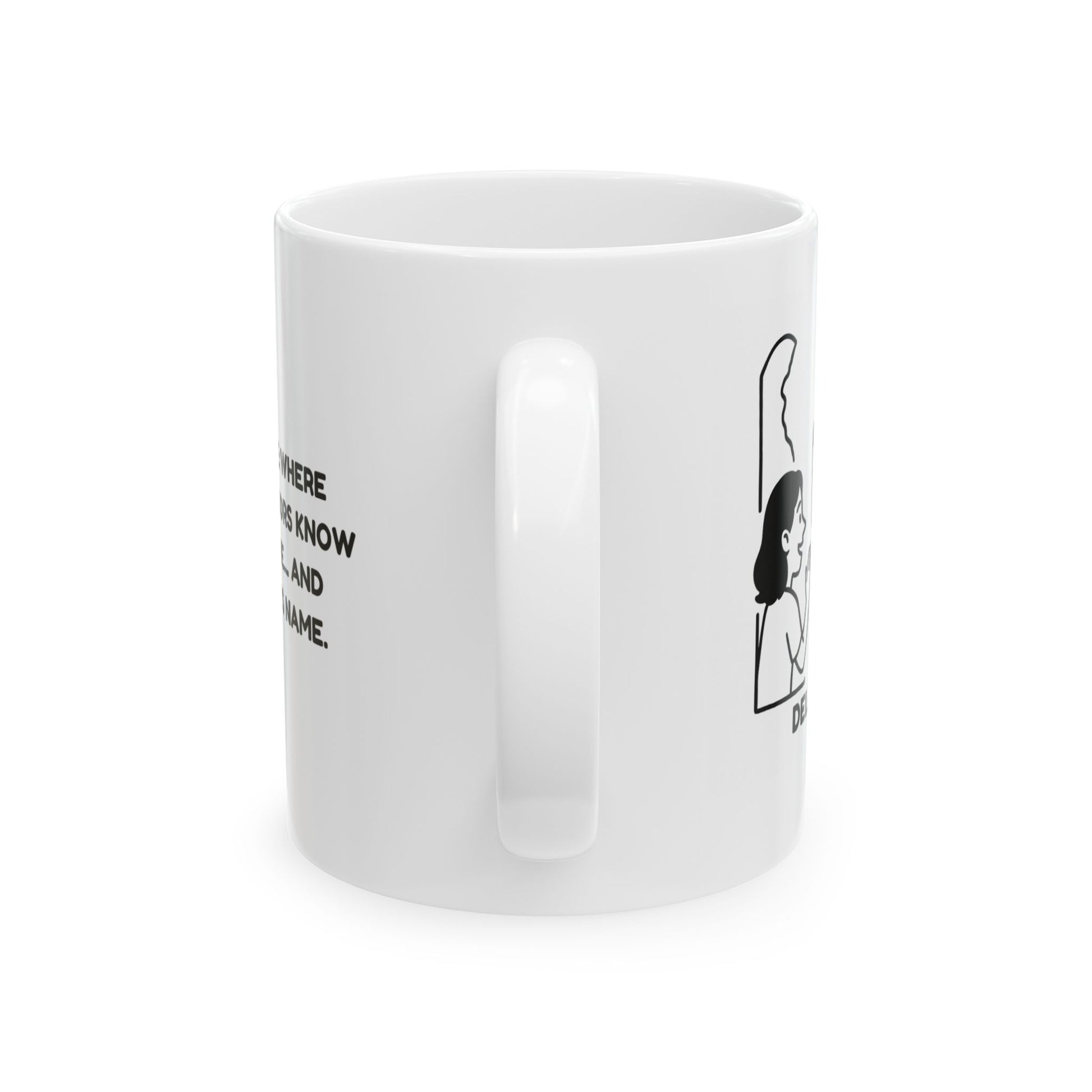 Nothing says community like Delaware—where friendly faces greet you by name, and your pup gets just as much love as you do. This heartwarming ceramic mug celebrates the close-knit charm of small-town life, where both humans and furry friends are part of the neighborhood family.