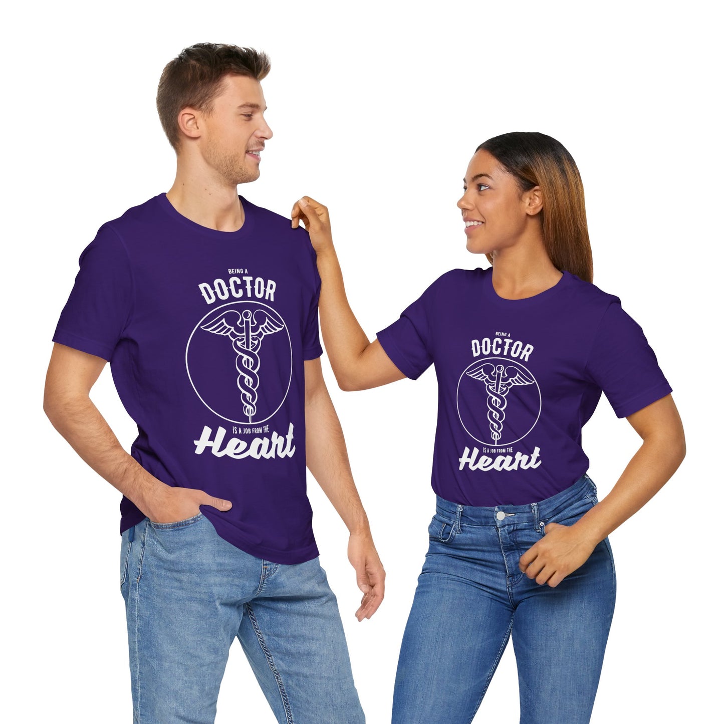 Showcase your passion for medicine with our "Being A Doctor Is A Job From The Heart" unisex jersey short sleeve tee. Perfect for doctors who approach their work with compassion and dedication, this tee combines comfort, quality, and a heartfelt message that resonates with healthcare professionals.