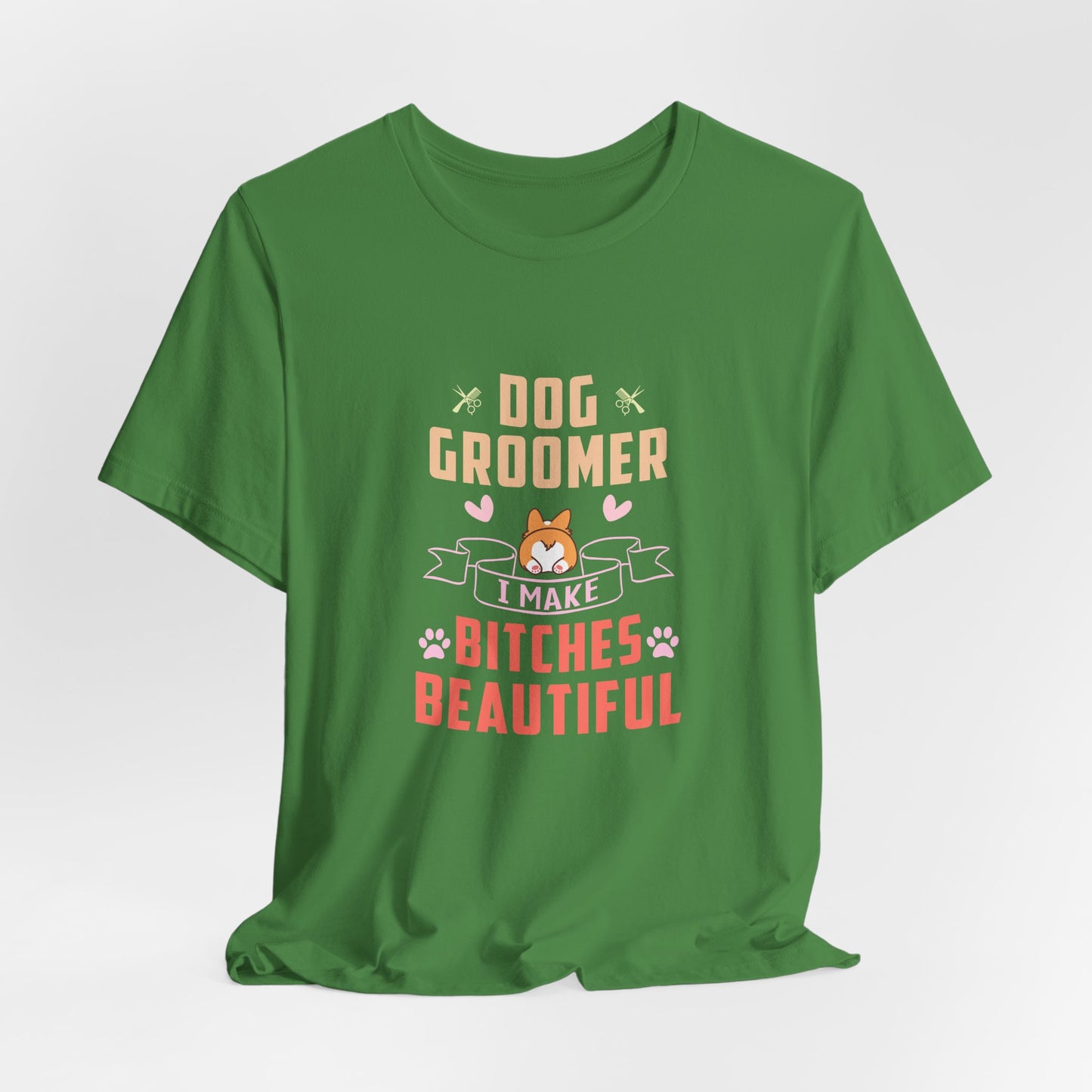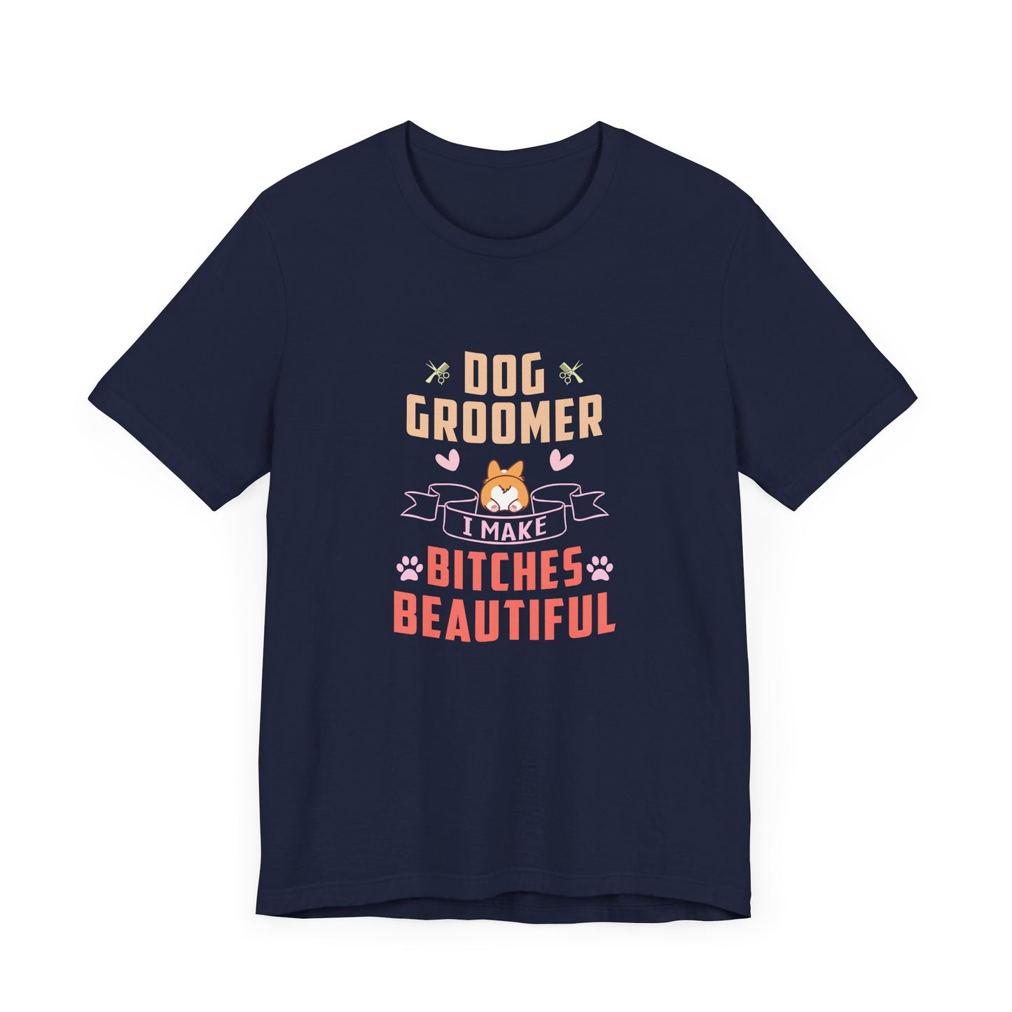 Embrace your grooming skills with a wink and a smile in our "Dog Groomer, I Make Bitches Beautiful" tee. Get yours today and let the world know just how fabulous you make your canine clients!