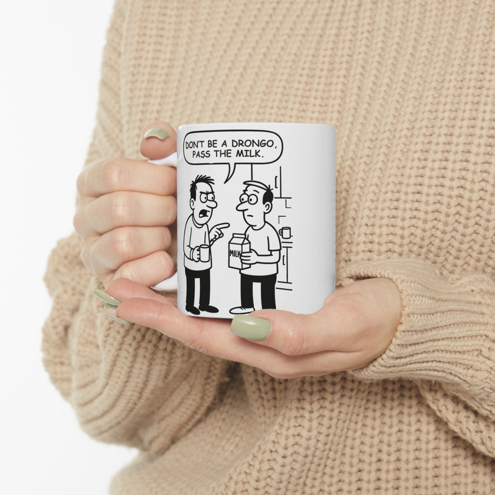 “Don’t be a drongo, pass the milk.” (Classic kitchen humour for the breakroom.) Ceramic Coffee Mug - 13923