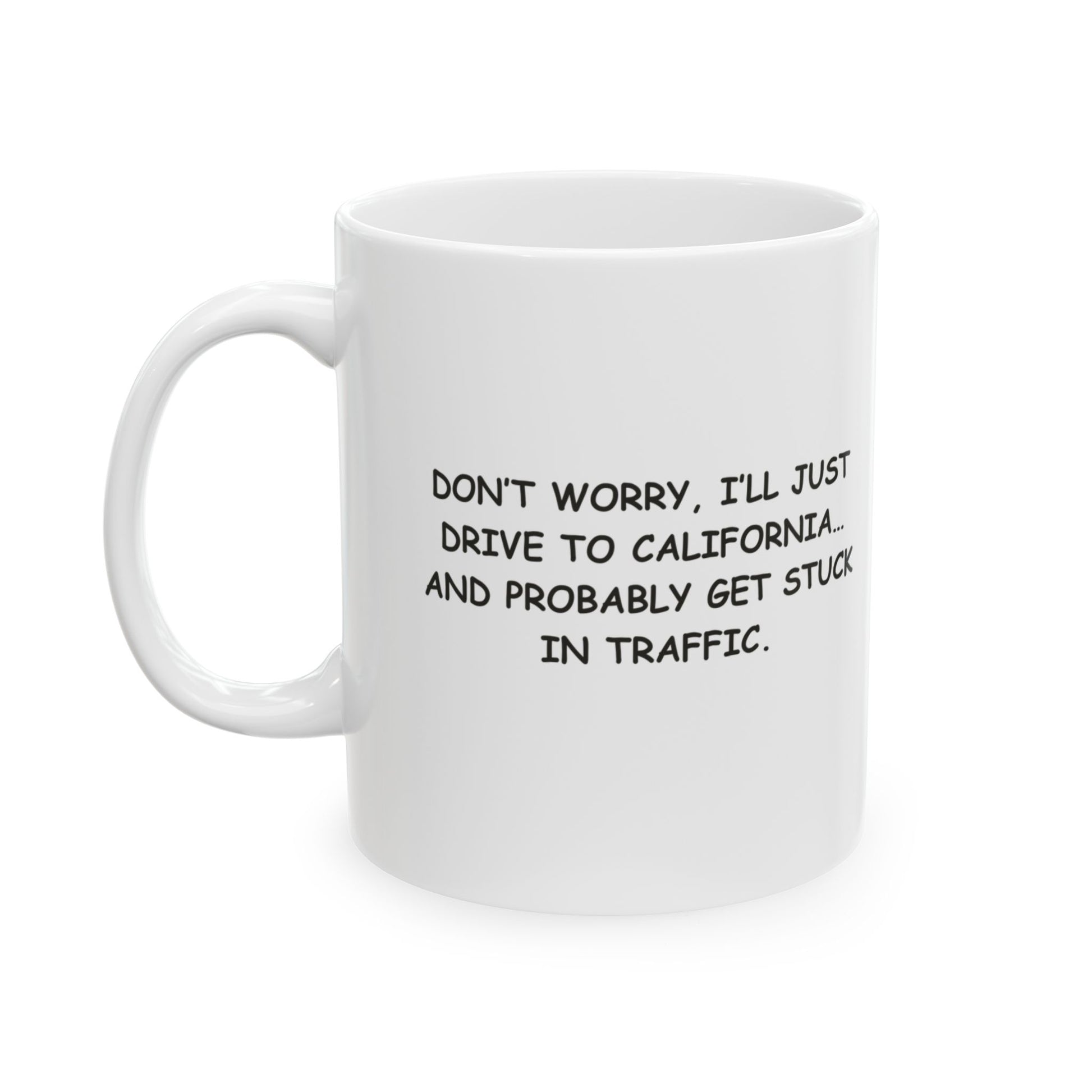 "Don’t worry, I’ll just drive to California… and probably get stuck in traffic." Ceramic Mug - 11oz & 15oz - 12743
