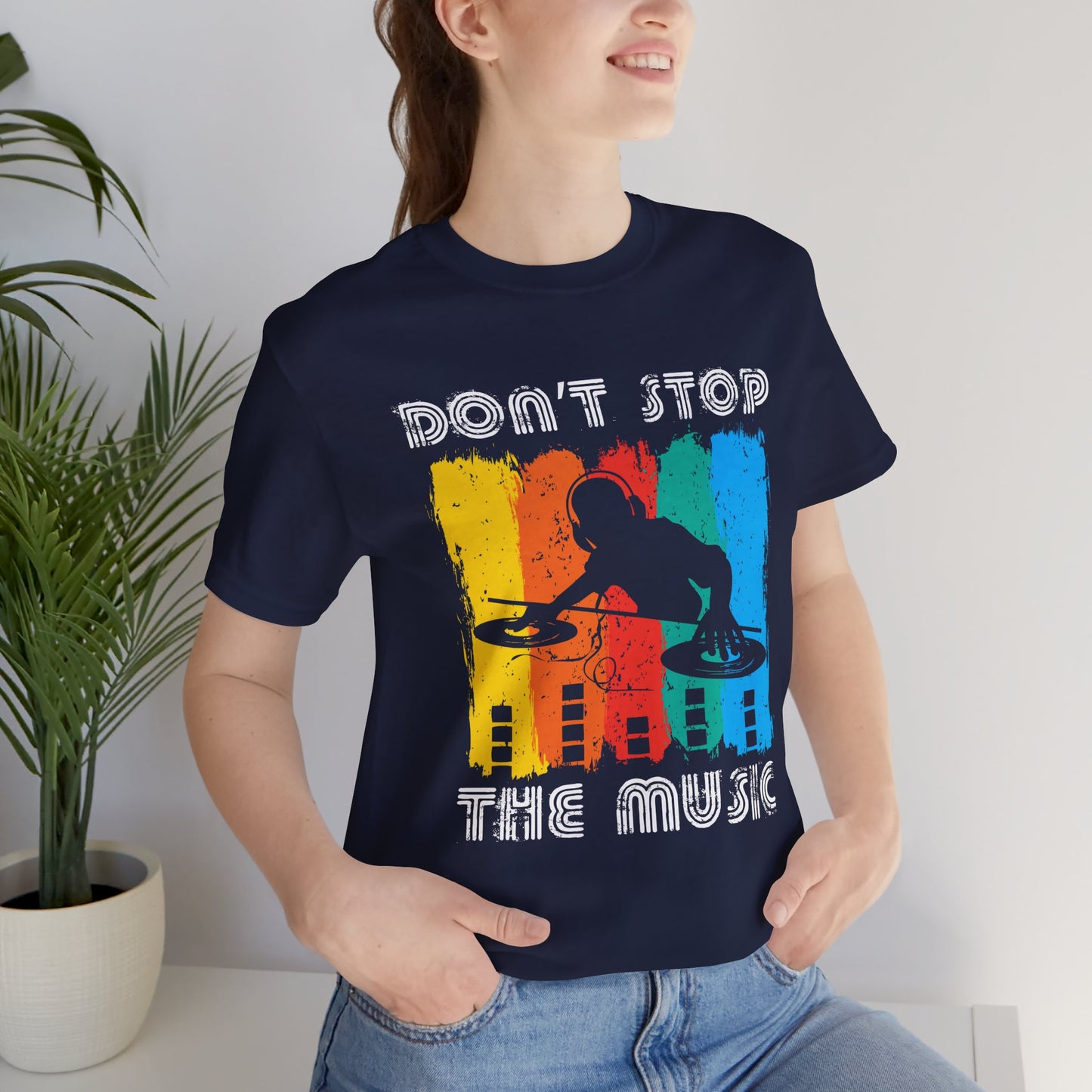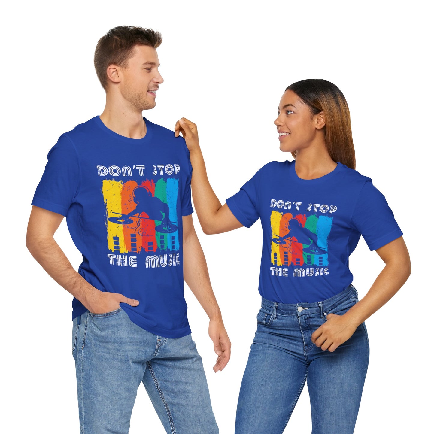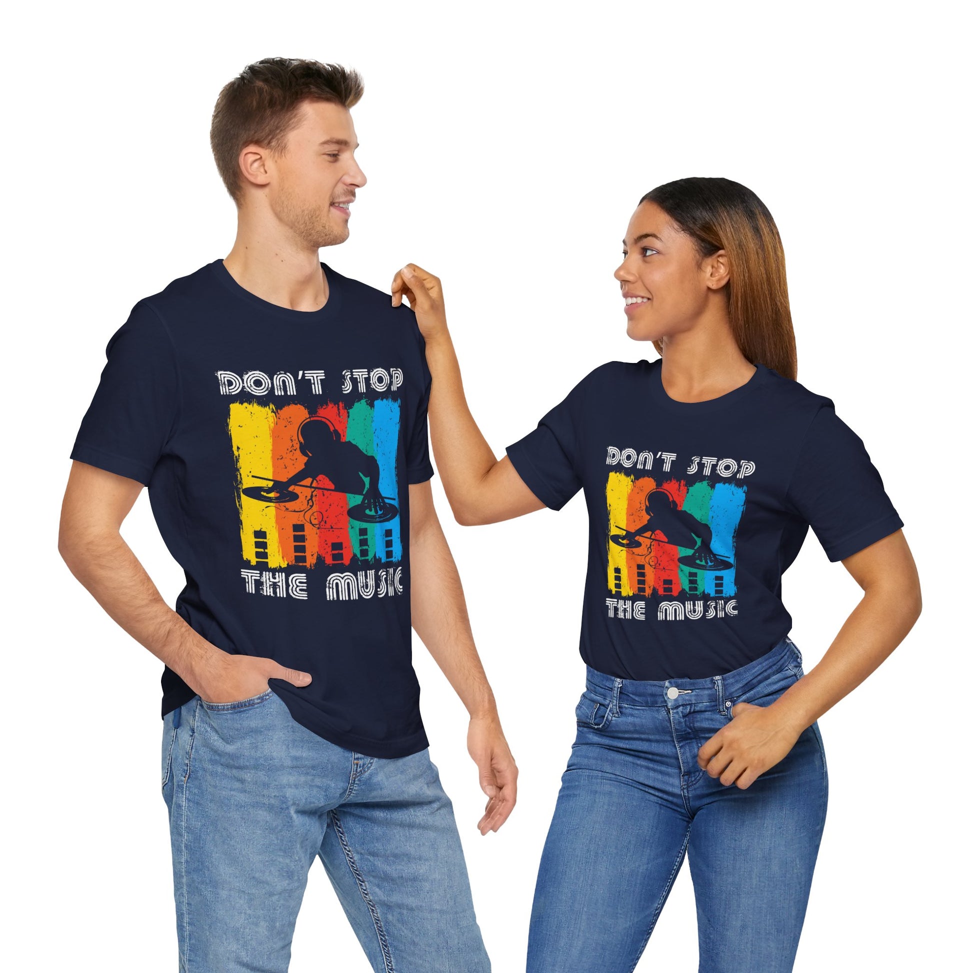 Embrace your passion for music with our "Don't Stop The Music" Unisex Jersey Short Sleeve Tee. Whether you're dancing at a party, enjoying a concert, or just vibing at home, this tee is the perfect way to express your love for music and keep the energy high. Get yours today and make sure the music never stops!