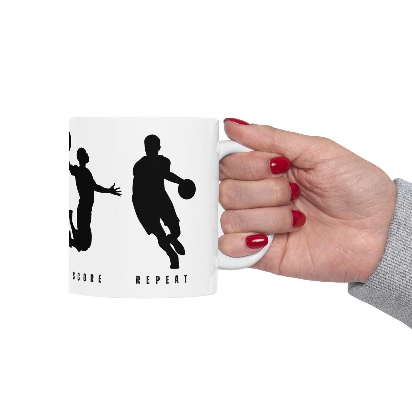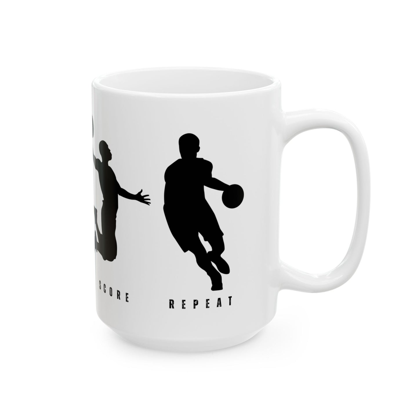 Dribble Shoot Score Repeat, Basketball Lovers - Ceramic Mug (11oz, 15oz) - 10130