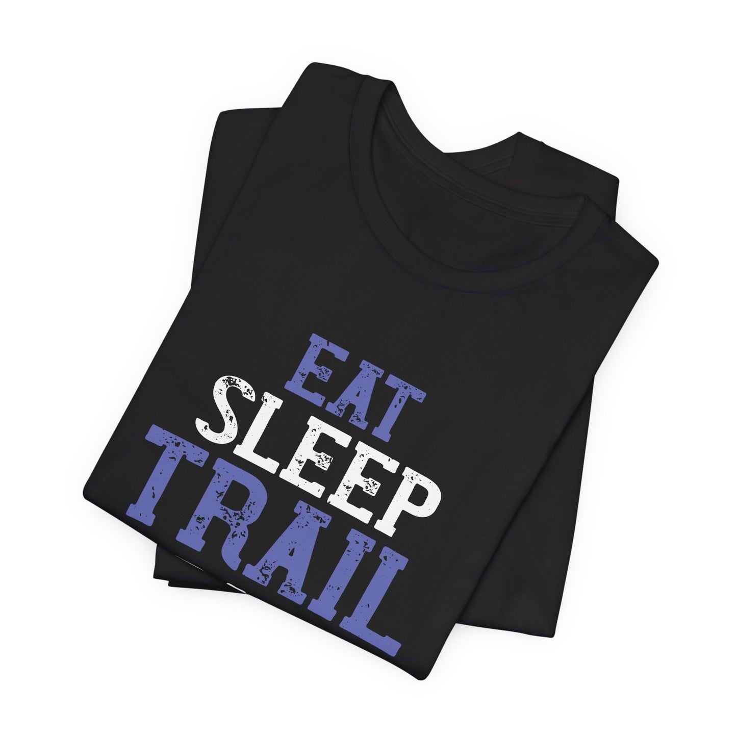 Embrace the rhythm of the trail with our "Eat, Sleep, Trail Run, Repeat" Unisex Jersey Short Sleeve Tee. Designed for those who live and breathe the thrill of trail running, this tee is the perfect blend of comfort, durability, and style.