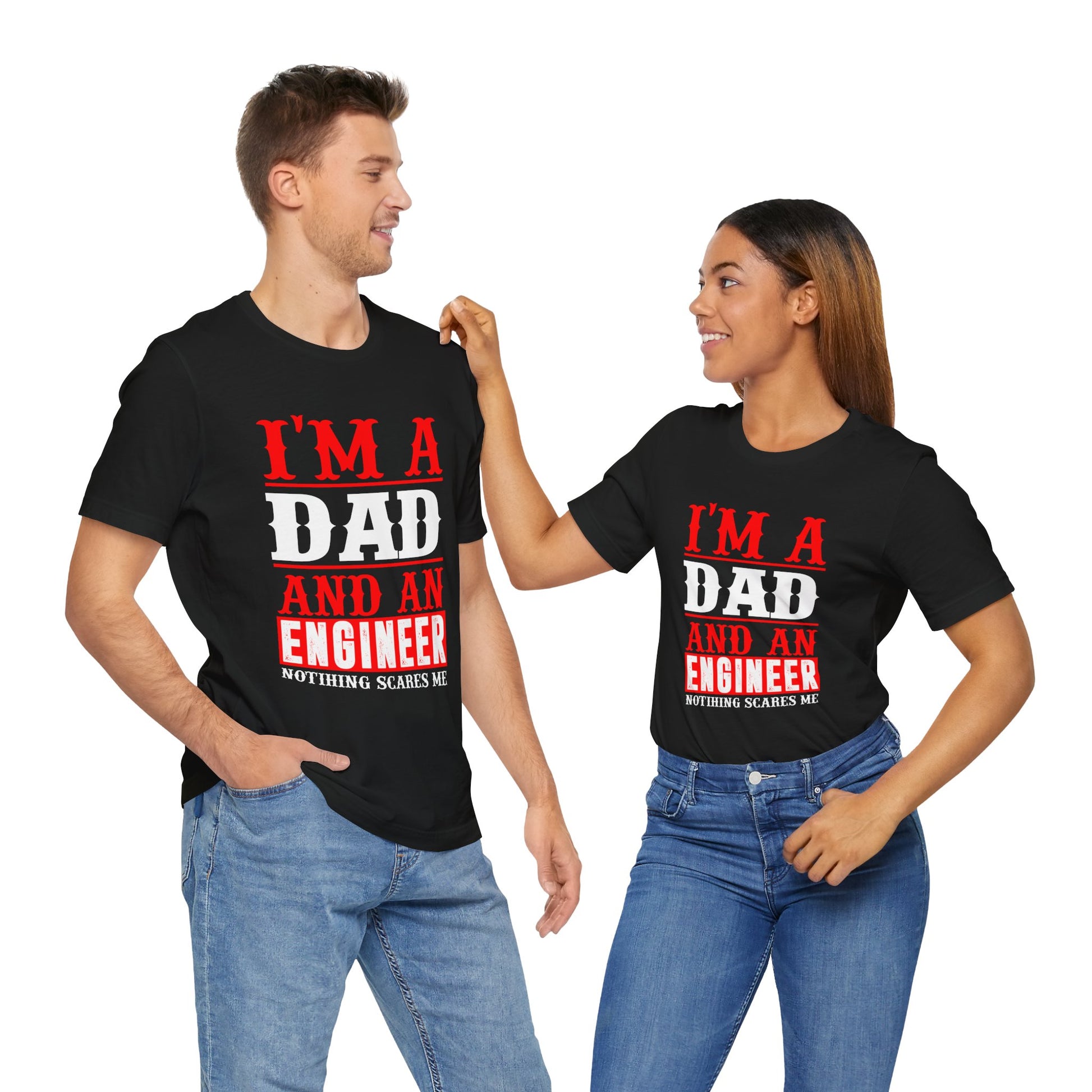 Embrace the fearless spirit of fatherhood and engineering expertise with this empowering unisex jersey short sleeve tee. Ideal for dads who confidently balance their family responsibilities with their professional achievements.